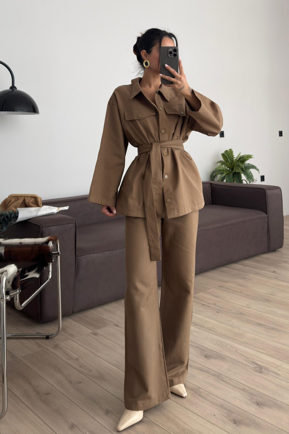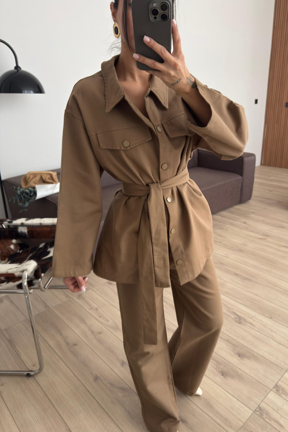 Çıtçıtlı Gabardin Takım Karamel