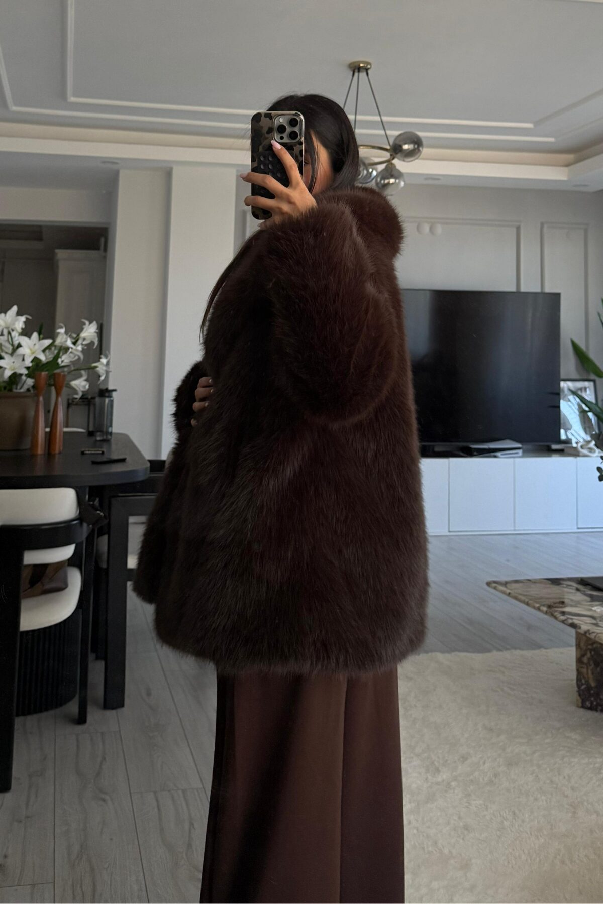 Premium Daily Acı Kahve Kürk Mont