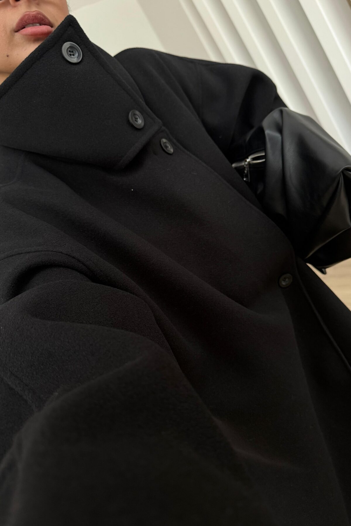 Trend Dik Yaka Kaşe Kaban Siyah
