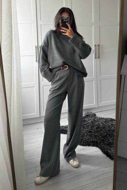 Paçası Düğmeli Kırışık Şalvar Pantolon Siyah