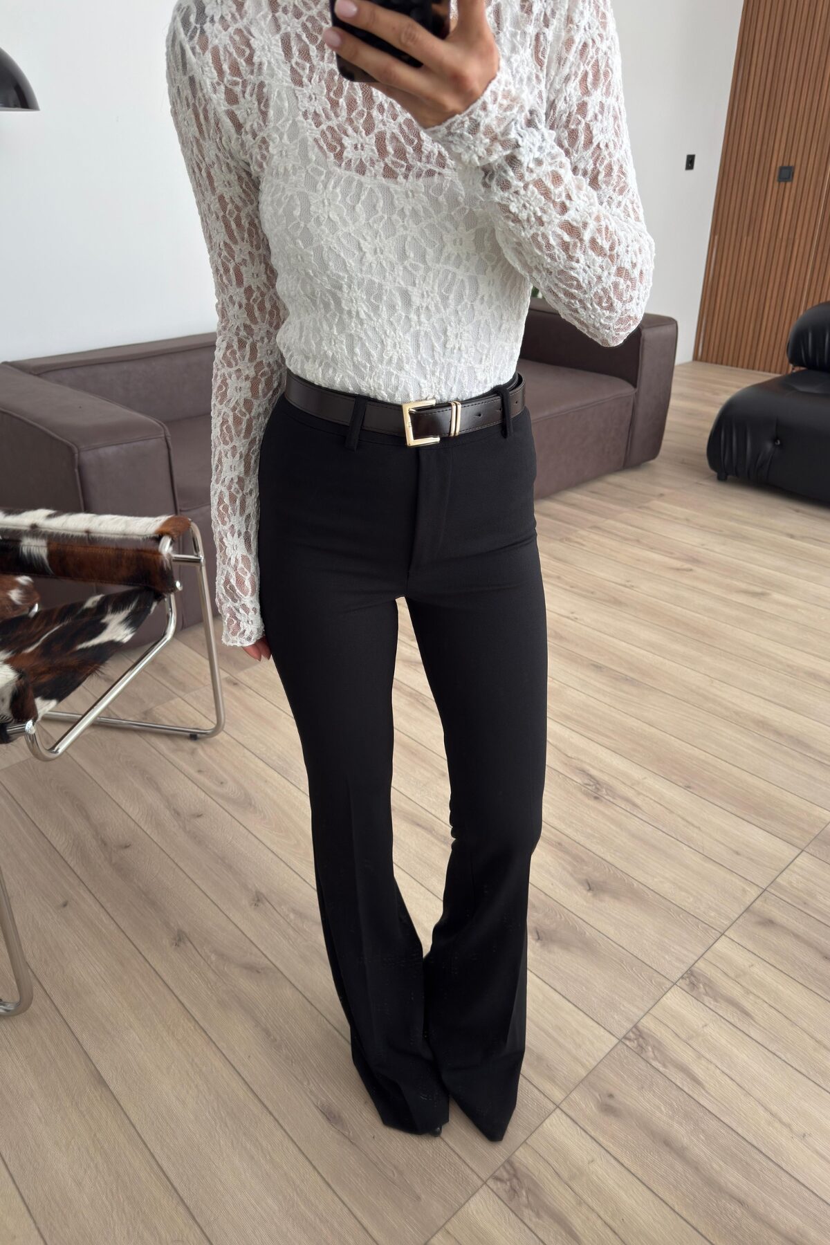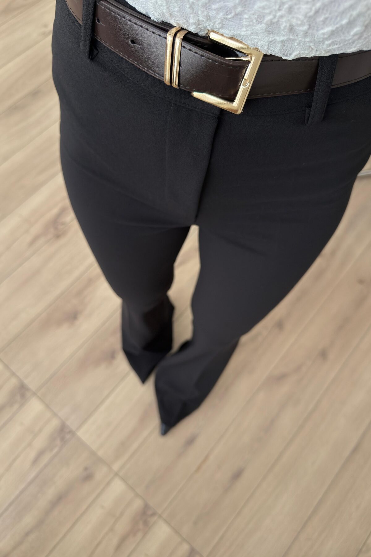 “Beli Kemerli İspanyol Paça Kumaş Pantolon Siyah” için yorum yapan ilk kişi siz olun