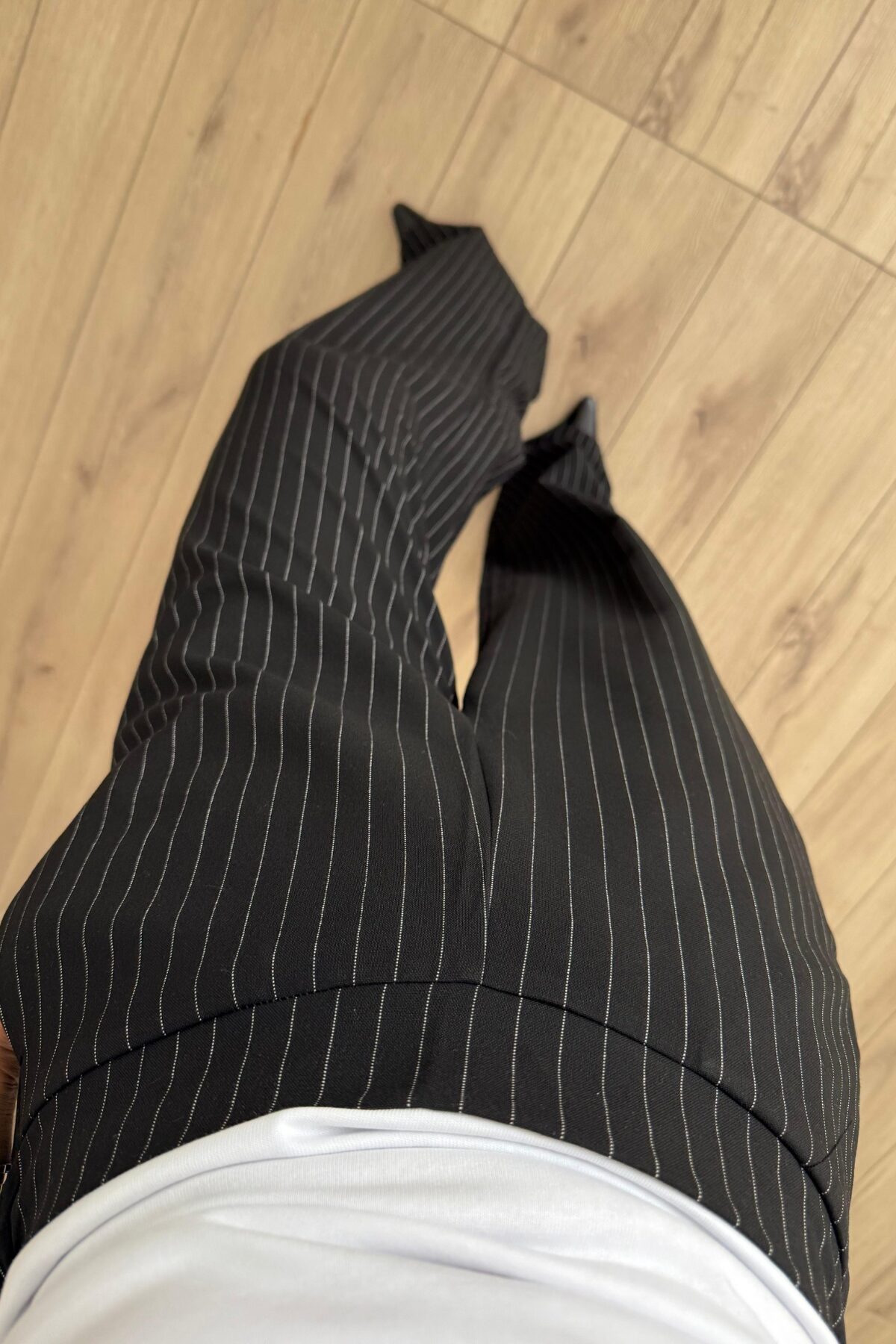 Beyaz Çizgili Pantolon Siyah