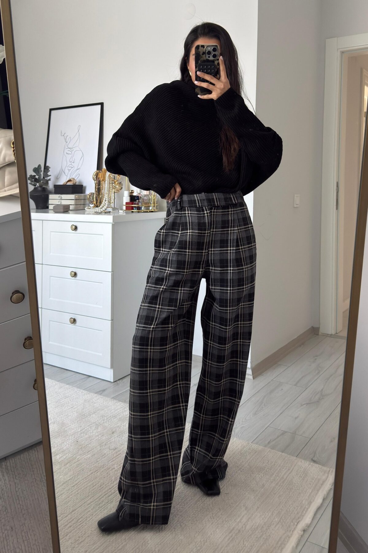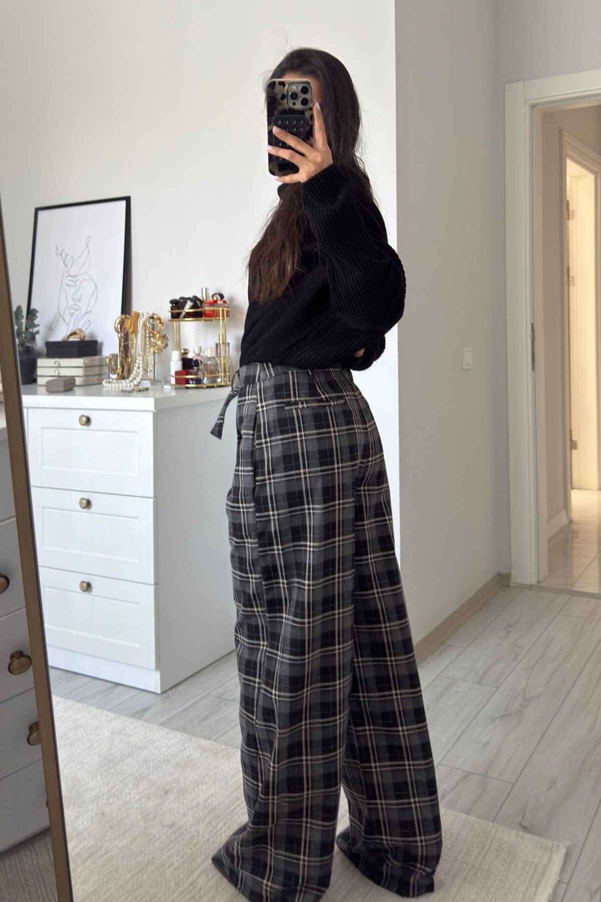 Dep Ekose Desenli Pantolon Siyah