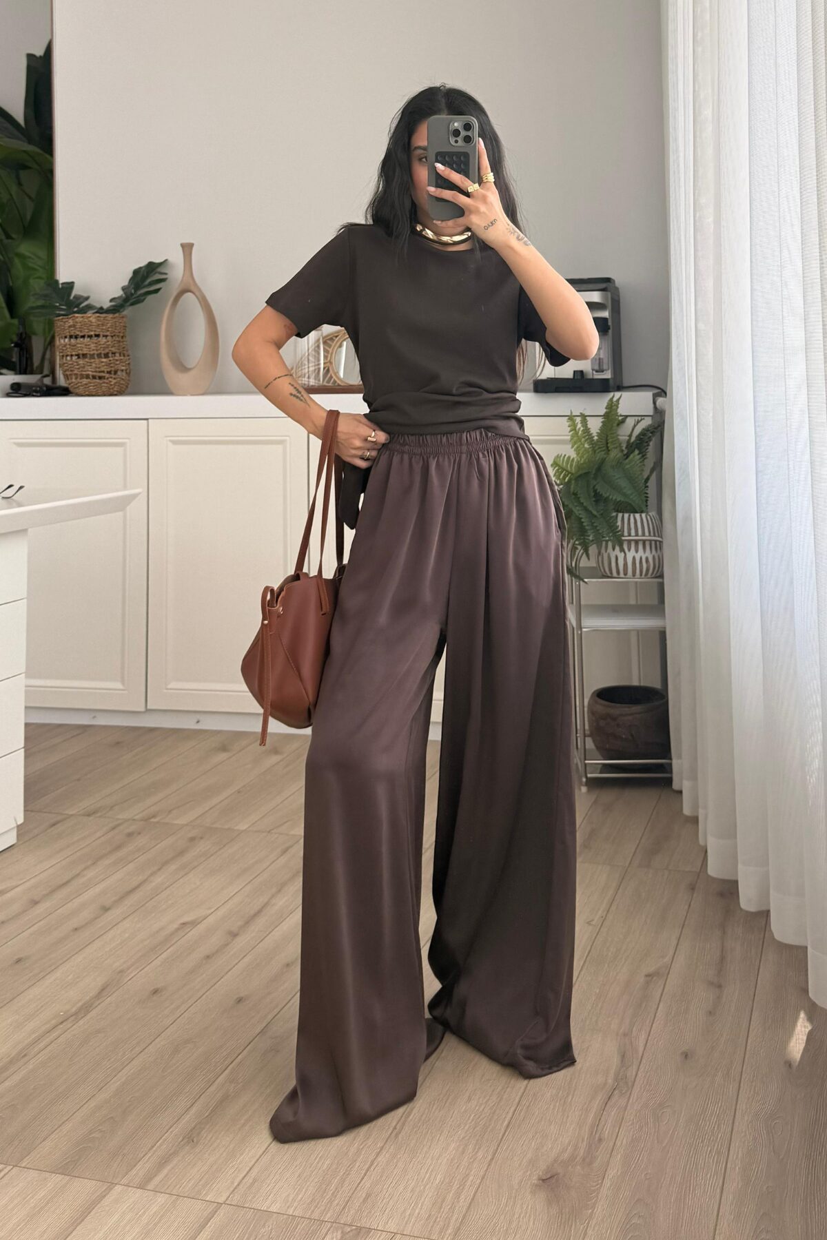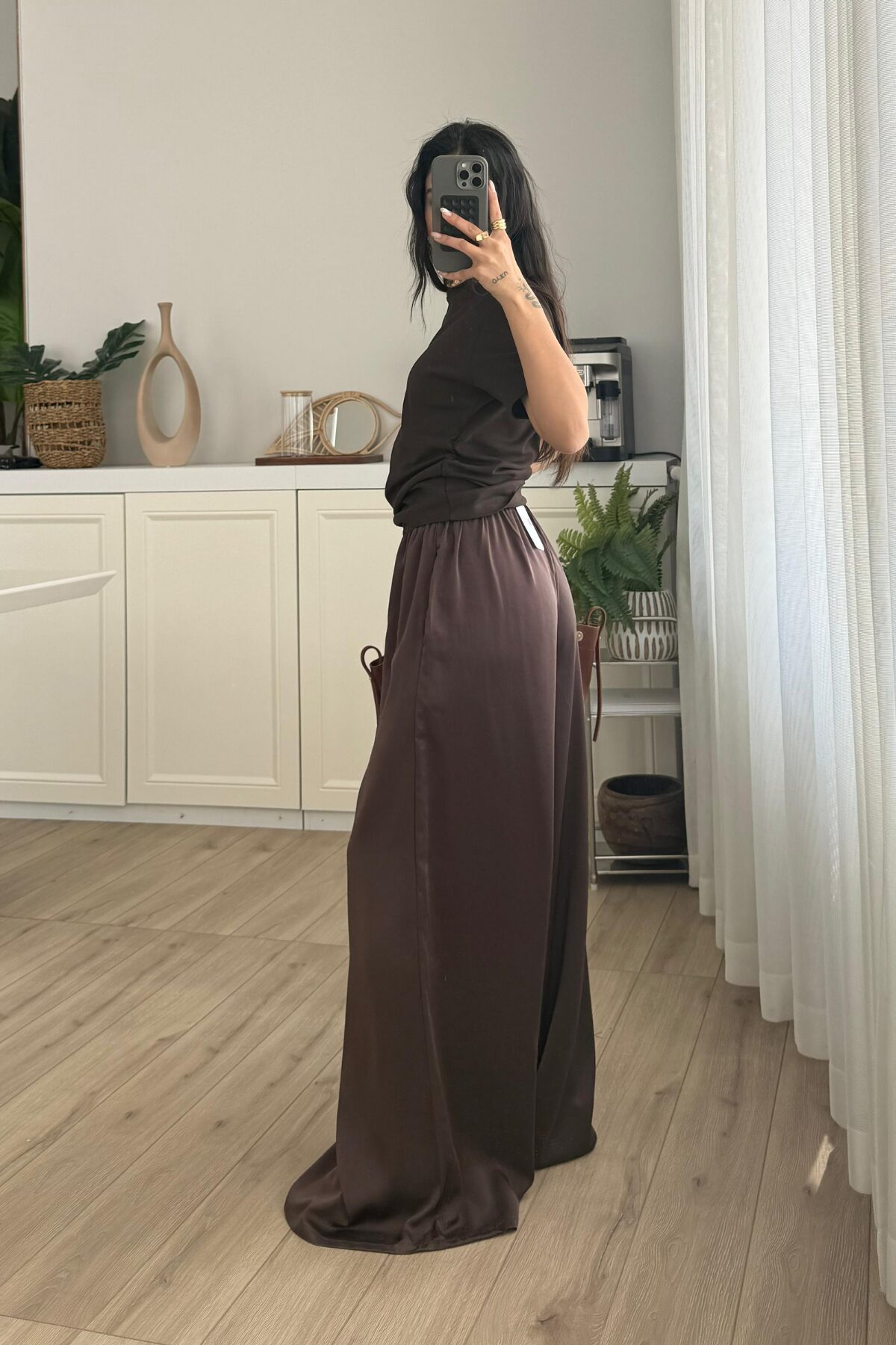 “Geniş Paça Saten Pantolon Kahverengi” için yorum yapan ilk kişi siz olun