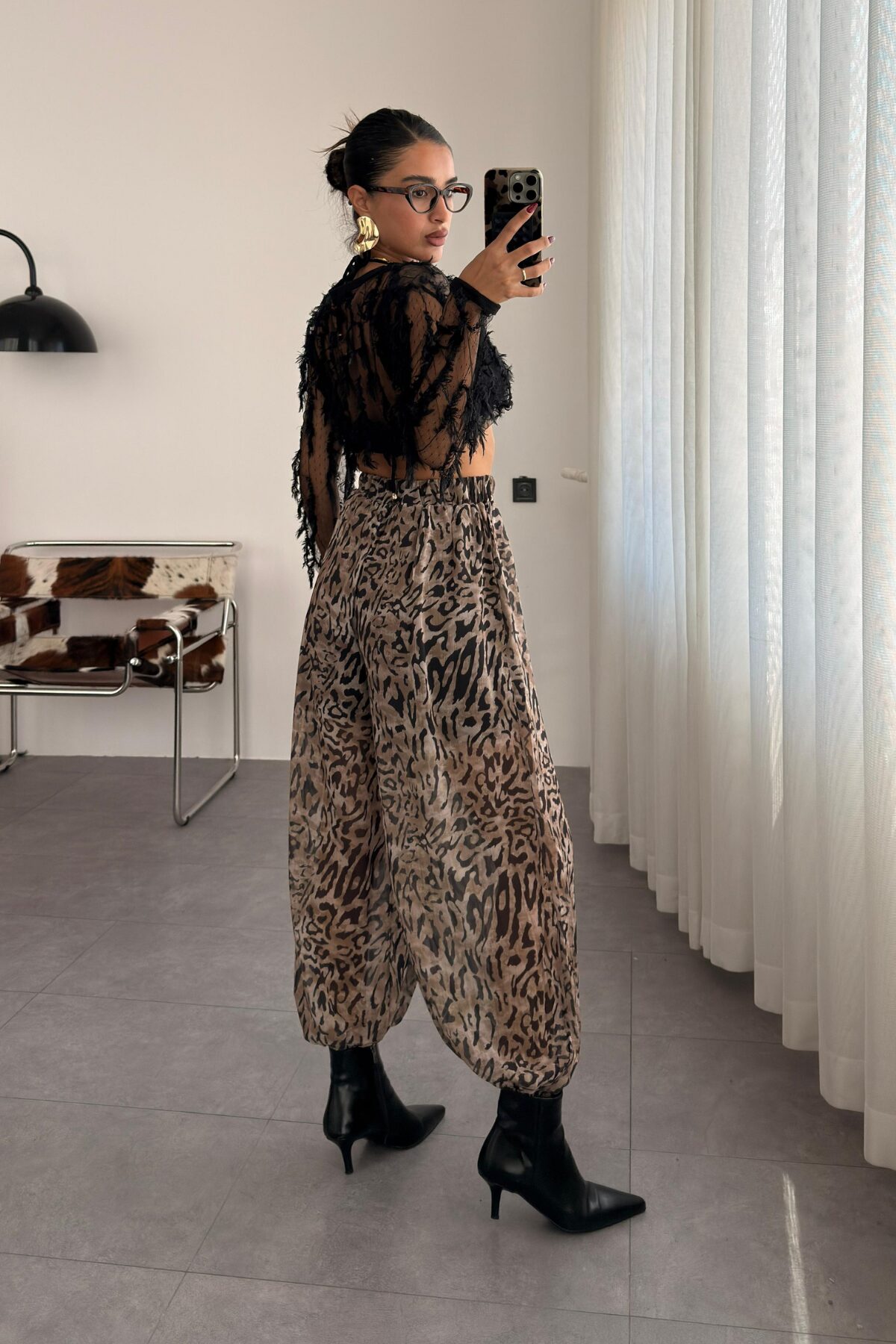 Leopar Desen Pileli Şalvar Pantolon