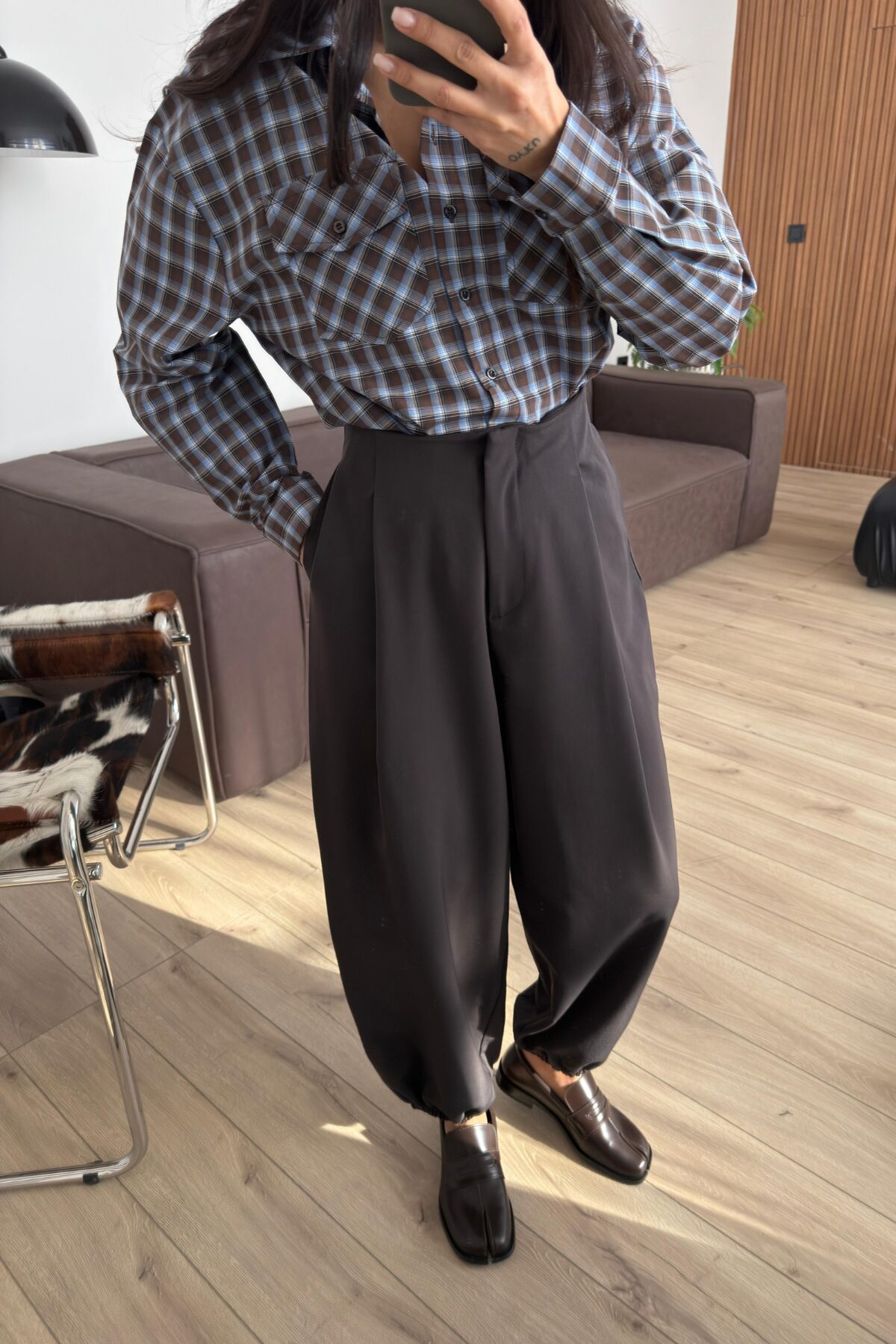 Paçası Lastikli Şalvar Pantolon Koyu Kahve