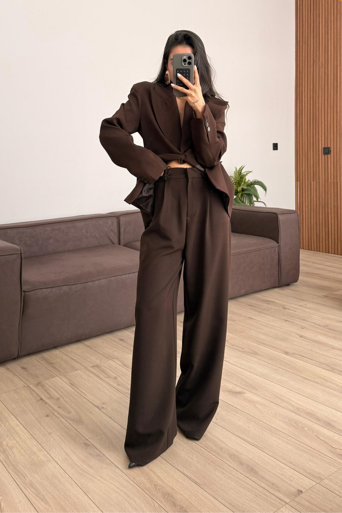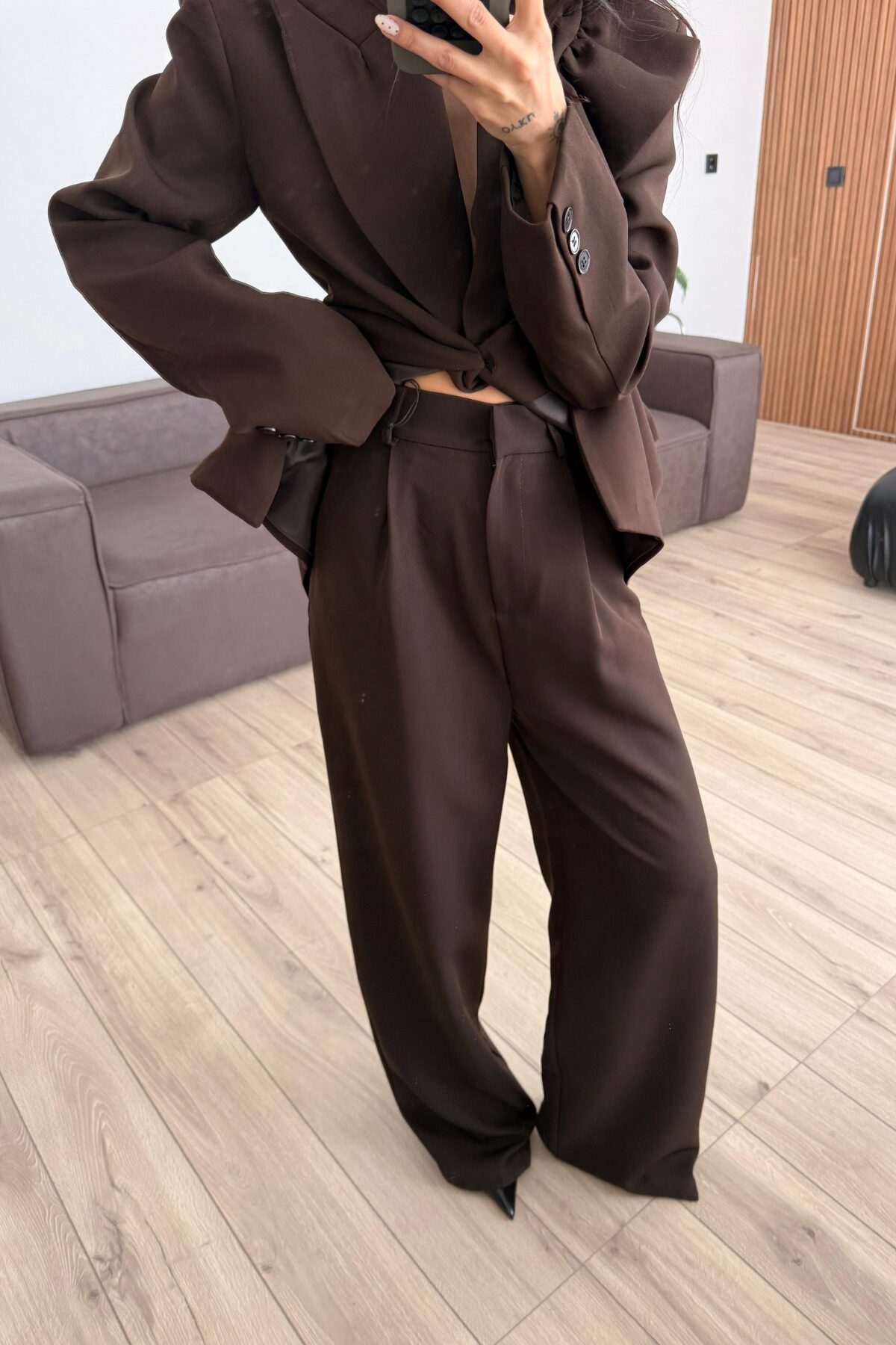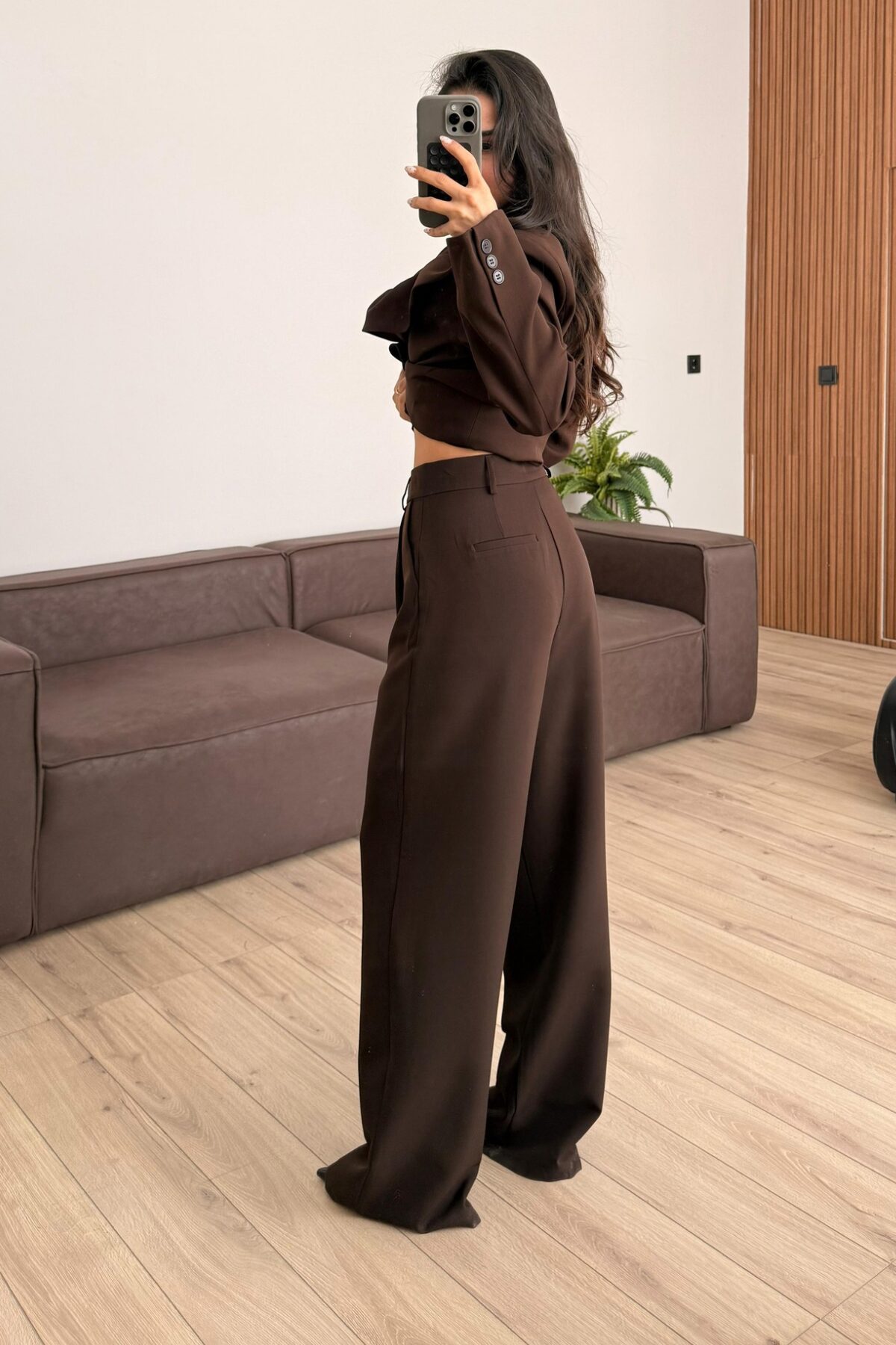 Rosa Pileli Palazzo Pantolon Kahverengi