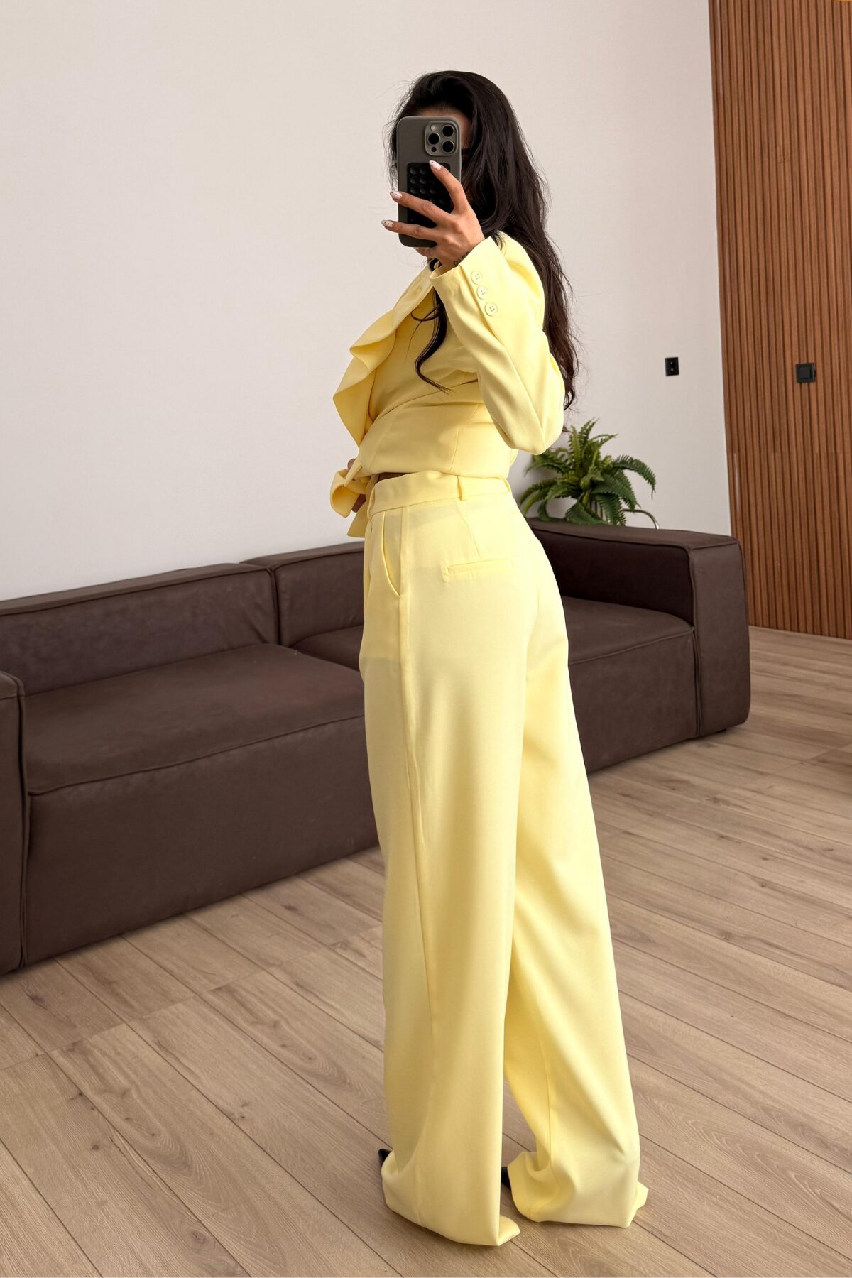Rosa Pileli Palazzo Pantolon Sarı