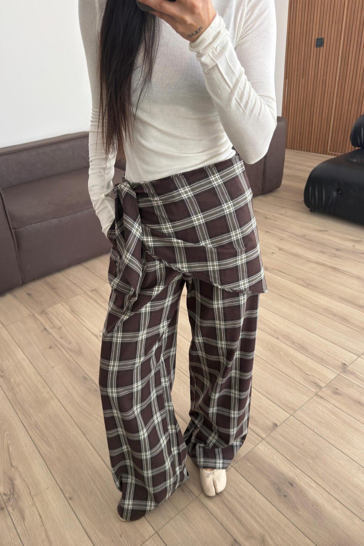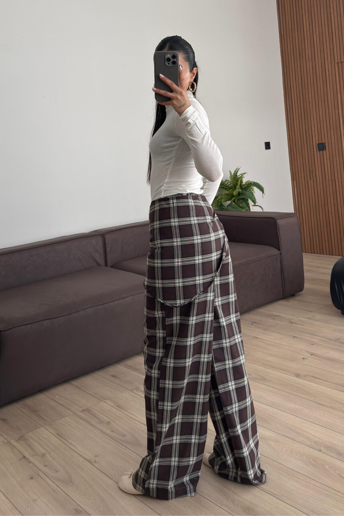 Şallı Ekose Pantolon Kahverengi
