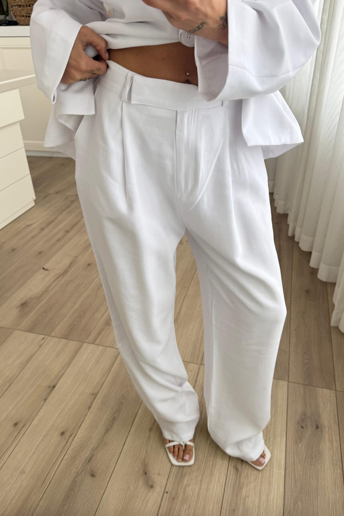 Yong Pileli Pantolon Beyaz
