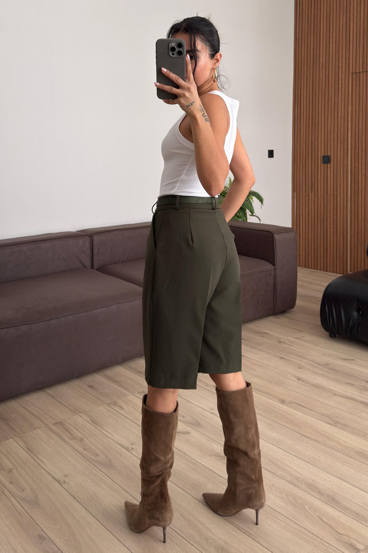 Kemerli Bermuda Şort Haki
