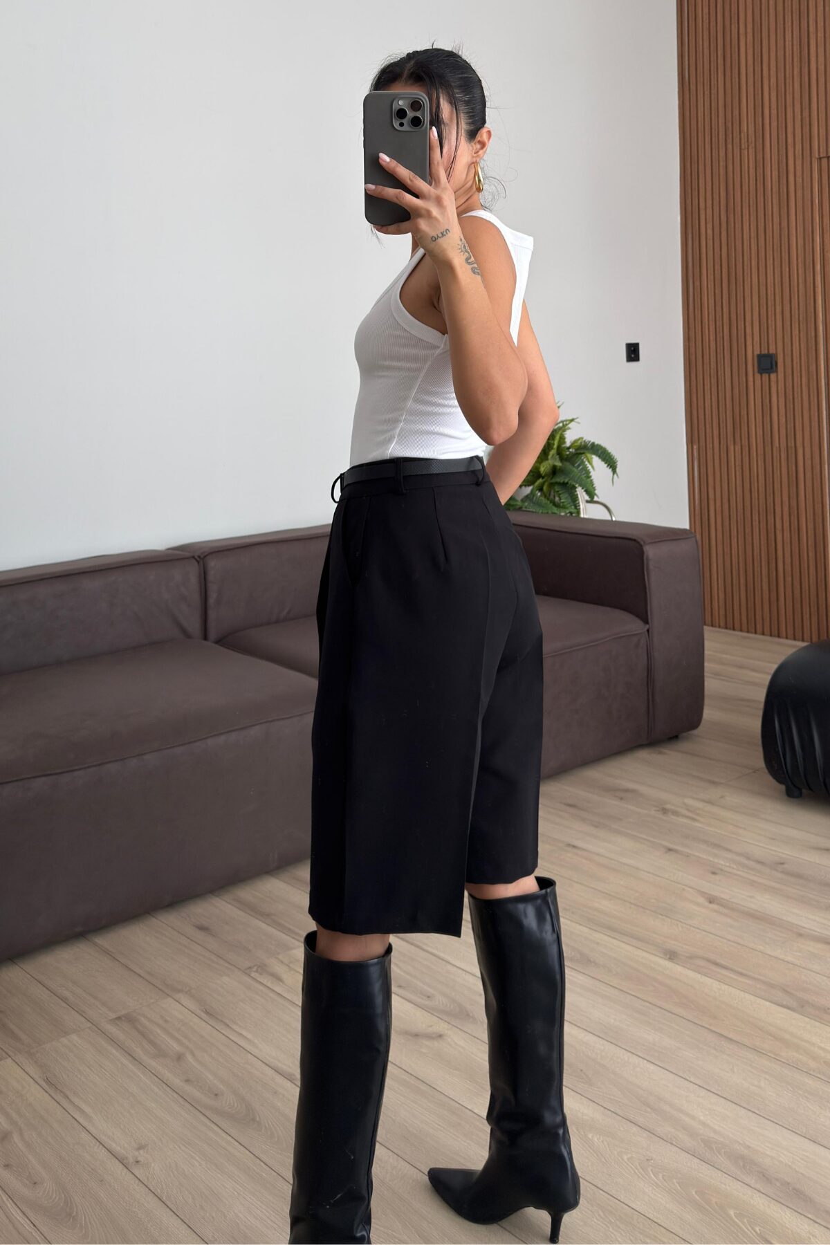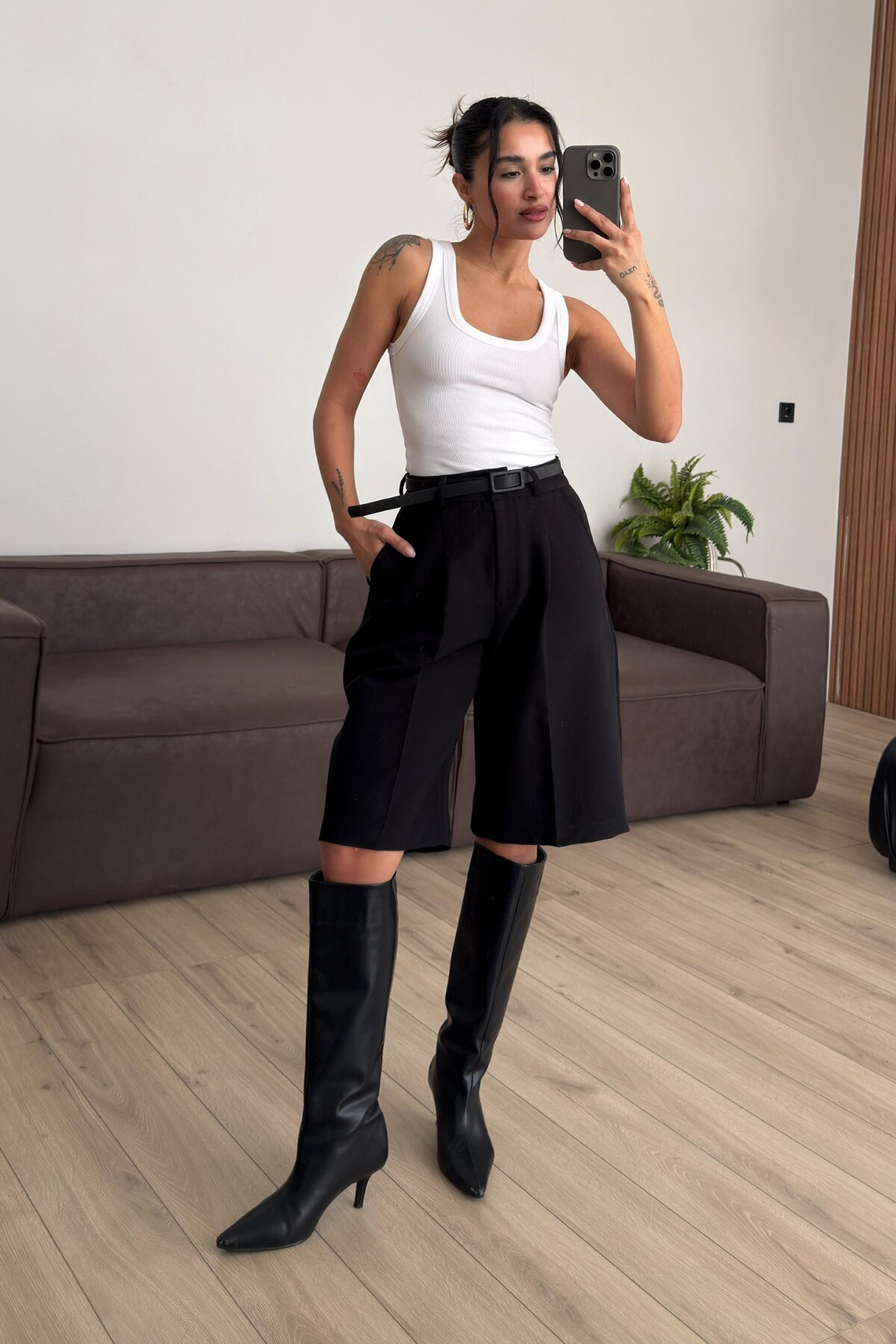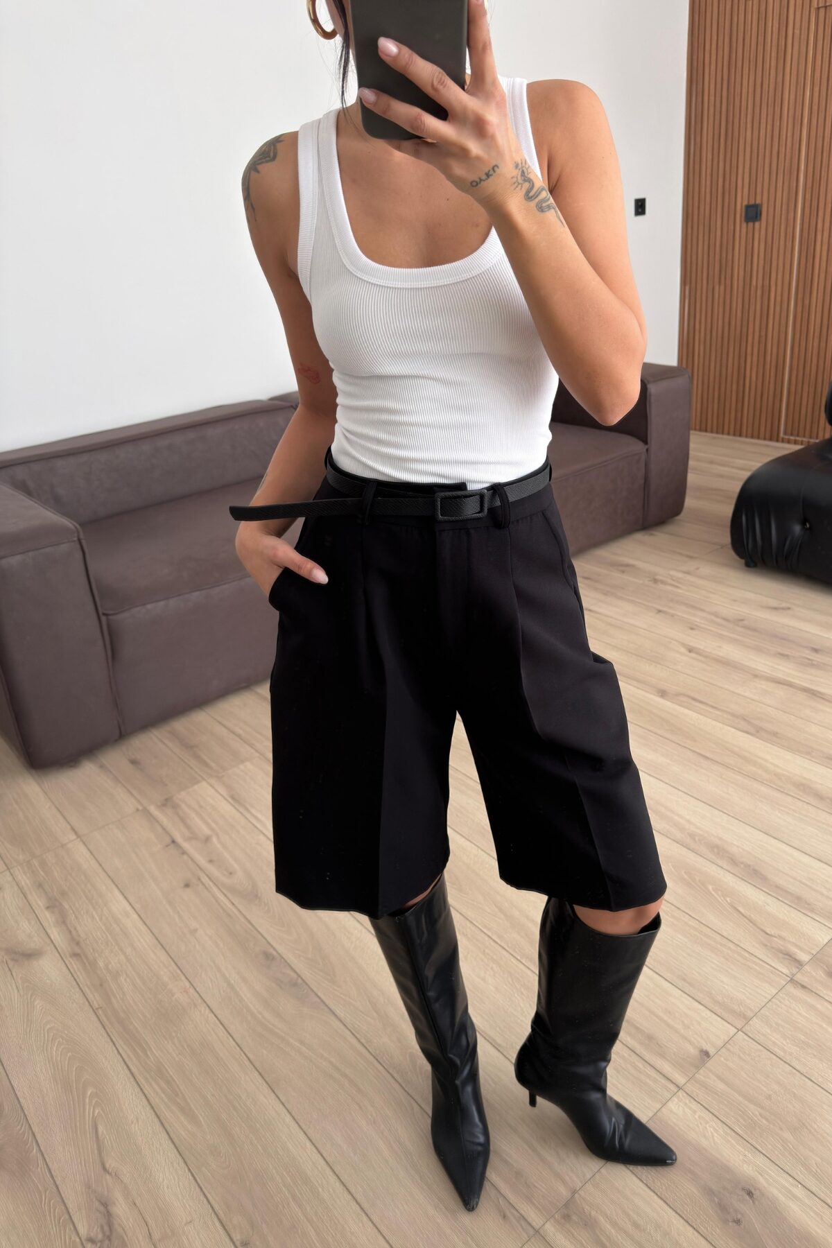 Kemerli Bermuda Şort Siyah
