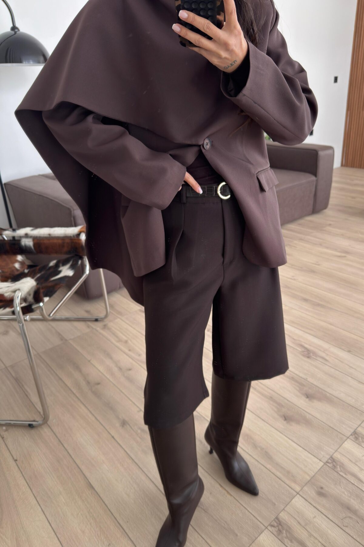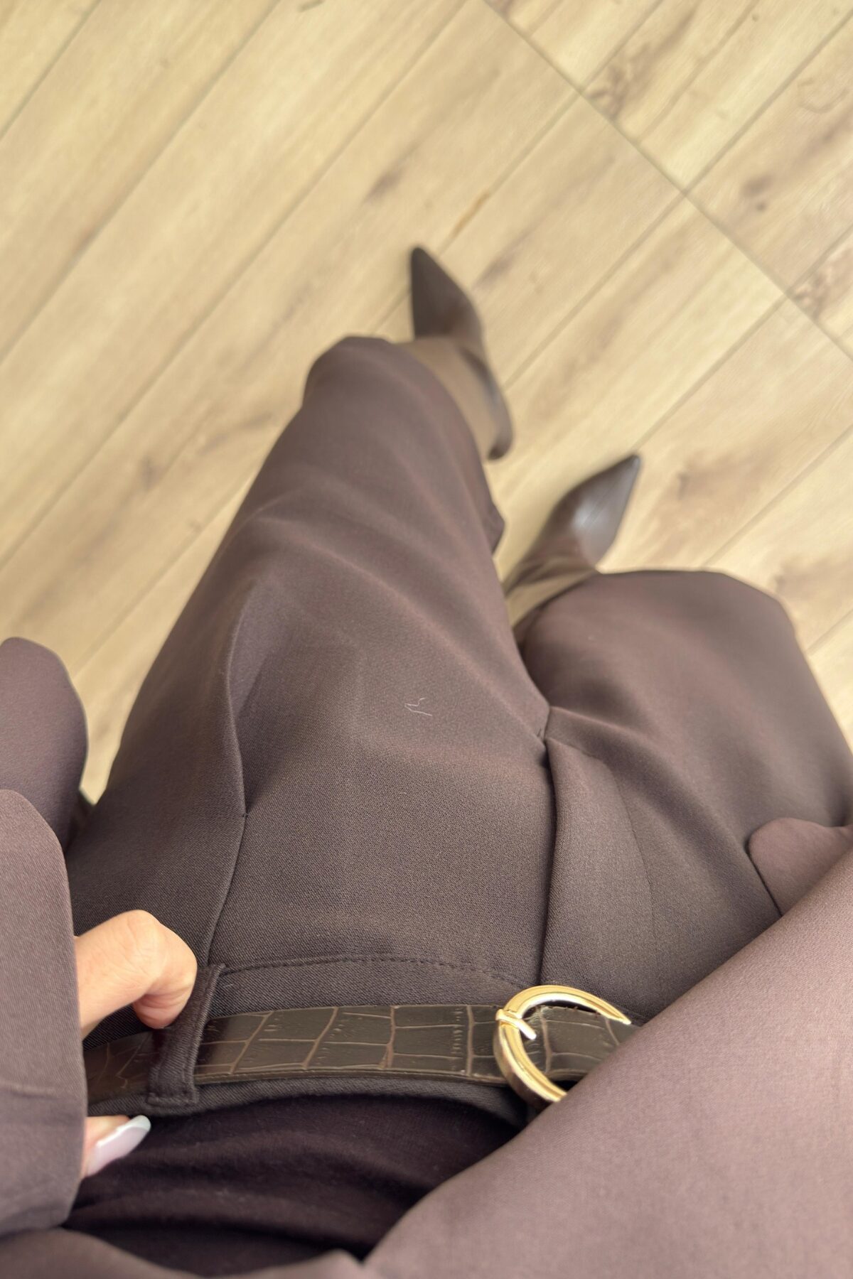 Kemerli Pileli Bermuda Şort Acı Kahve