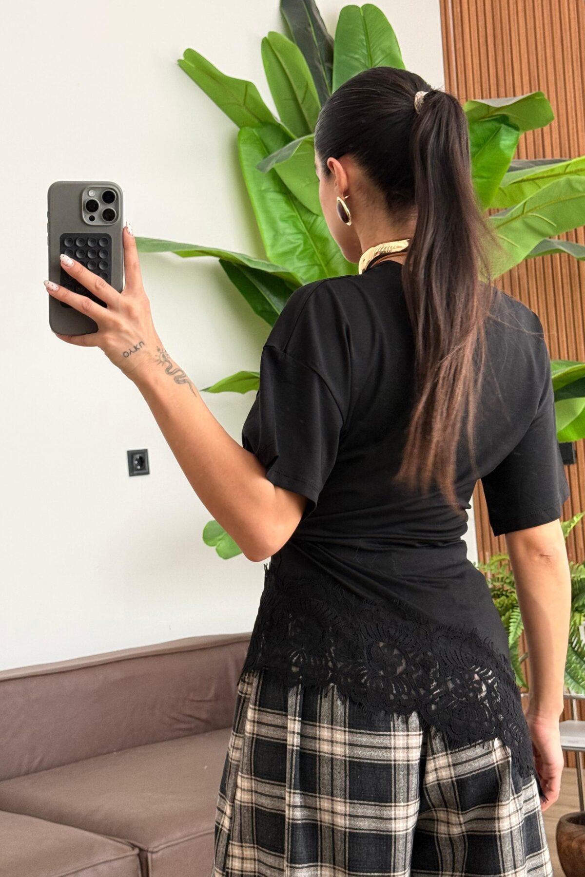 Belden Oturtmalı Asimetrik Tişört Siyah
