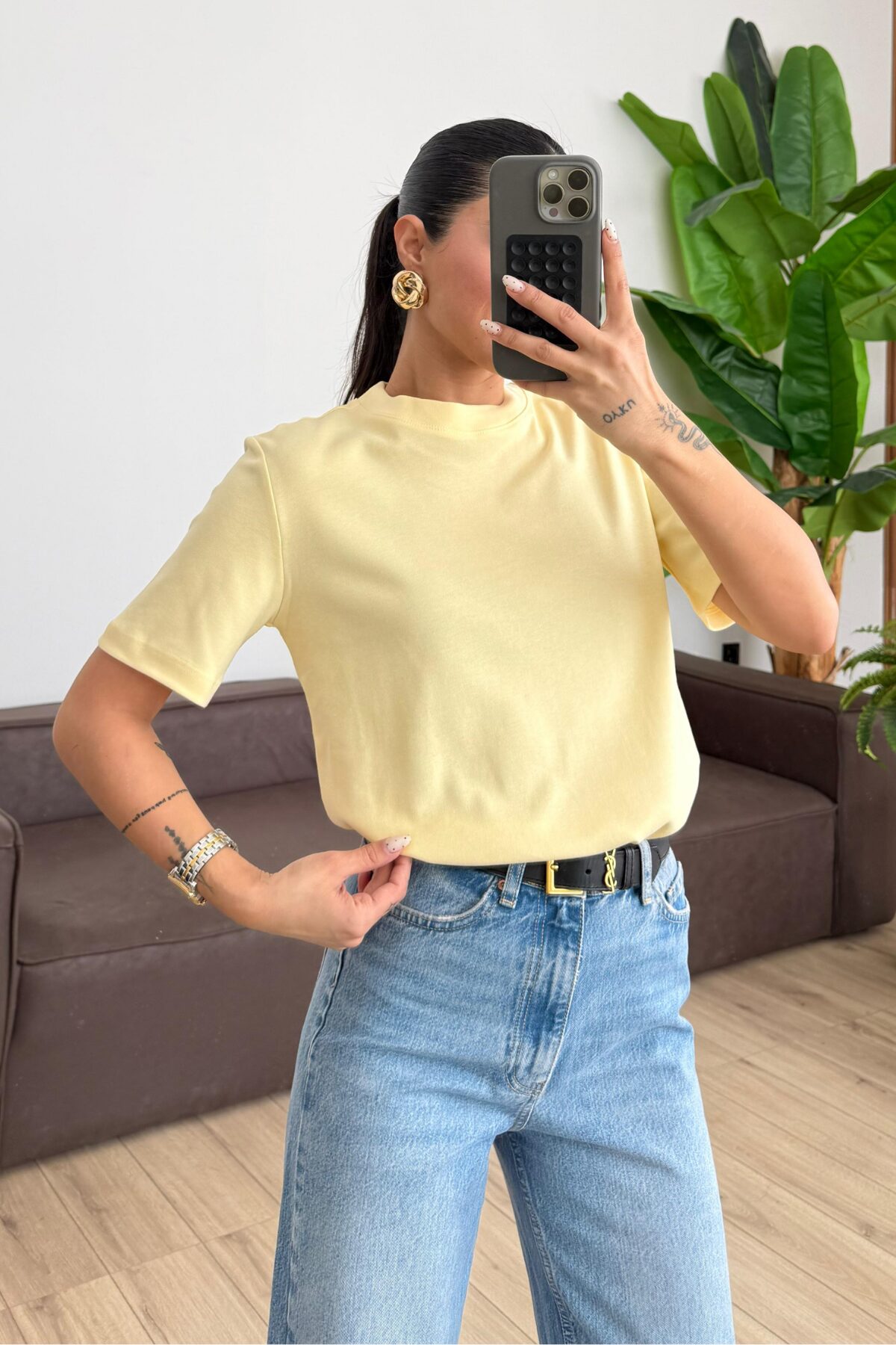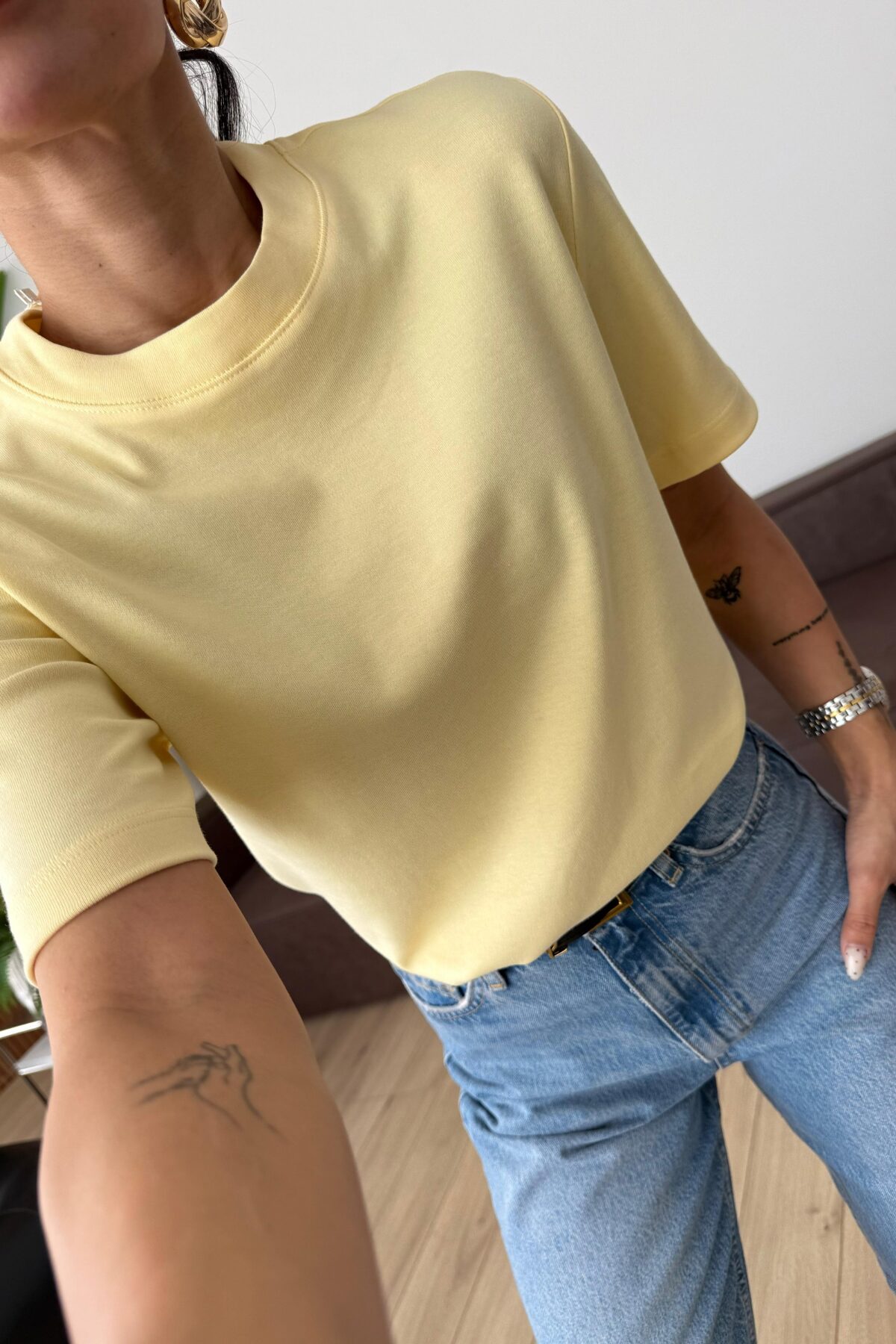 Bisiklet Yaka Tişört Sarı