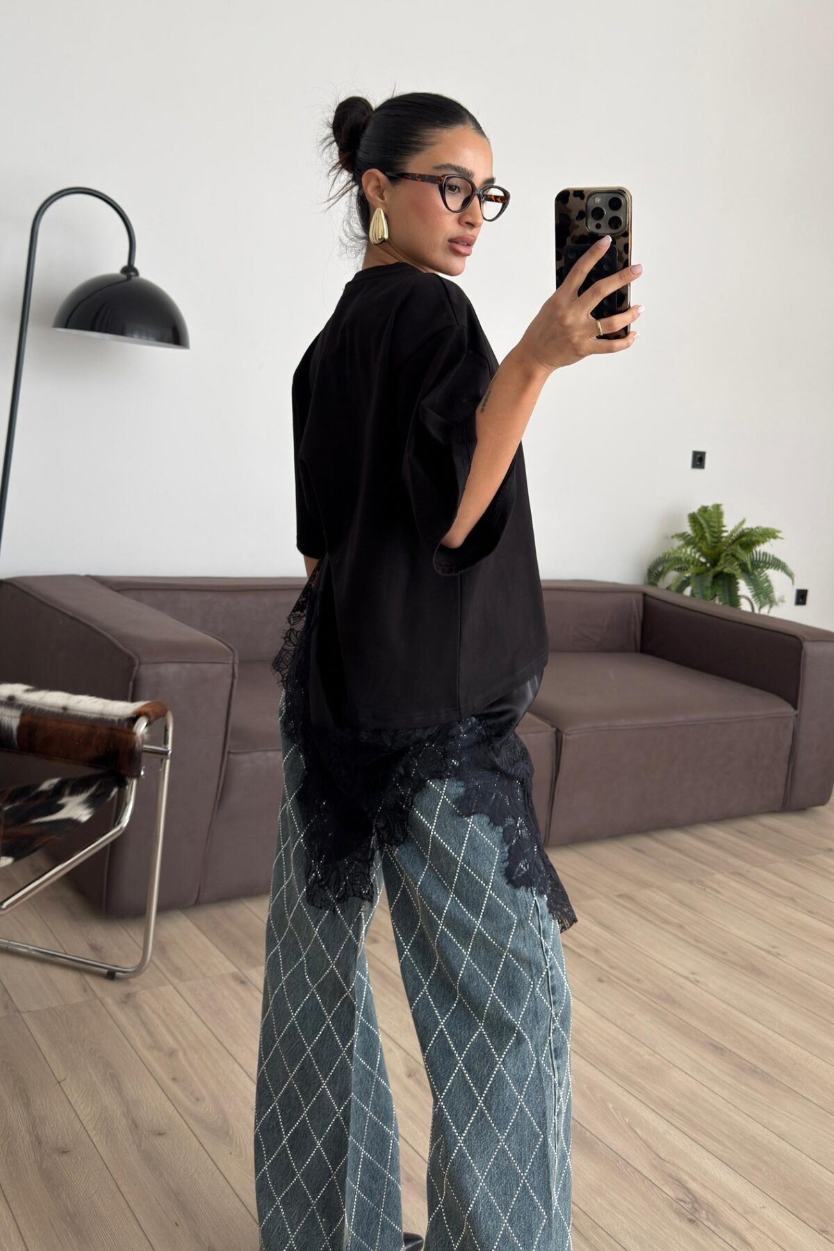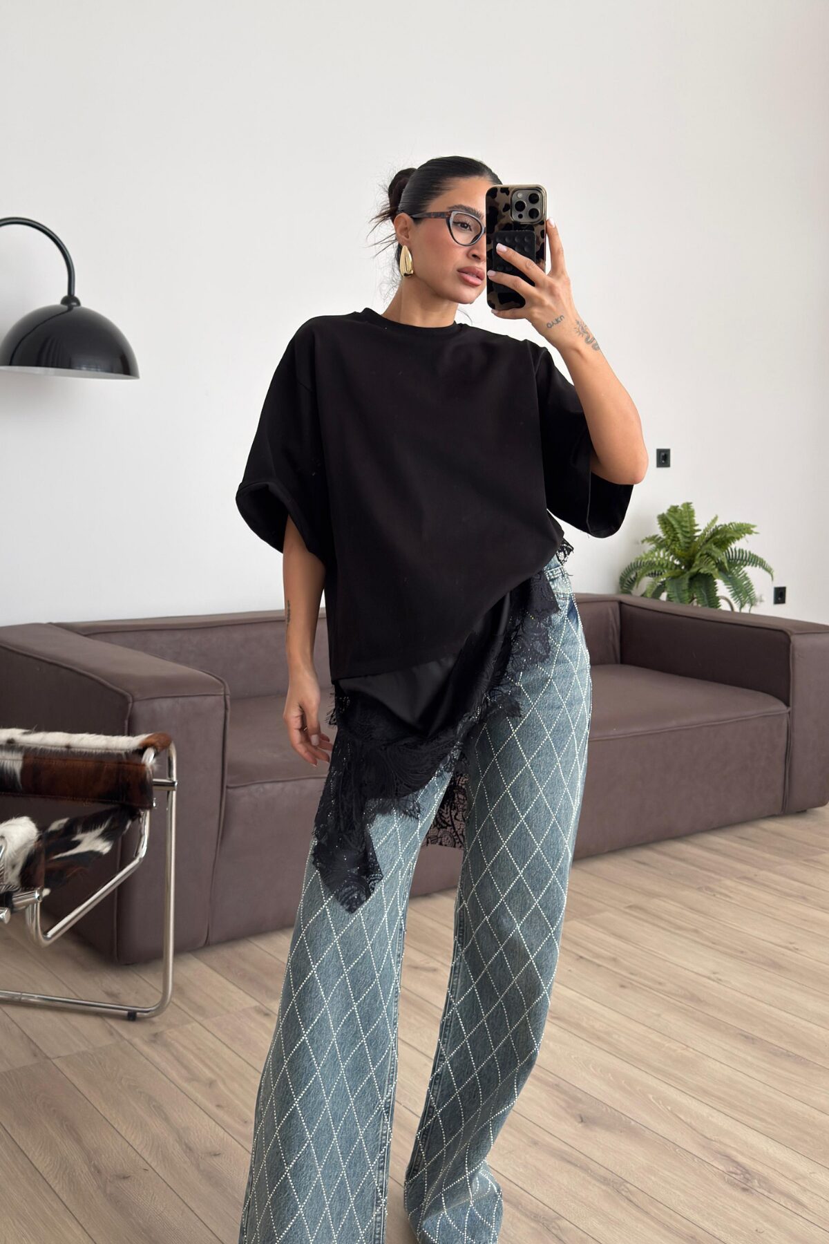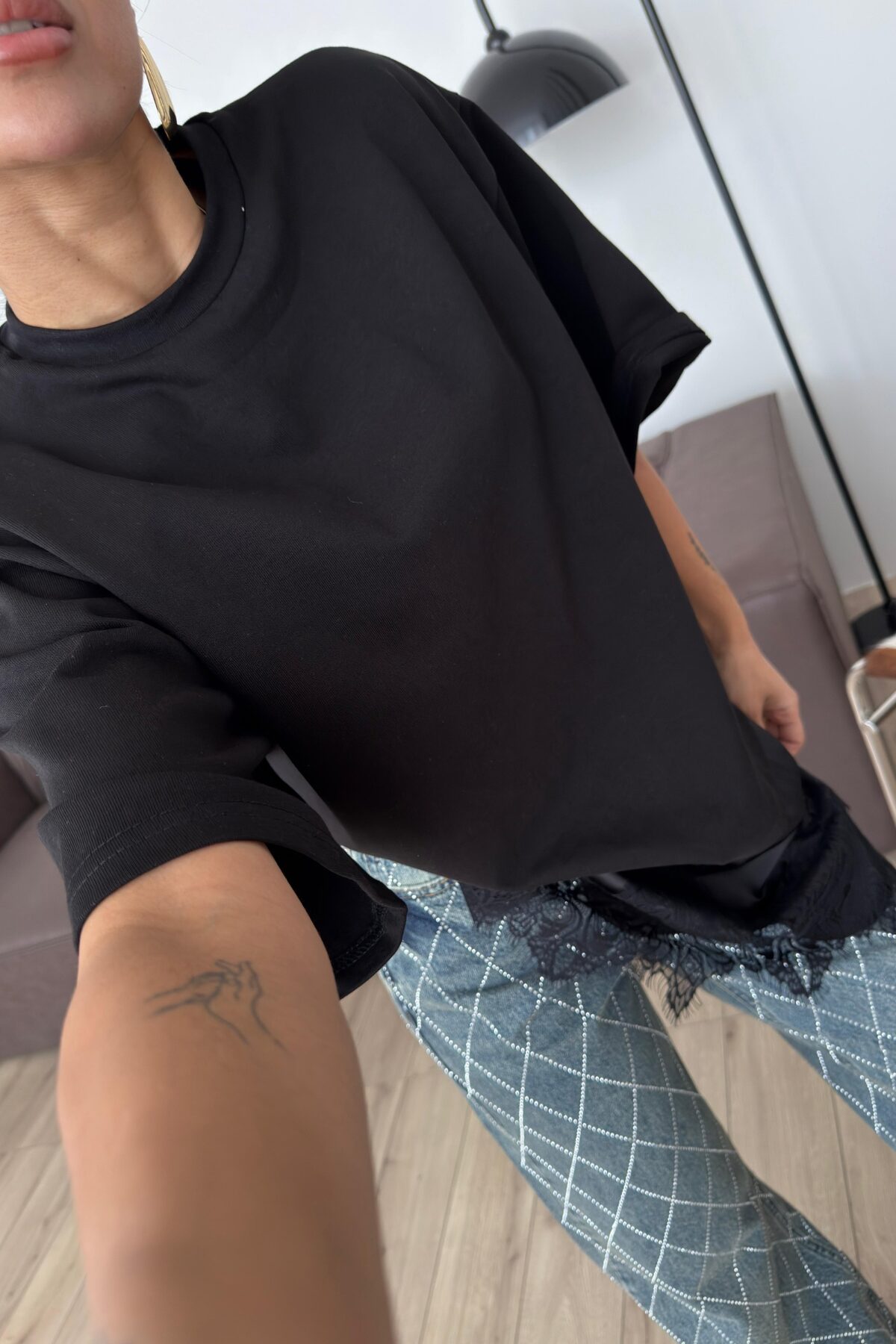 Güpür Detaylı Tişört Siyah