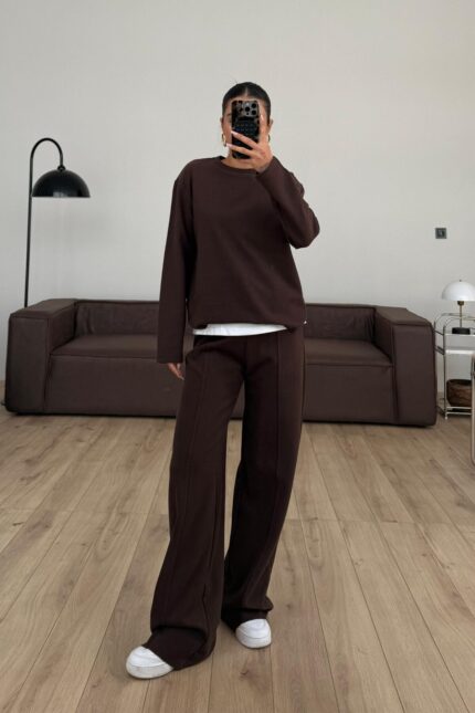 Trend Büzgülü Etek Ceket Takım Acı Kahve