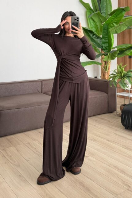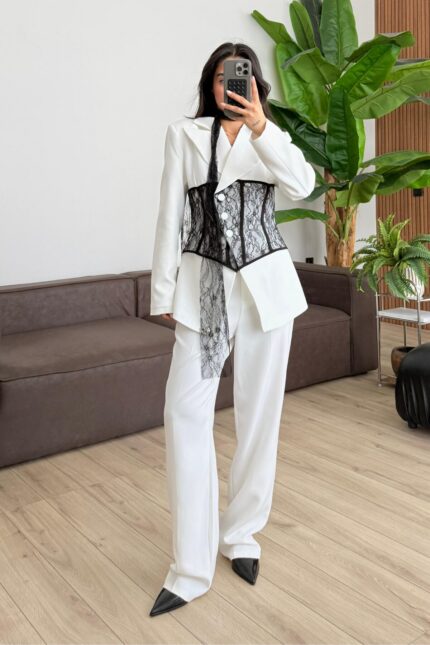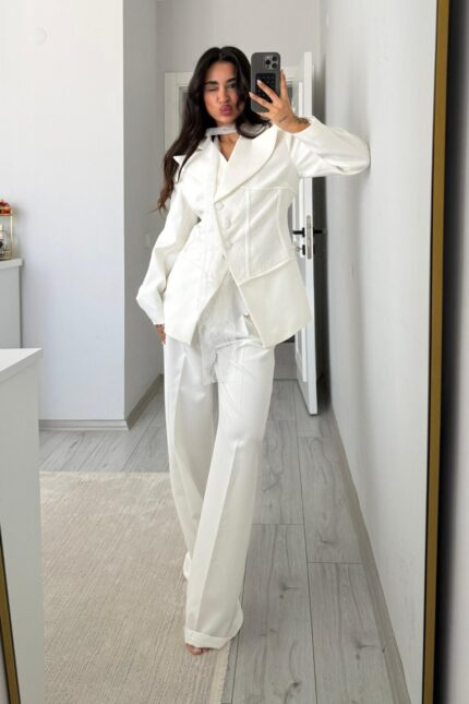 Mila Straplez Bluz Pantolon Takım Ekru