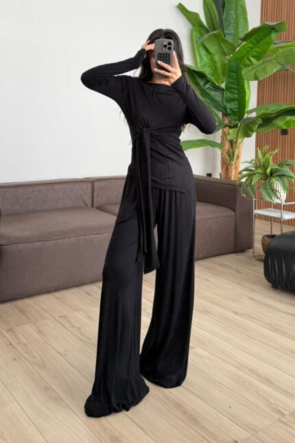 Çizgili Üçlü Takım Siyah