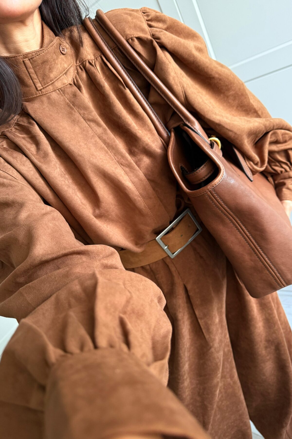 Balon Kol Şalvar Süet Takım Camel