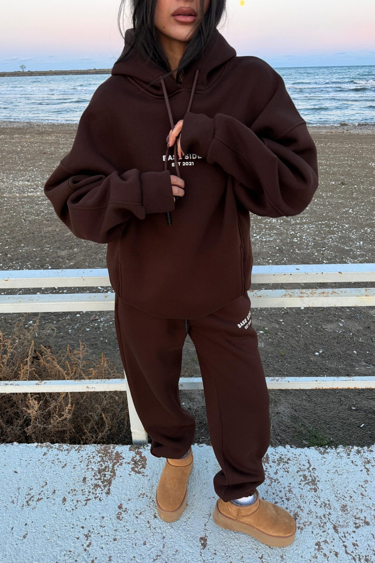 Base Sıde Kapşonlu Sweat Eşofman Takım Kahverengi