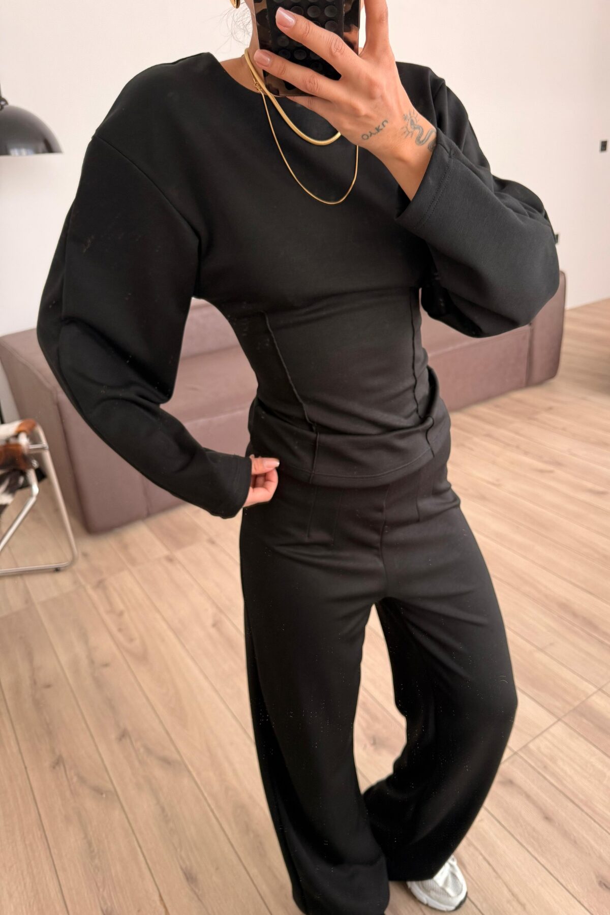 Belden Oturtmalı Dikişli Modal Takım Siyah