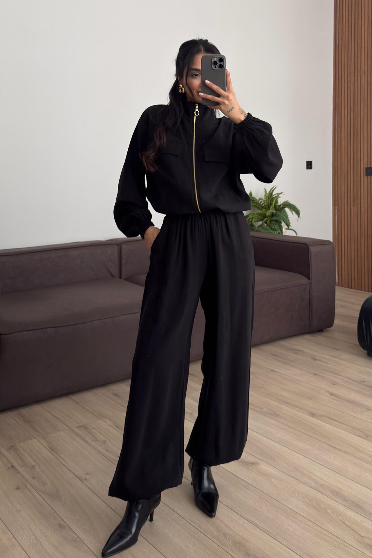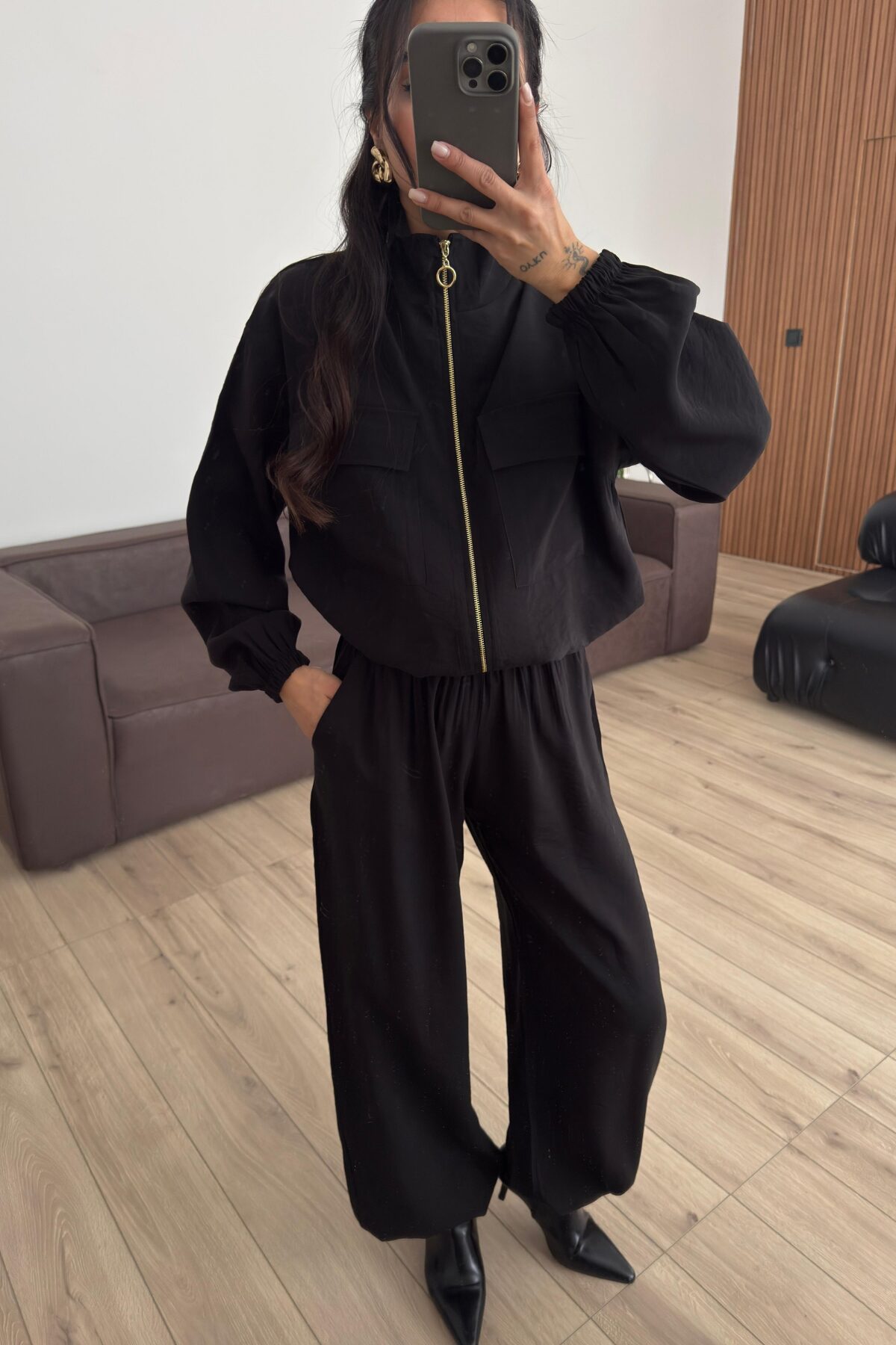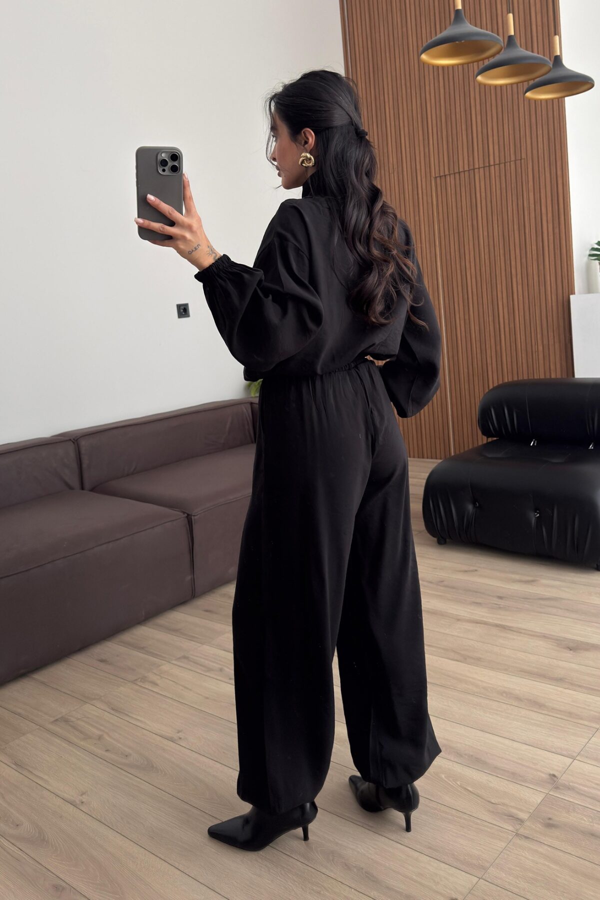 Beli Ayarlanabilir Hırka Şalvar Pantolon Takım Siyah