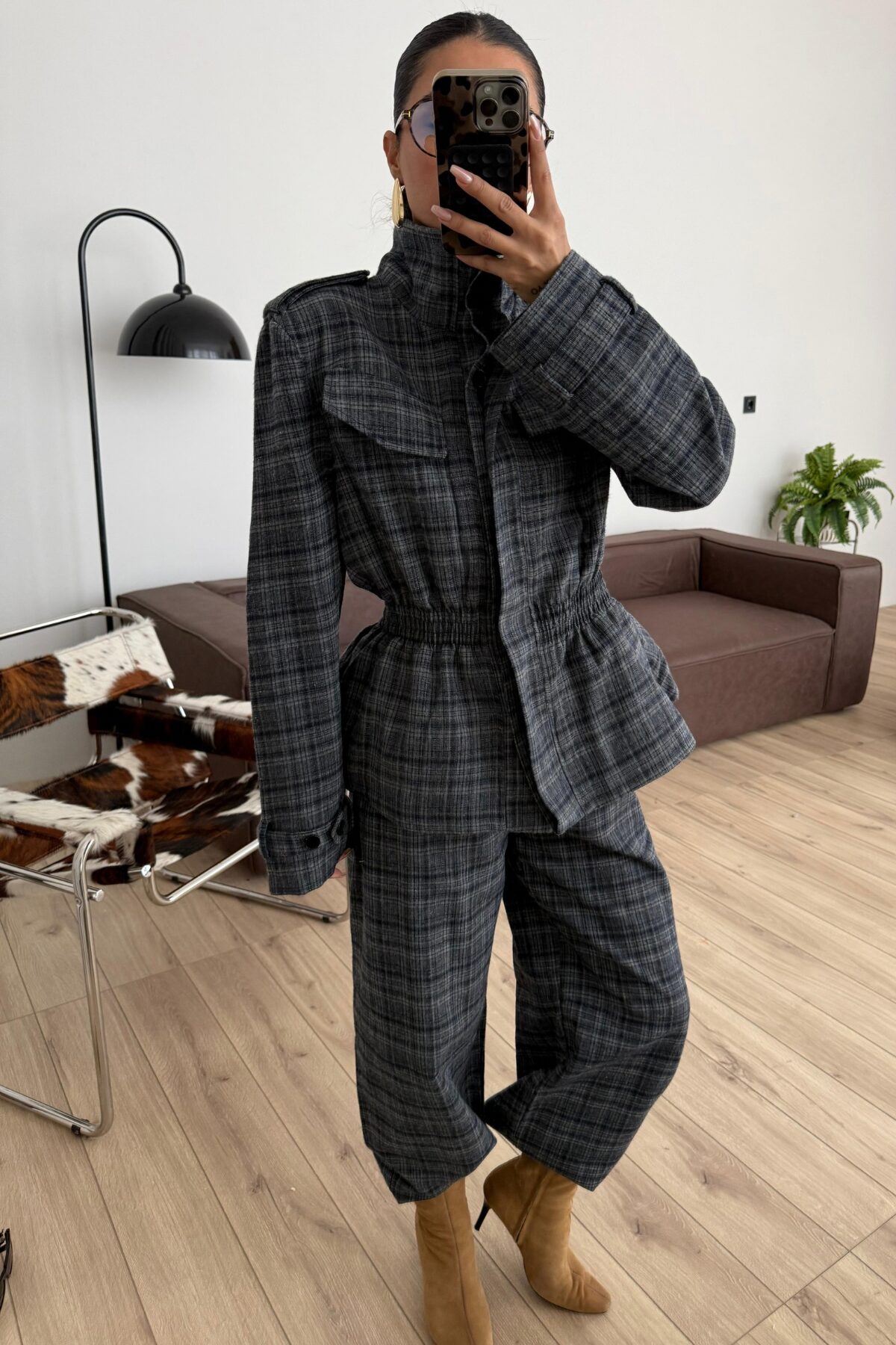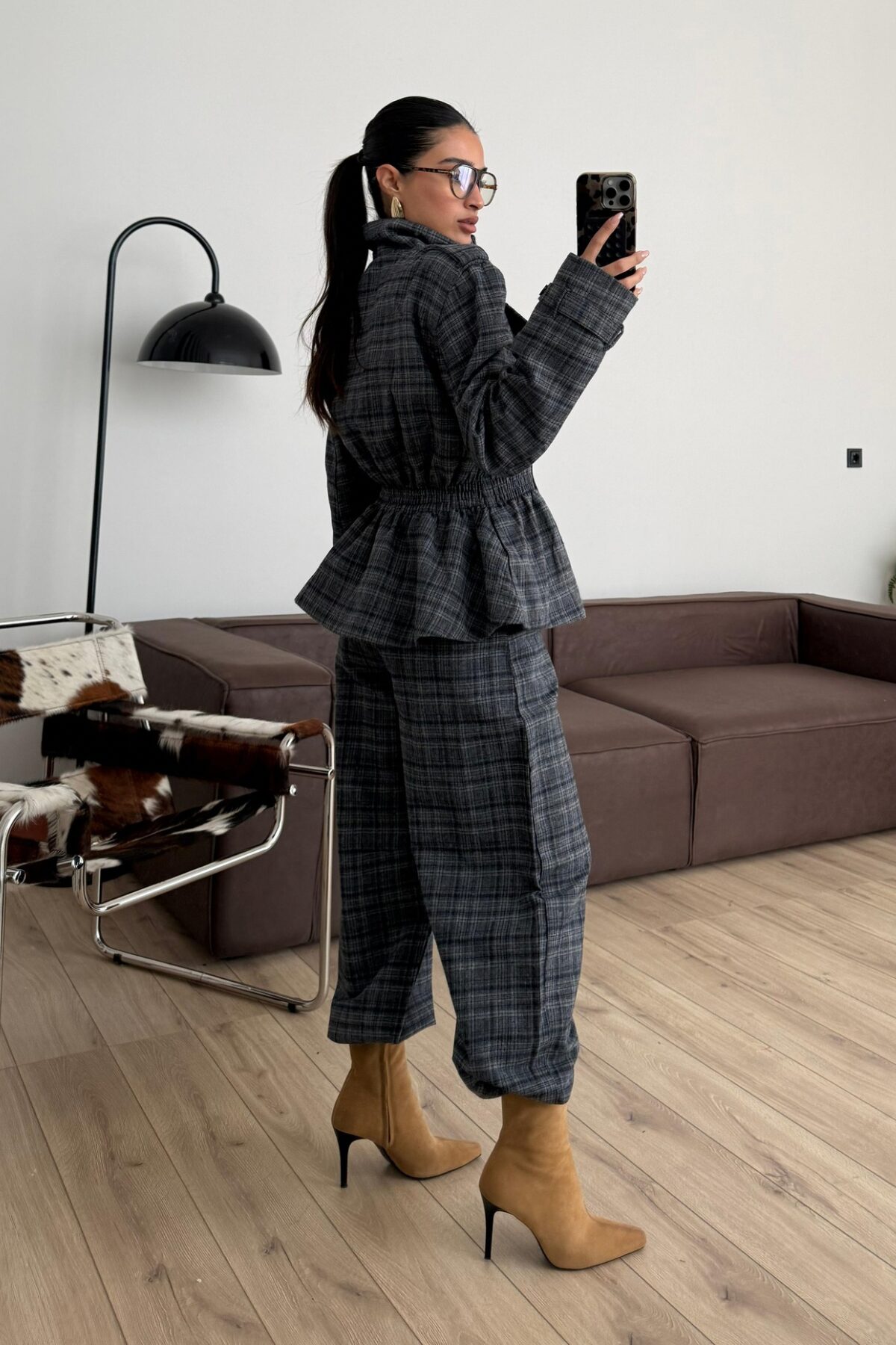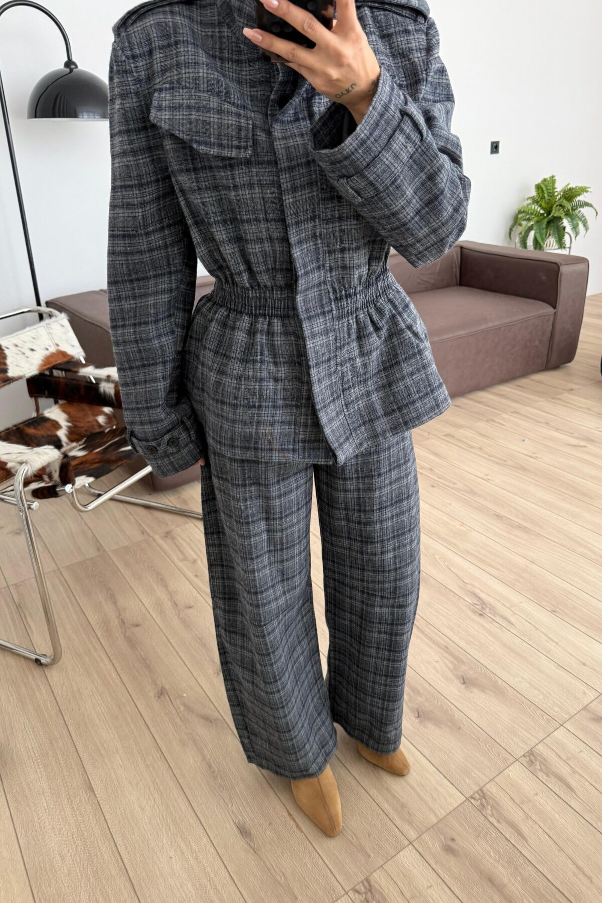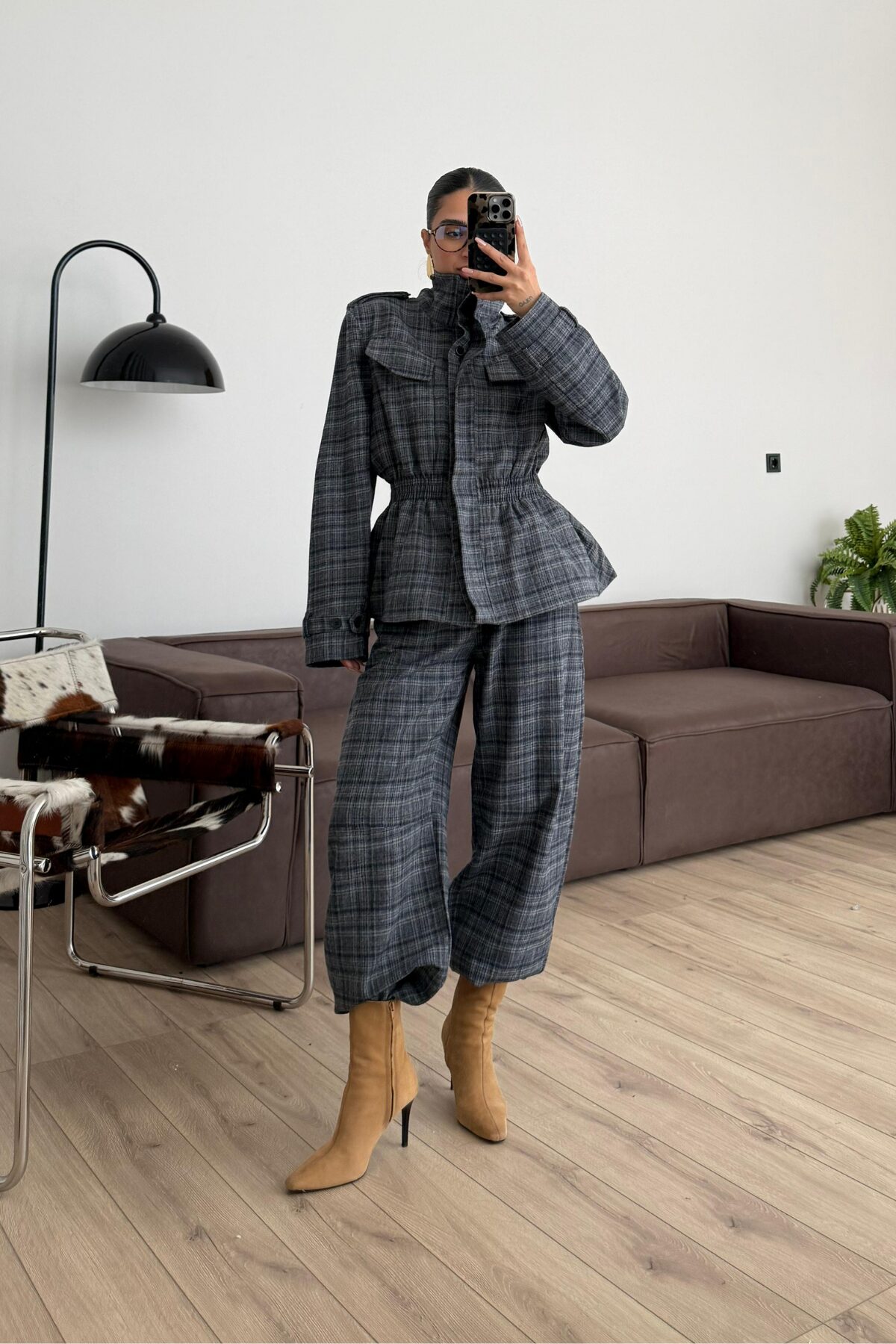 Beli Lastikli Ekose Desenli Takım Lacivert
