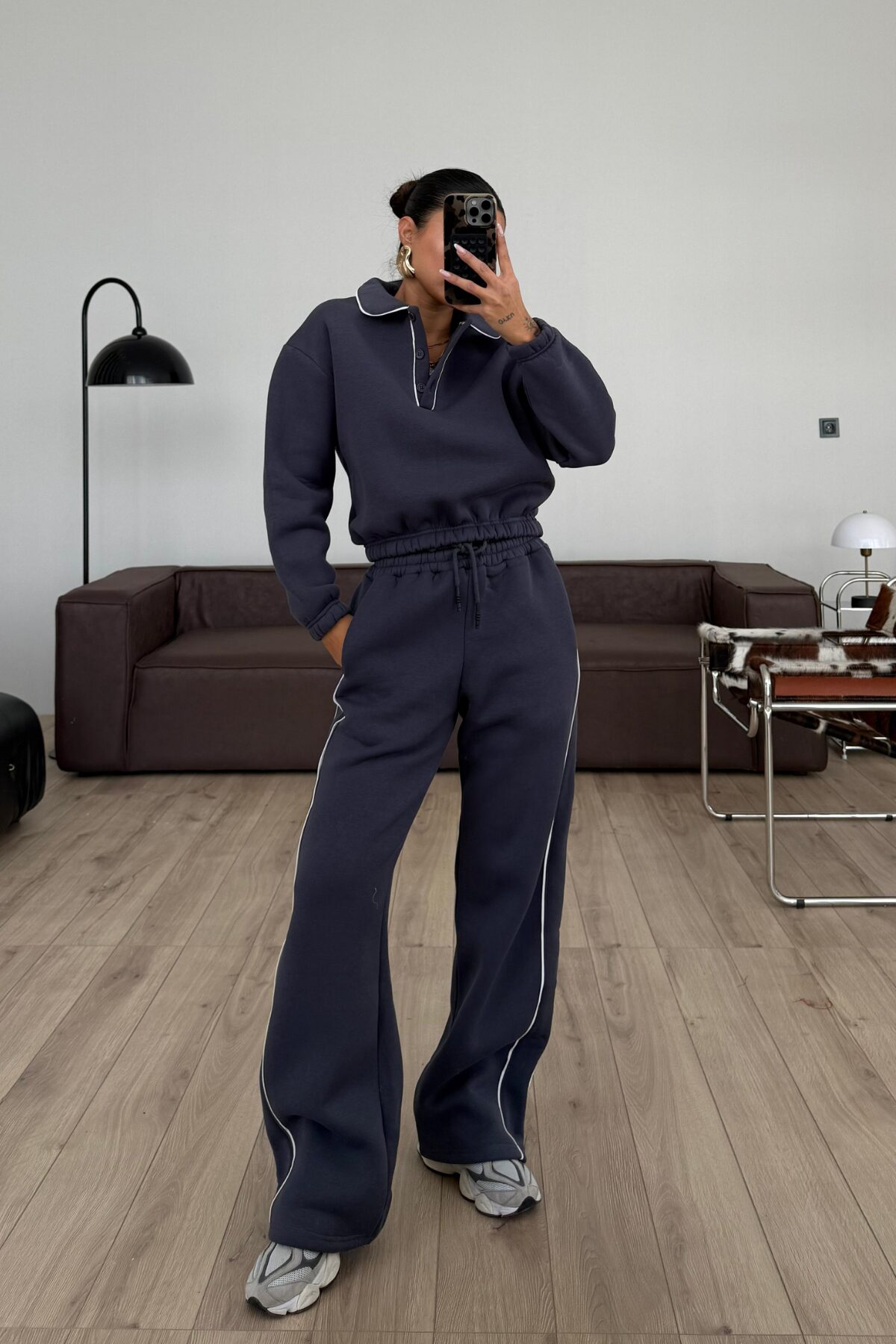 Beli Lastikli Polo yakalı Eşofman Takım Füme