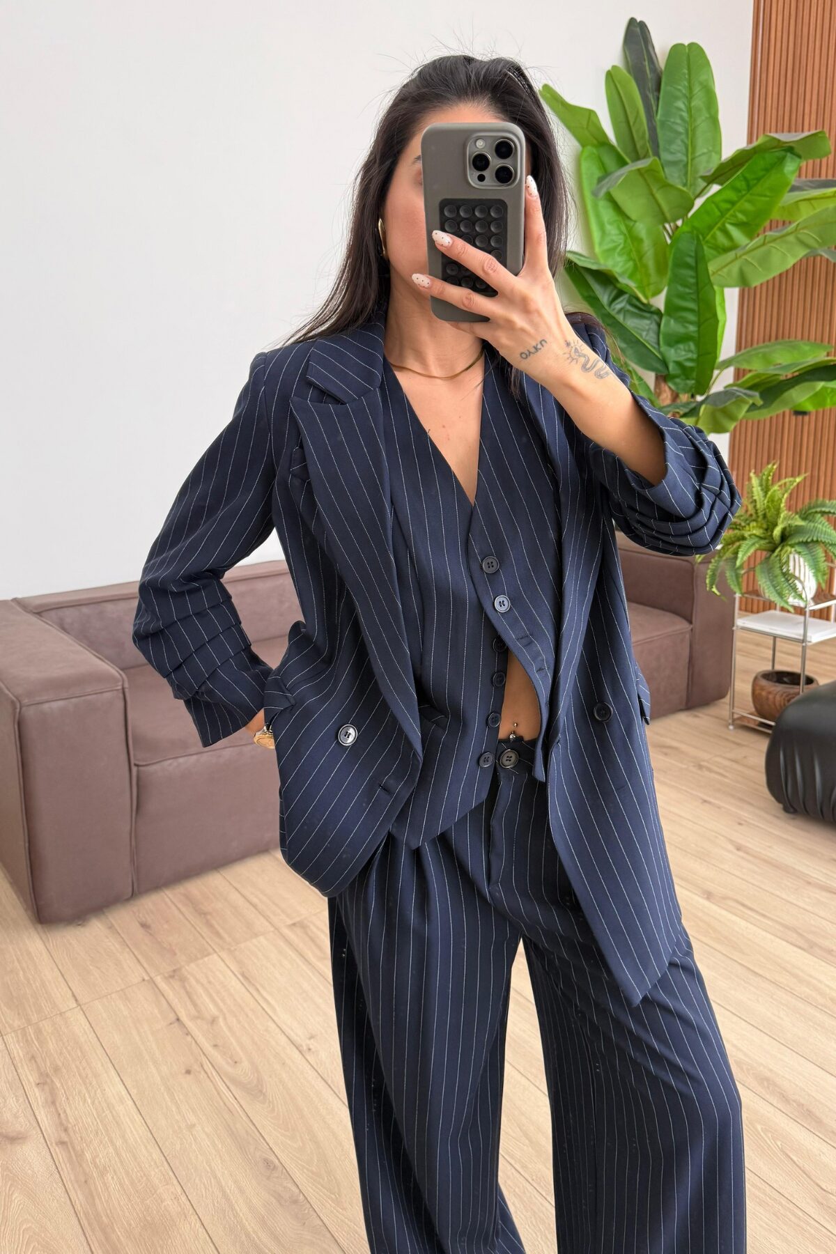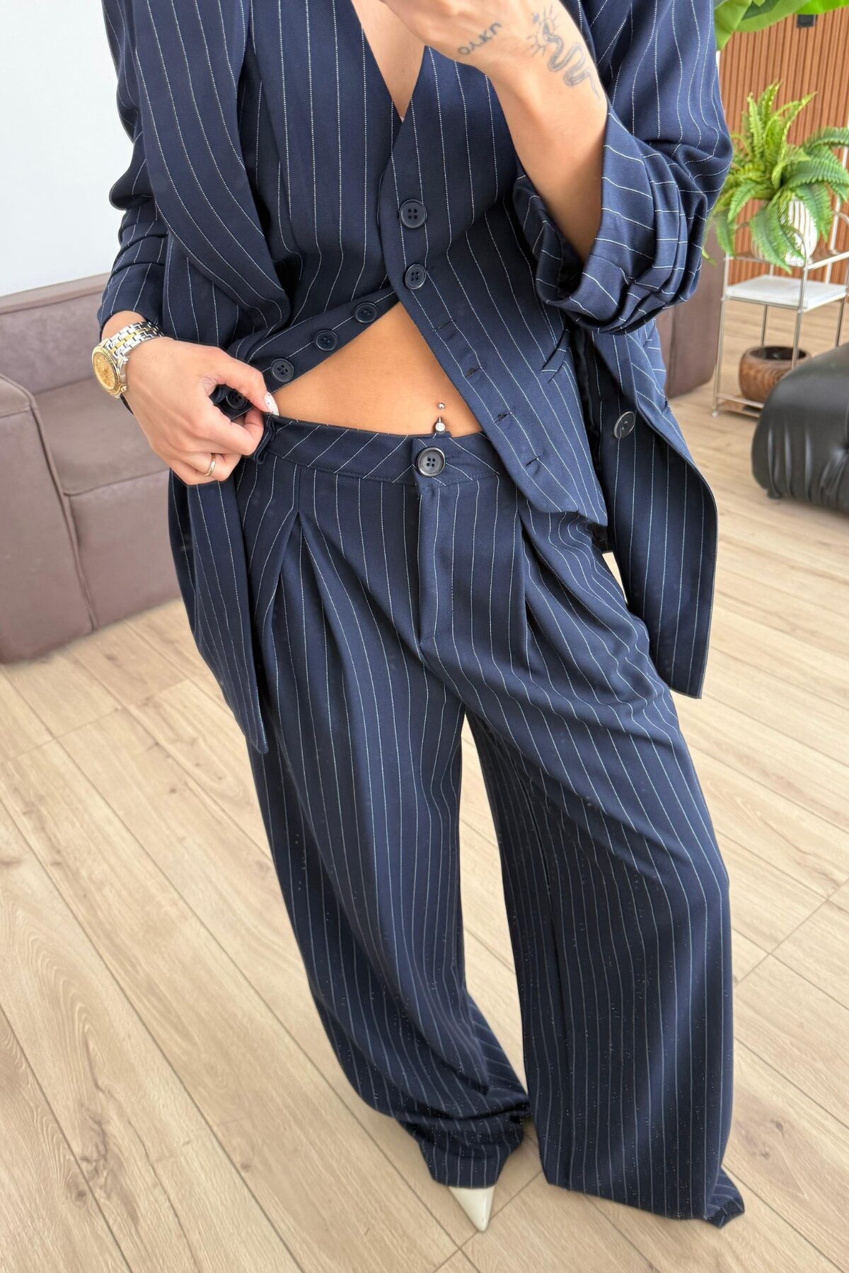 Çizgili Üçlü Takım Lacivert