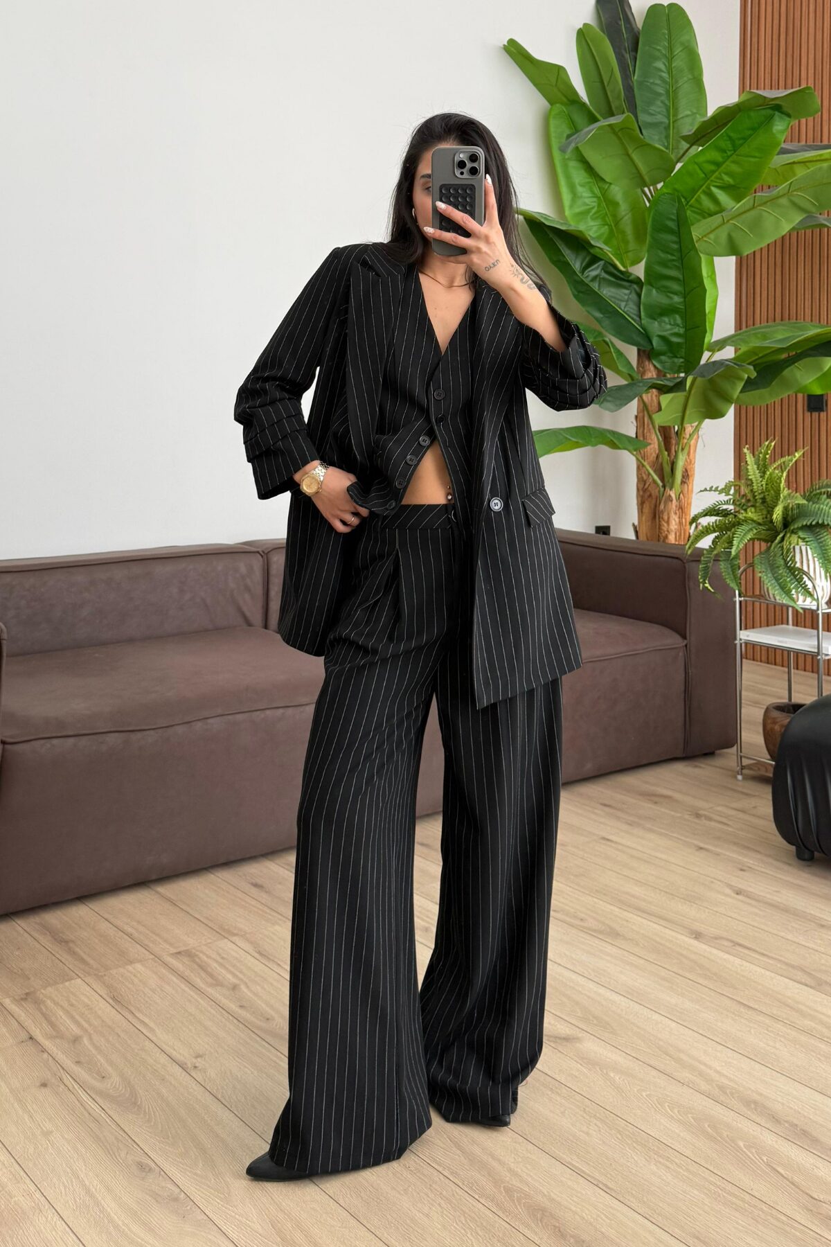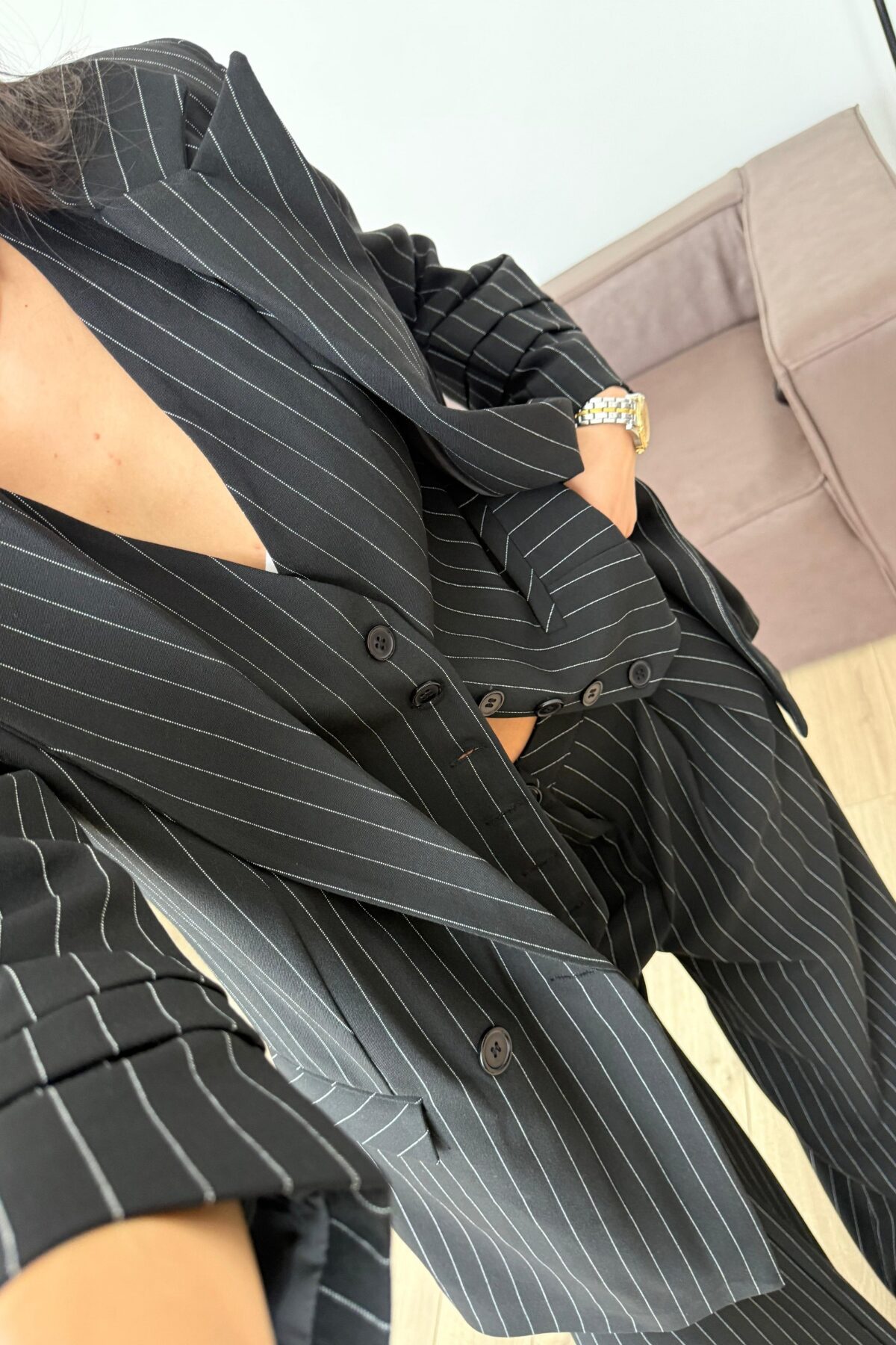 Çizgili Üçlü Takım Siyah