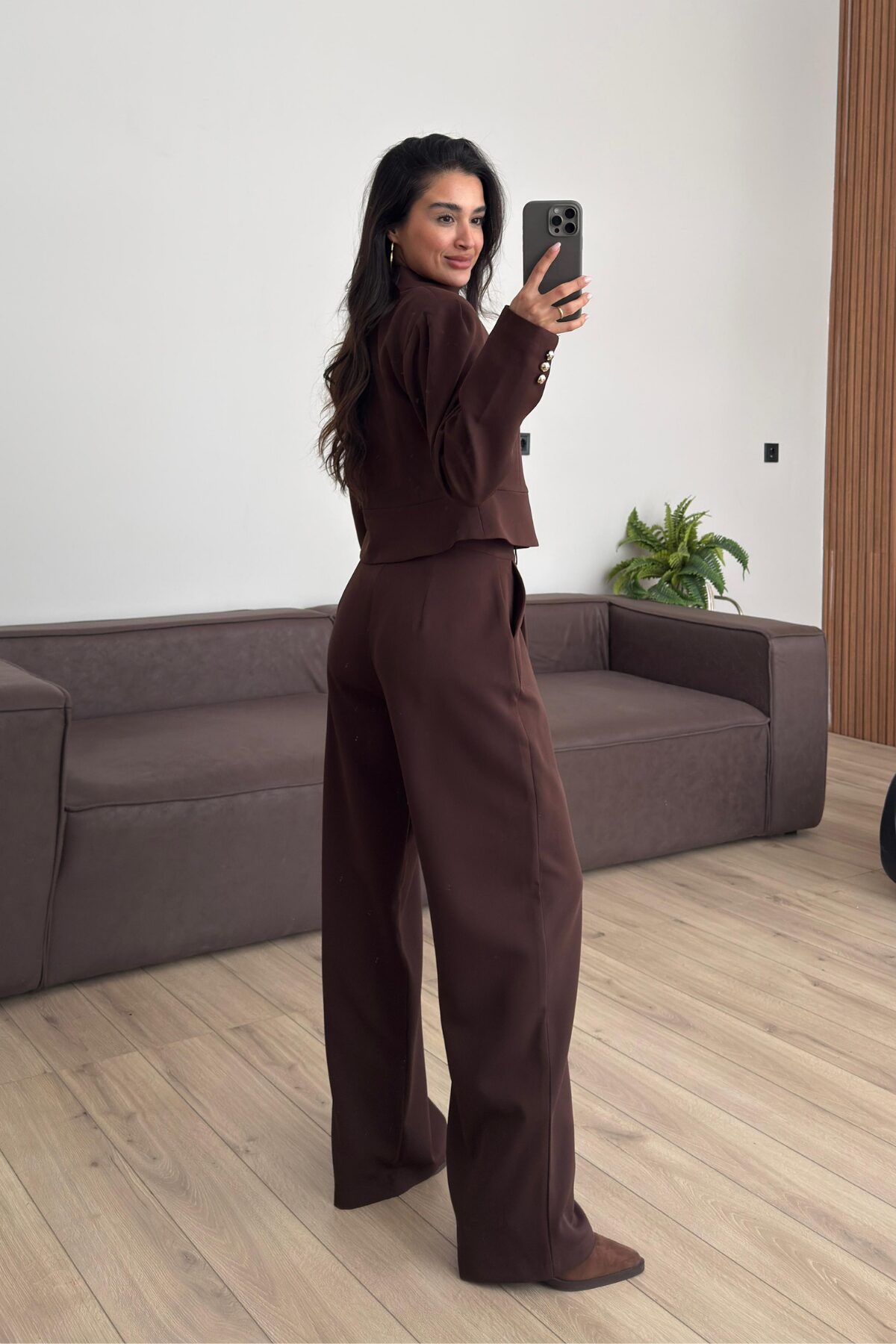 Çok düğmeli Belden Oturtmalı Takım Kahverengi