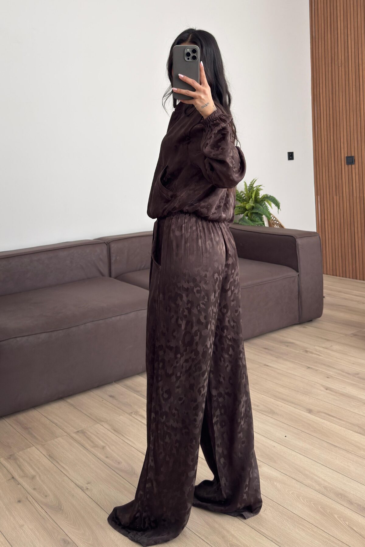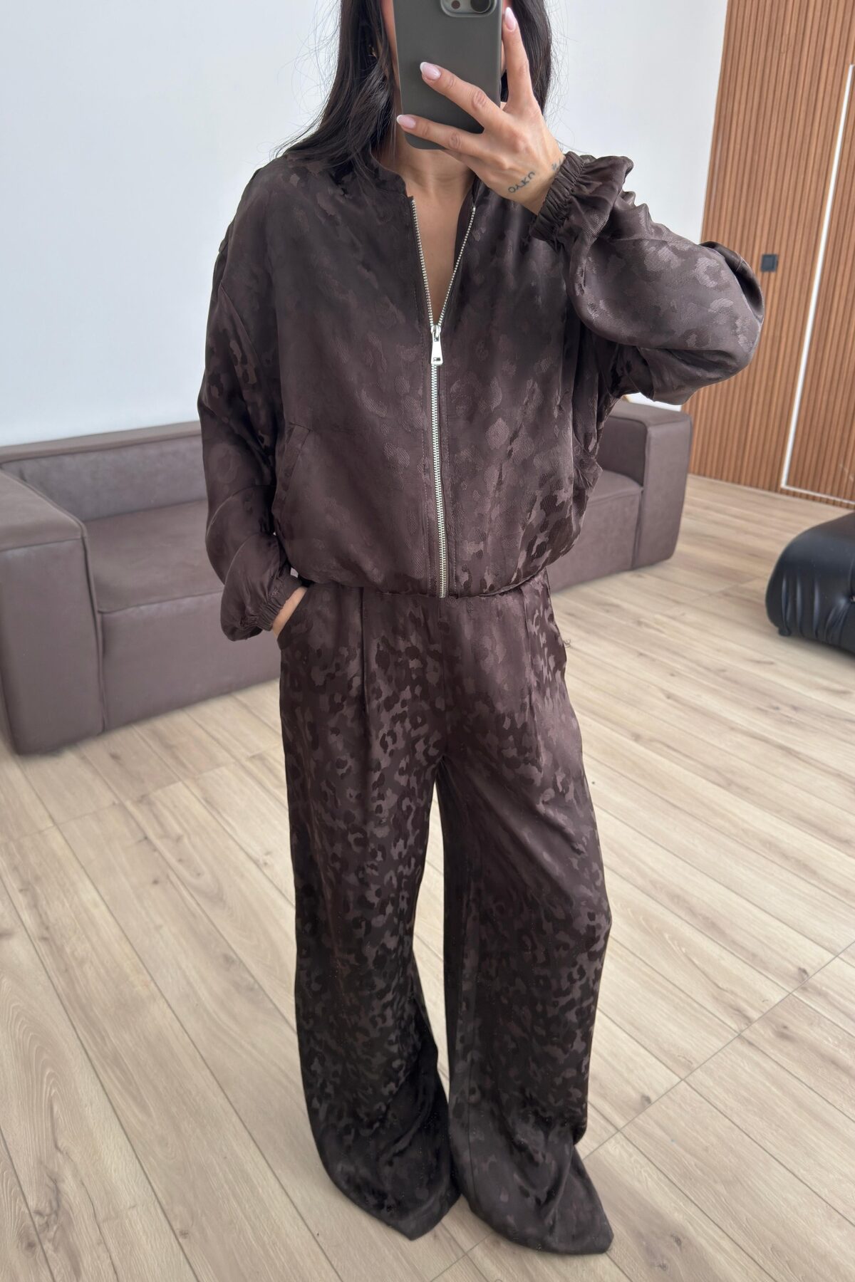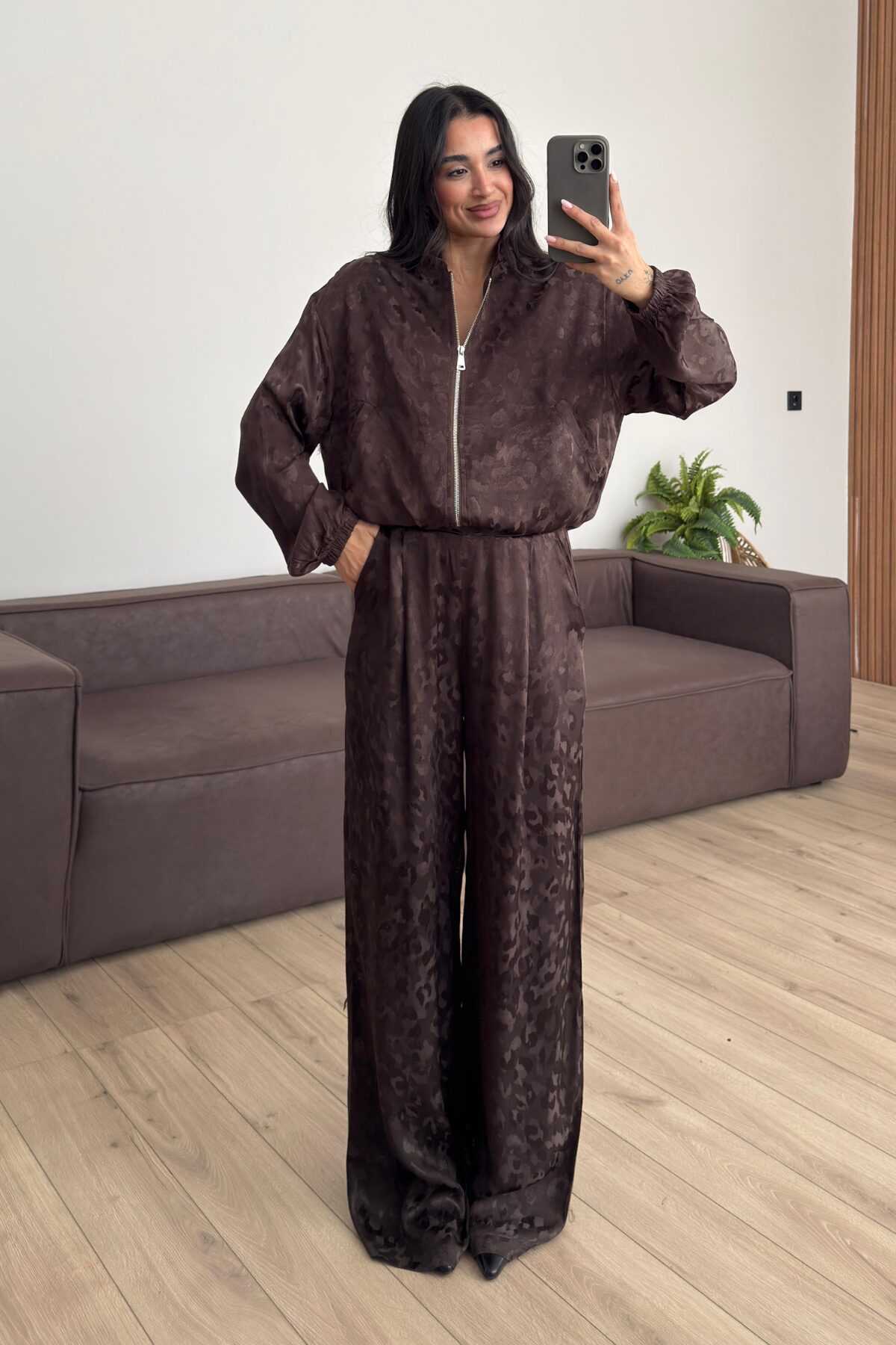 Desenli Fermuarlı Hırka Pantolon Takım Kahverengi