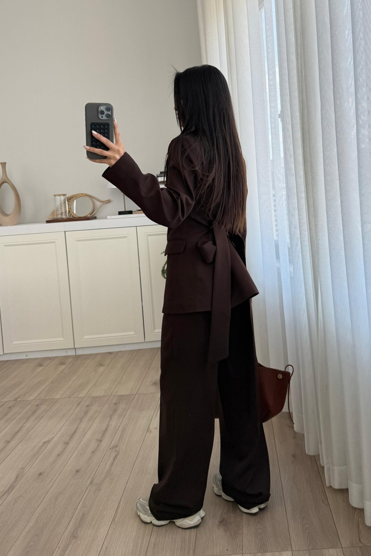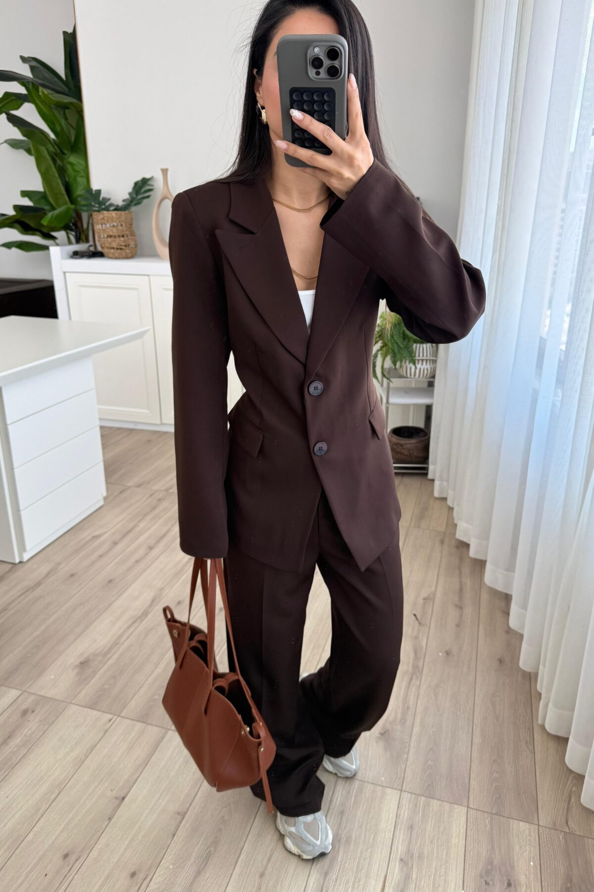 Dora Beli Bağlamalı Ceket Pantolon Takım Kahverengi