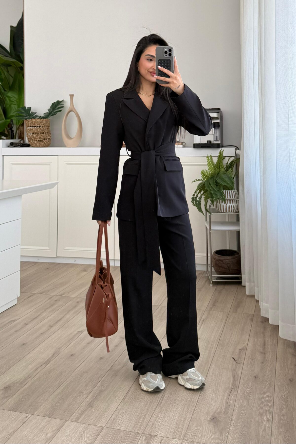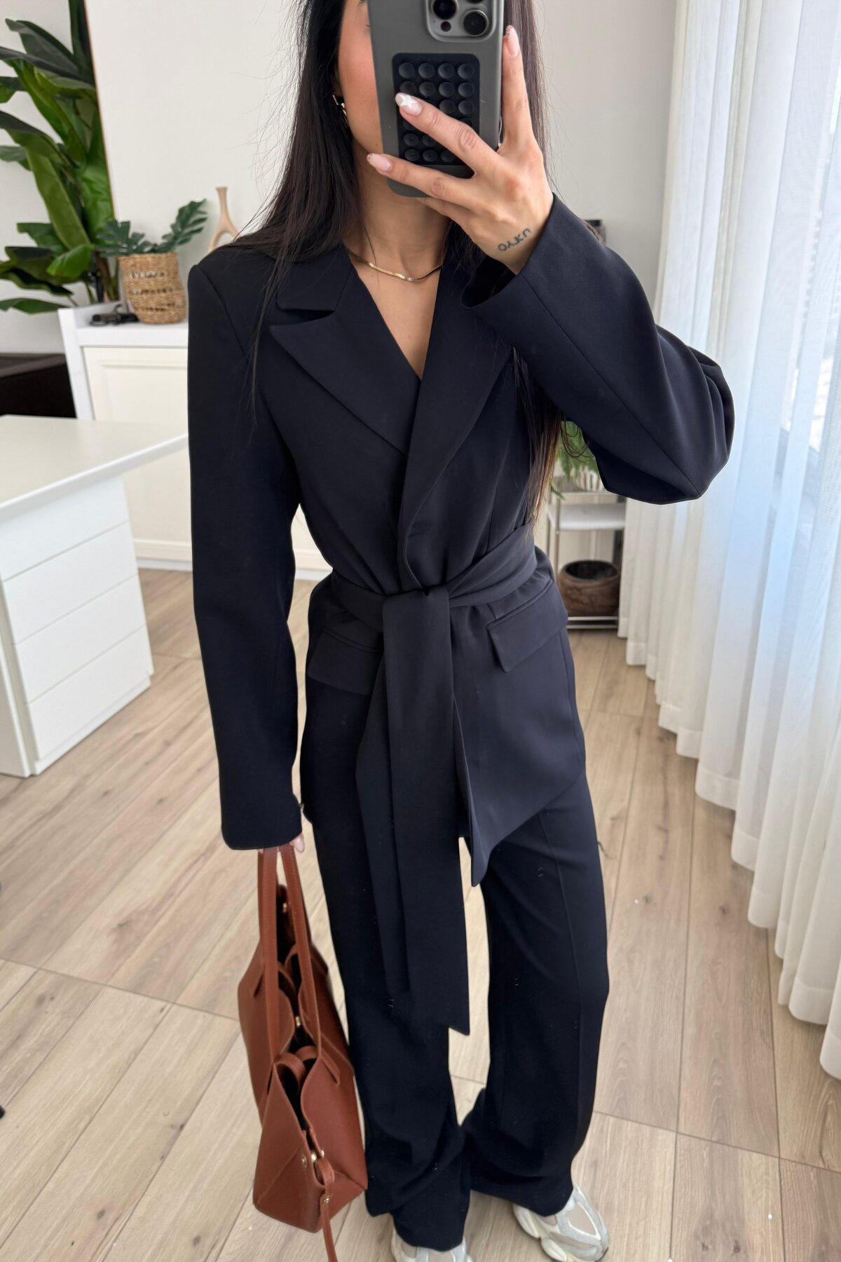 Dora Beli Bağlamalı Ceket Pantolon Takım Siyah