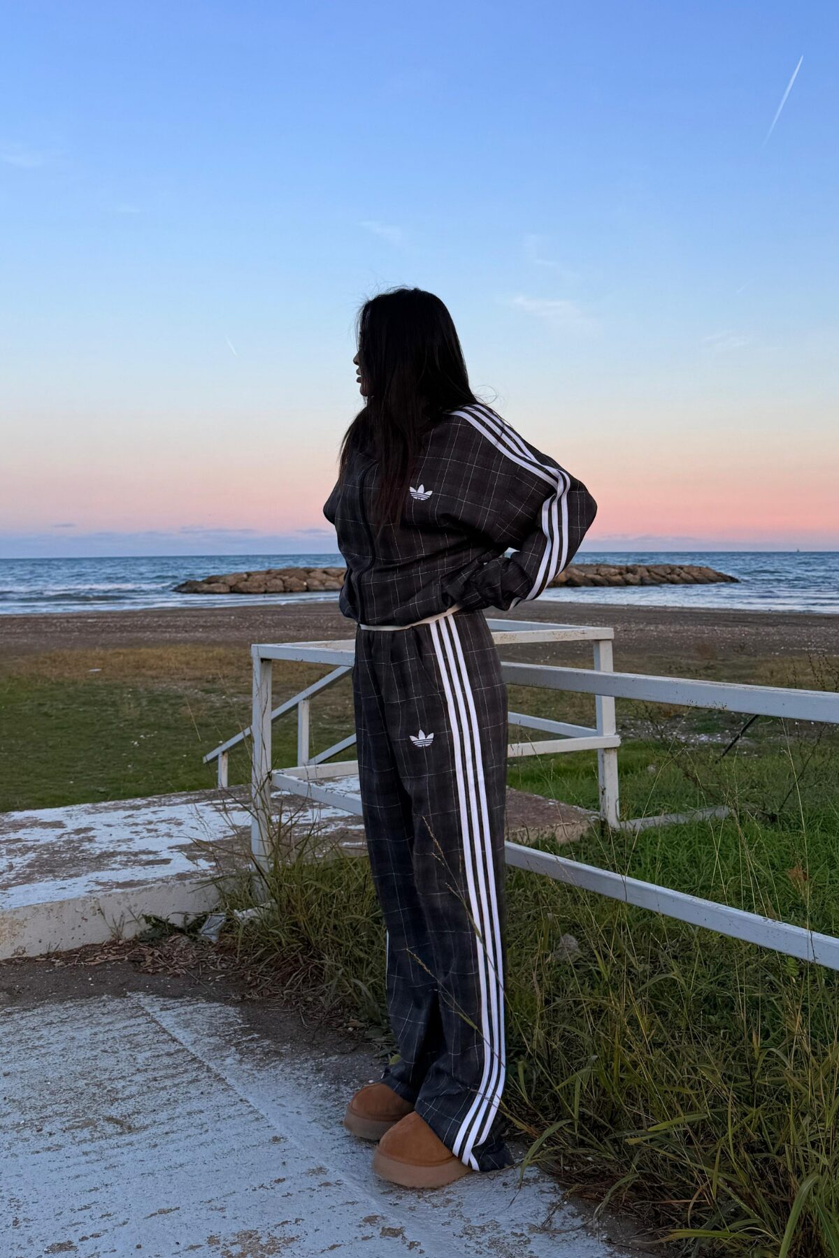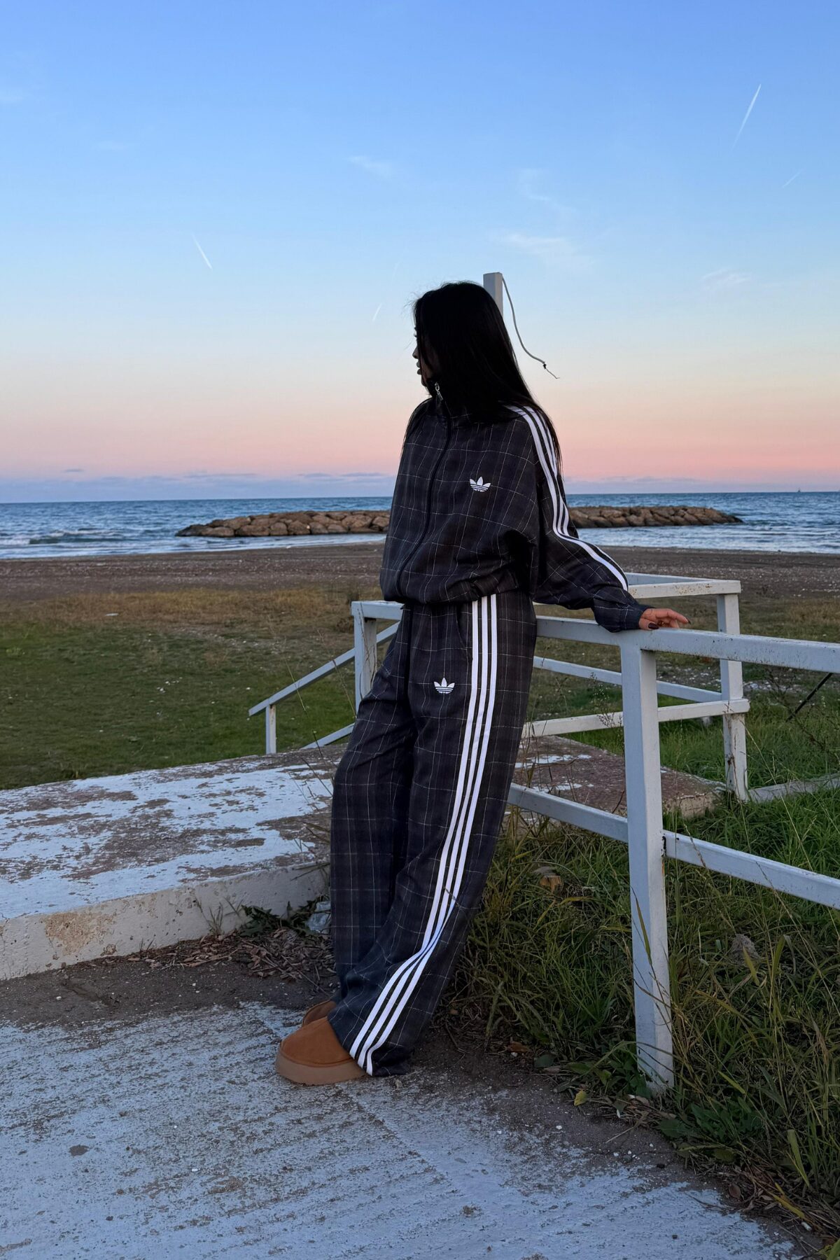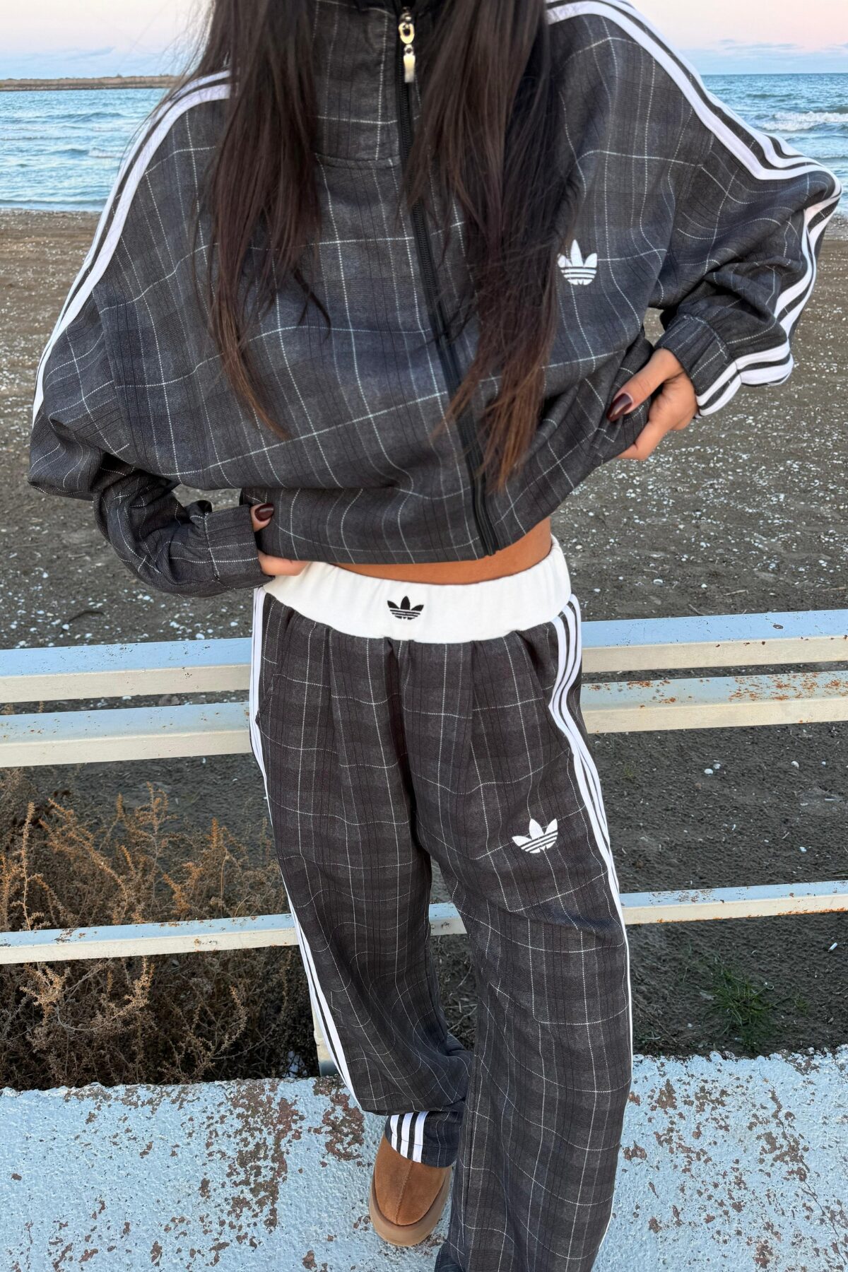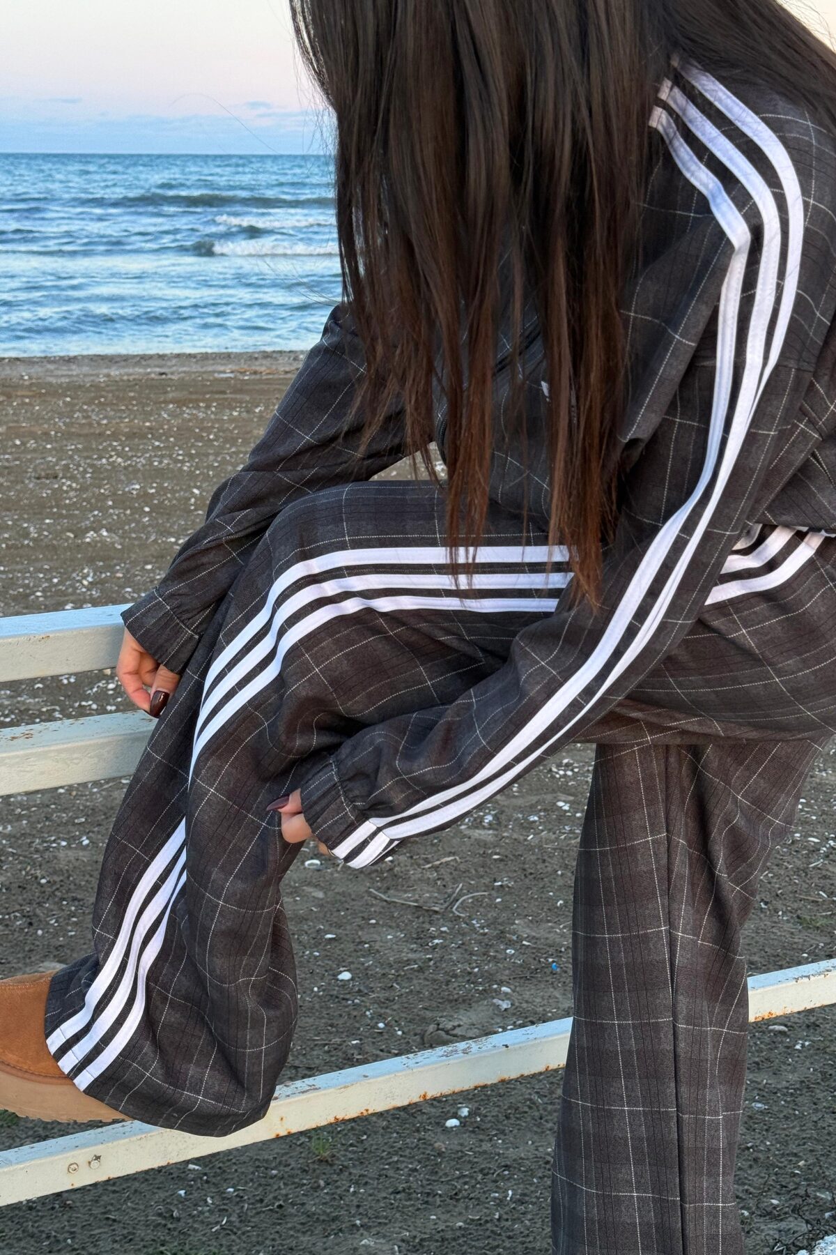 Ekose Desenli Yanları Şeritli Eşofman Takım Antrasit