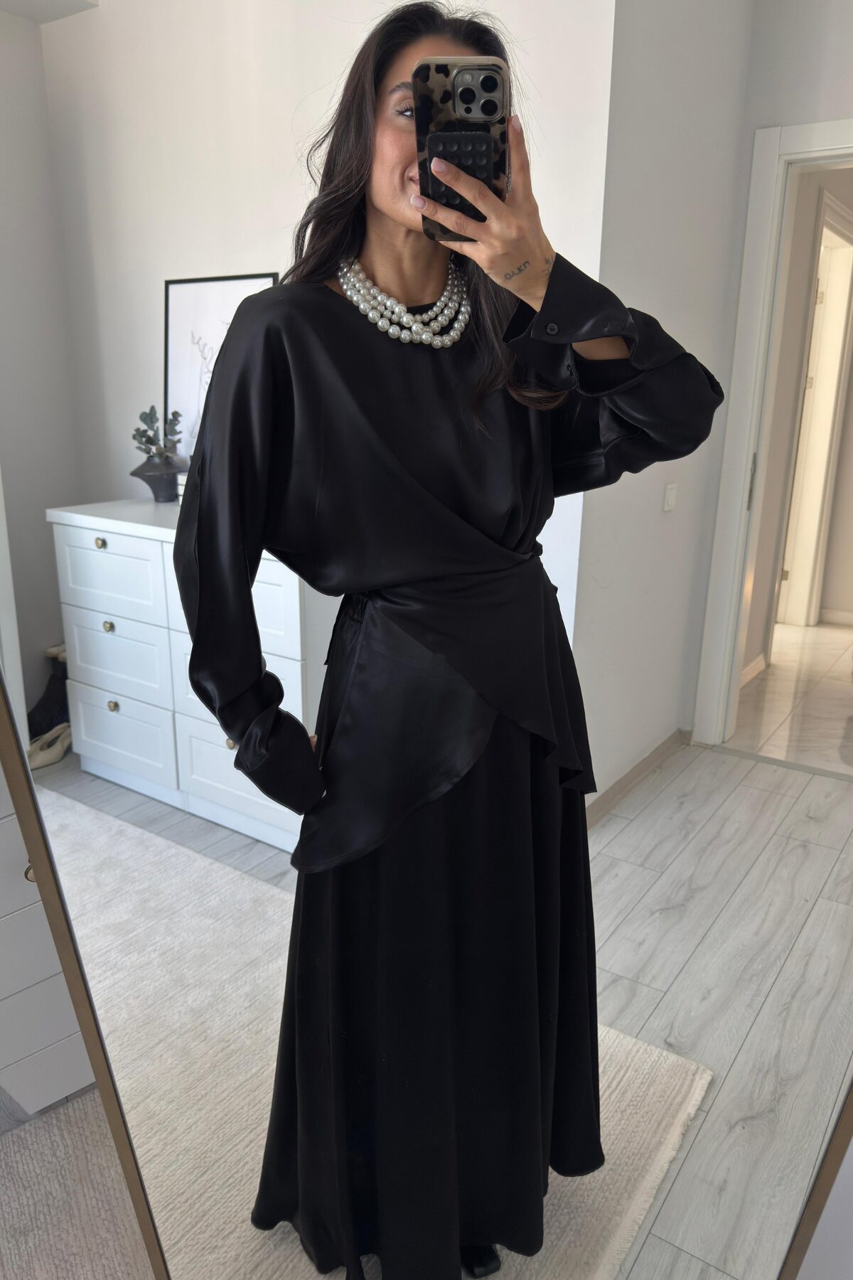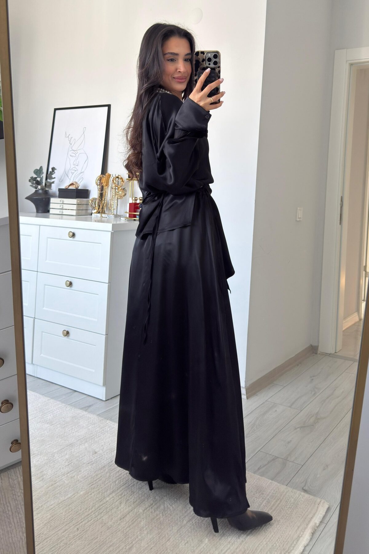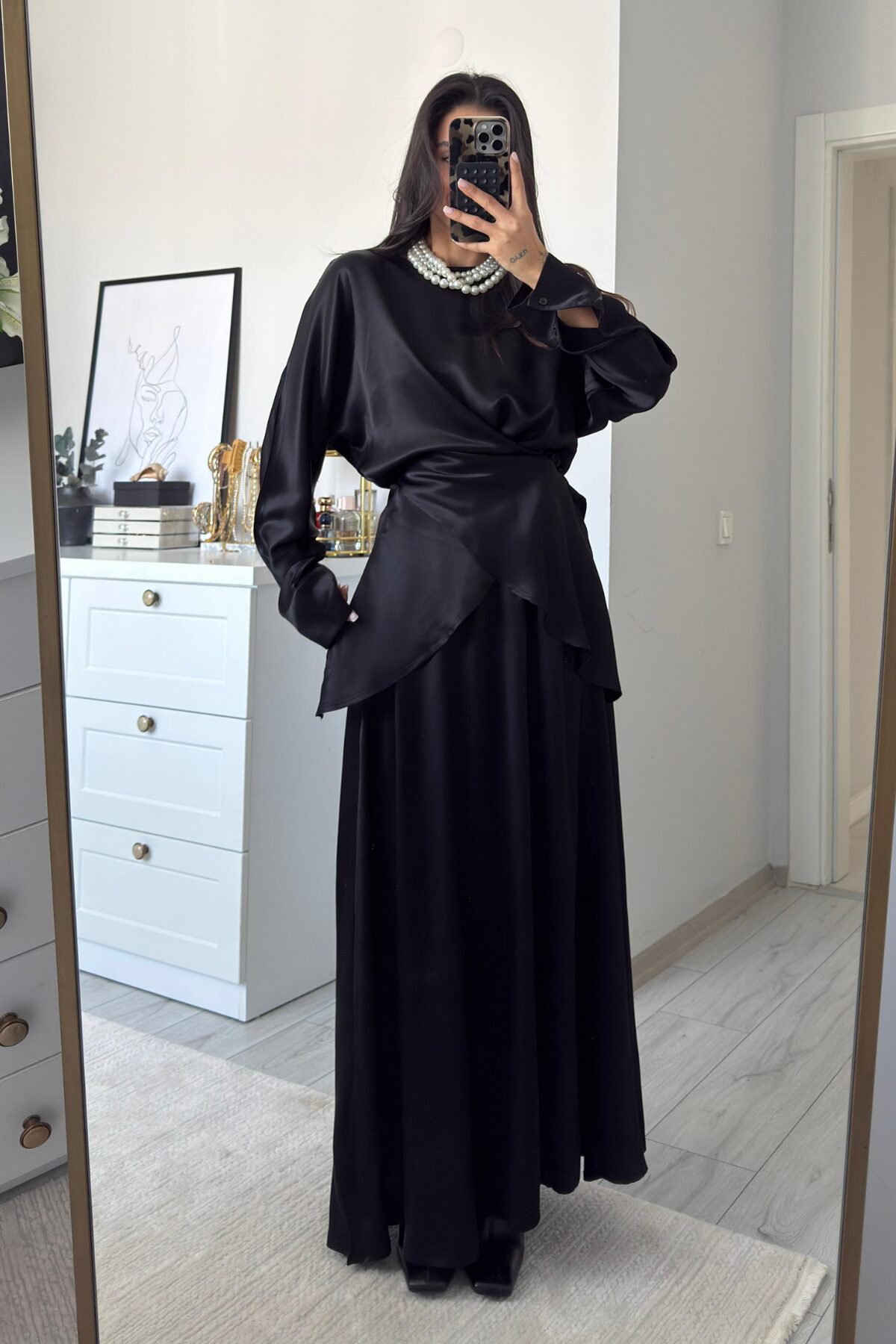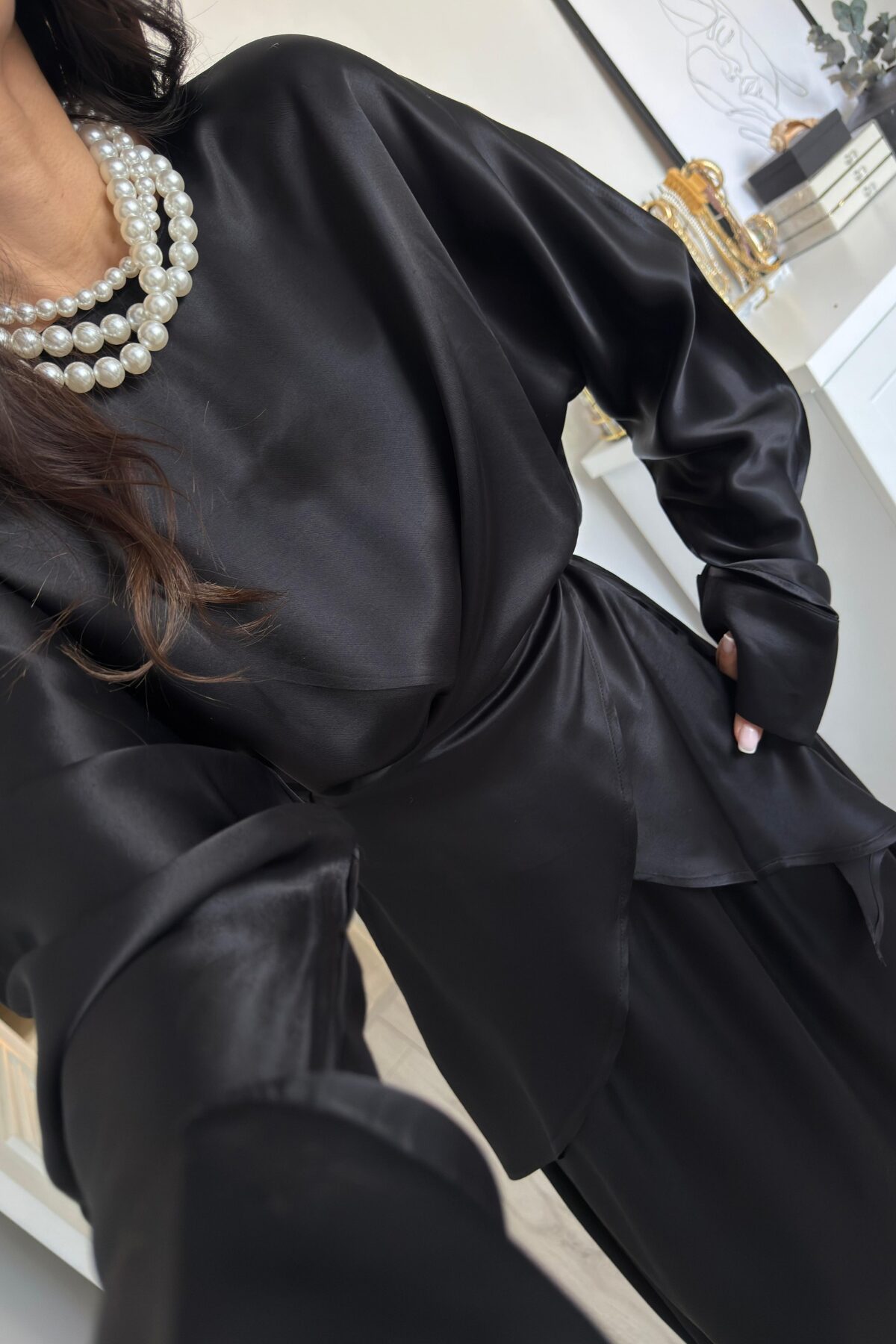 Floş Saten Etek Takım Siyah