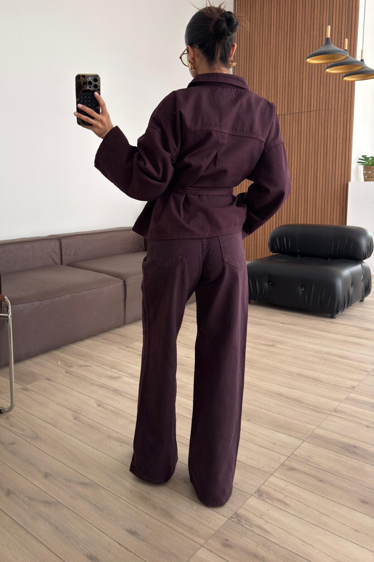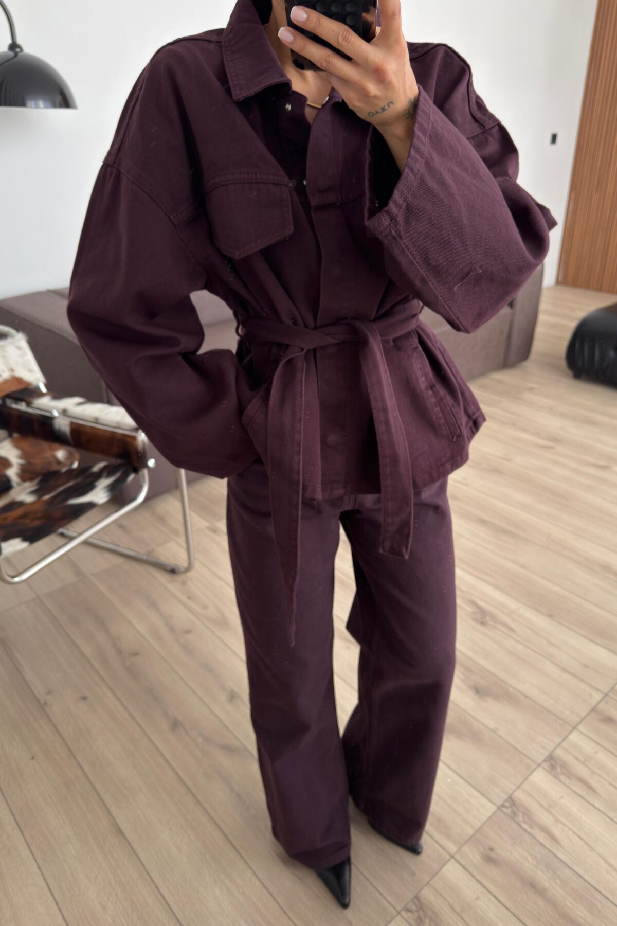 Fuly Denim Gömlek Pantolon Takım Mürdüm