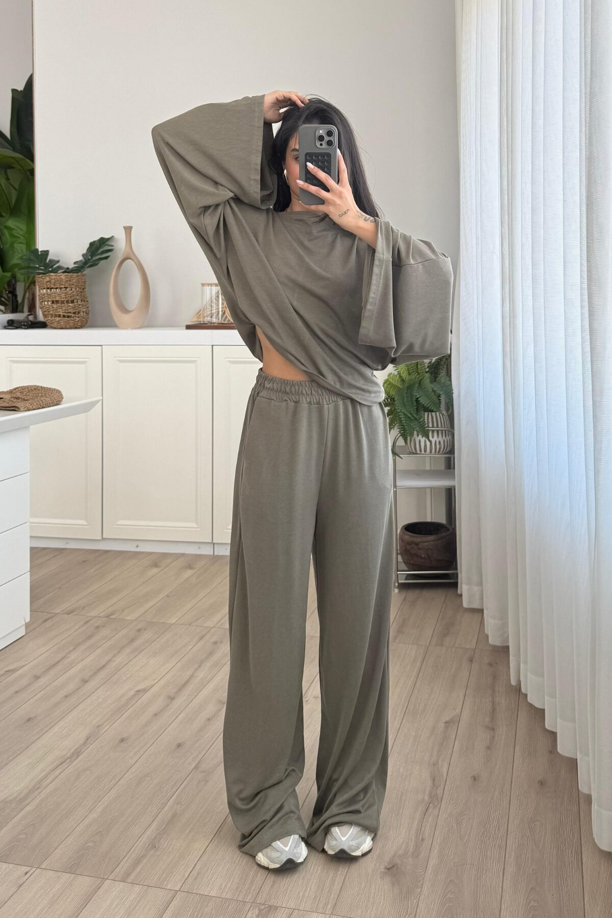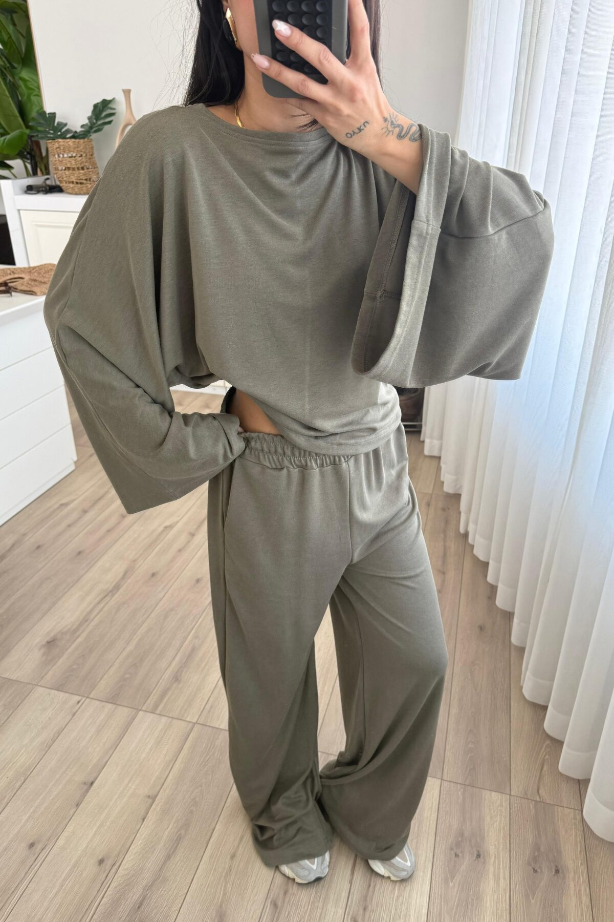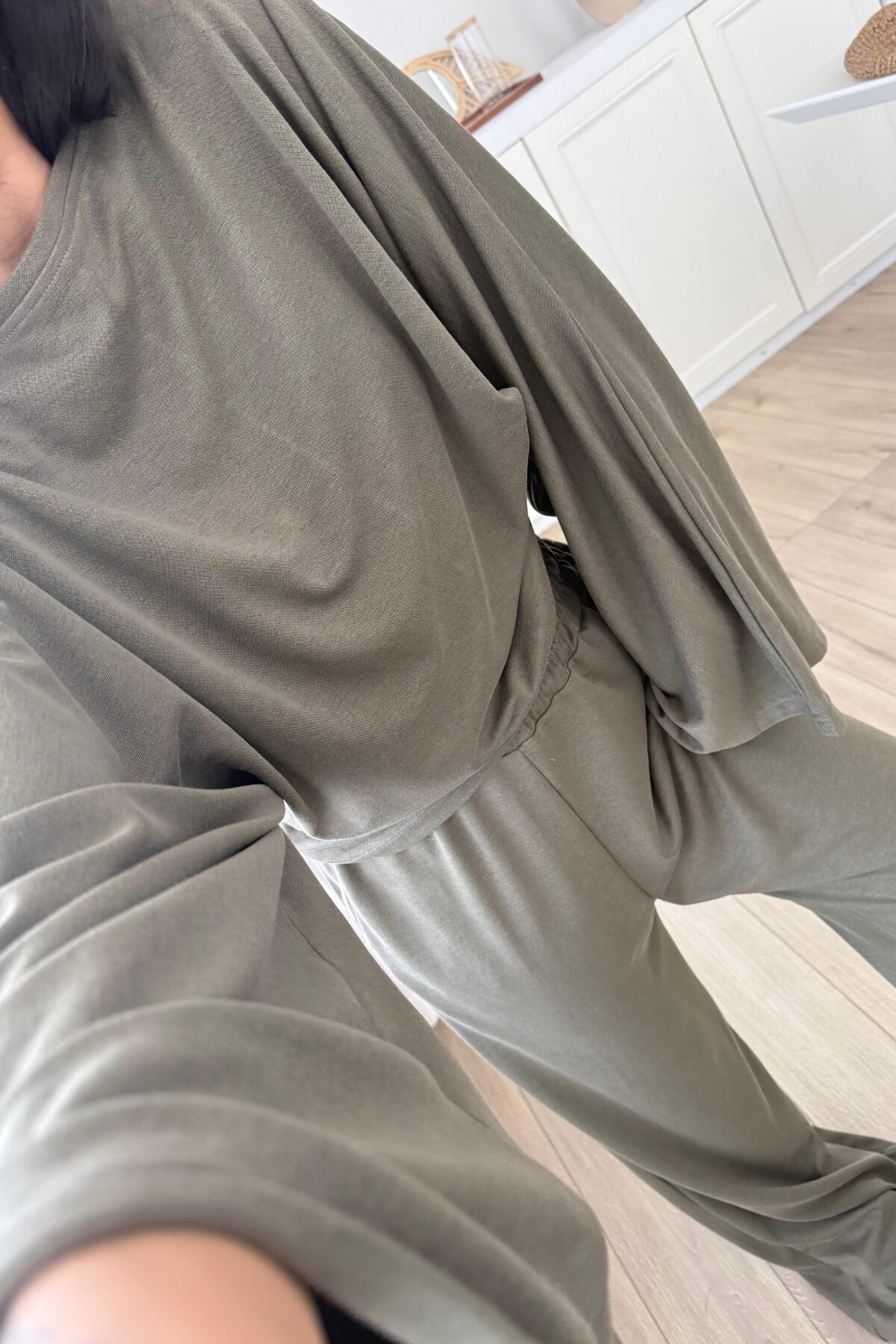 Geniş Kol Bluz Pantolon Takım Haki