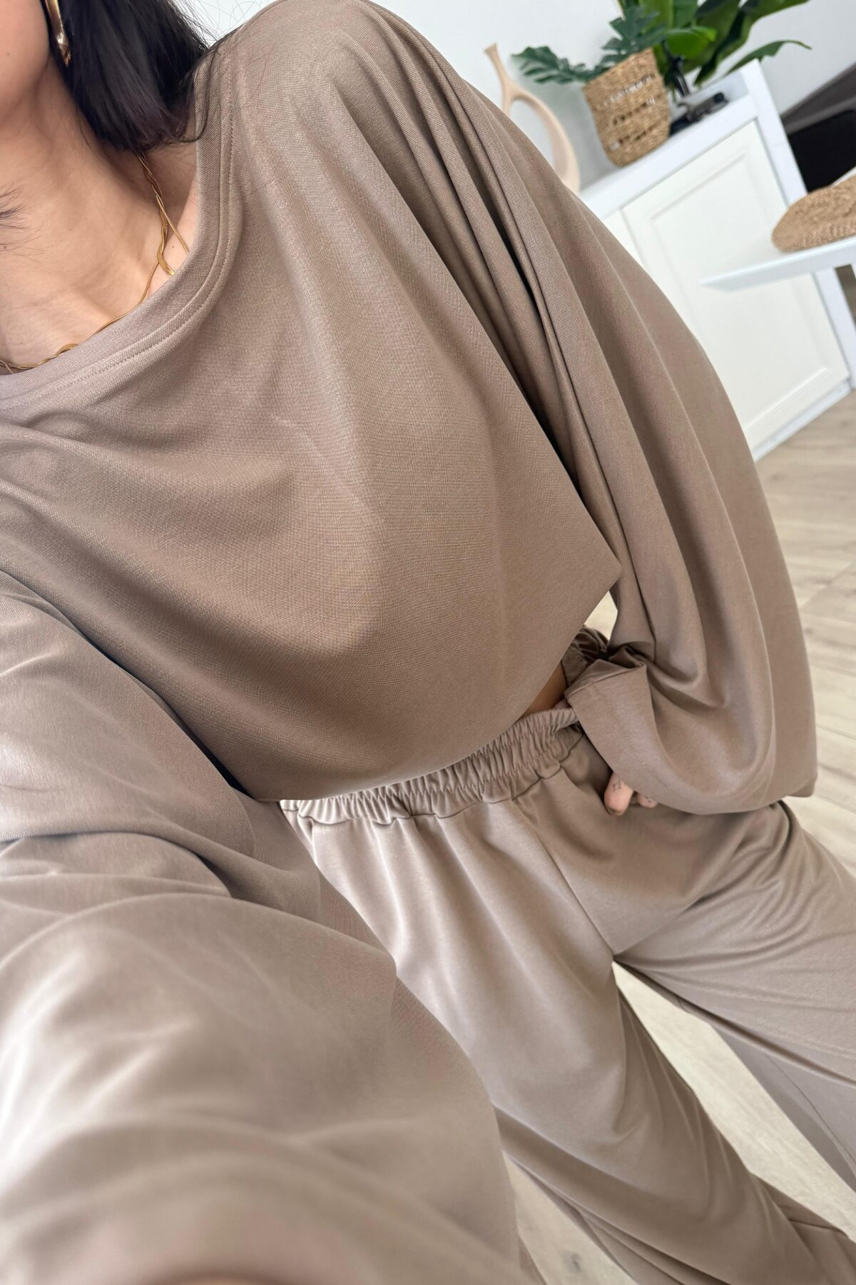 Geniş Kol Bluz Pantolon Takım Toprak