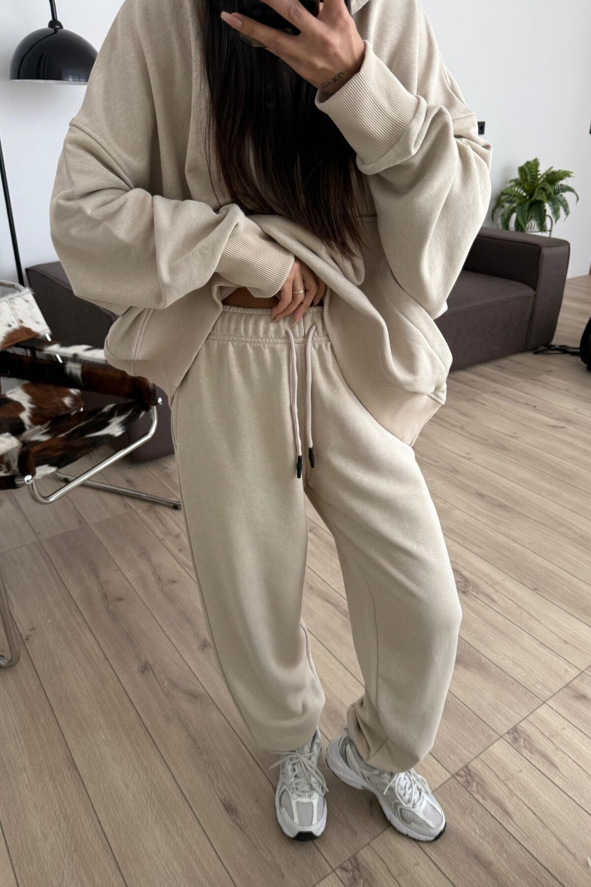 Geniş Kollu Oversize Eşofman Takım Bej