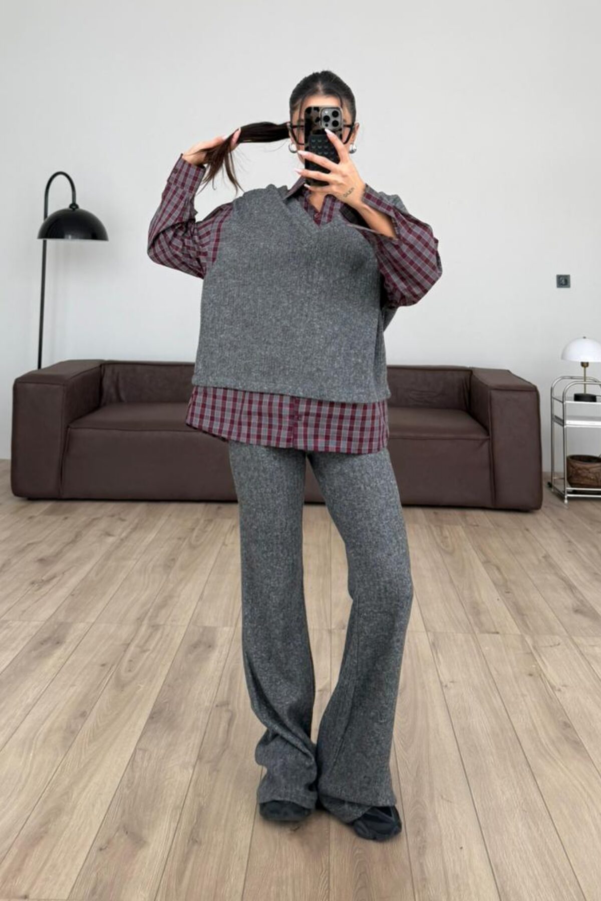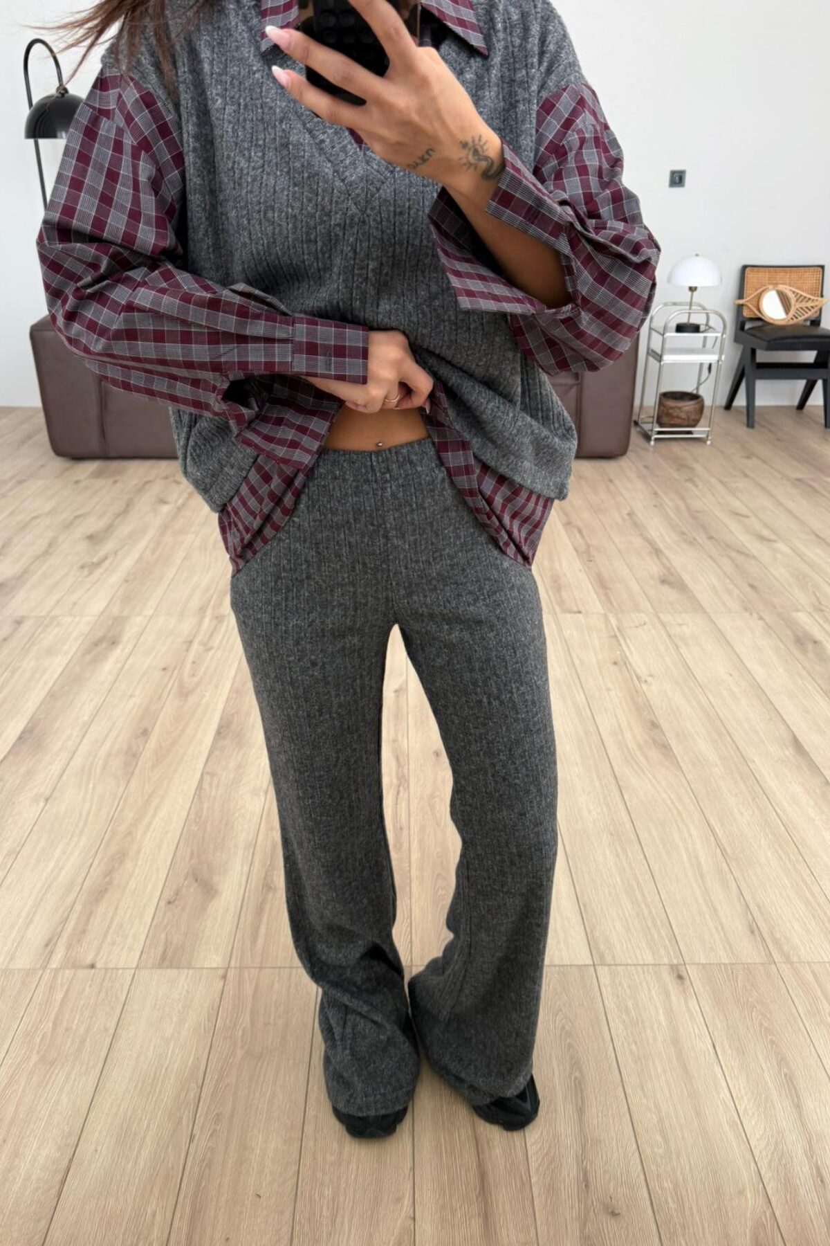 Gömlek Detaylı Triko Takım Antrasit