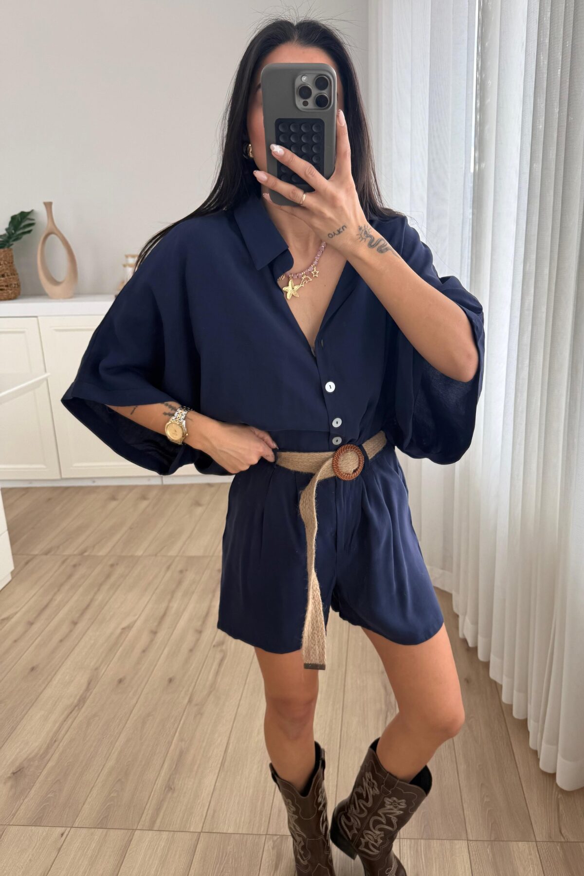 Hasır Kemerli Şort Gömlek Takım Lacivert