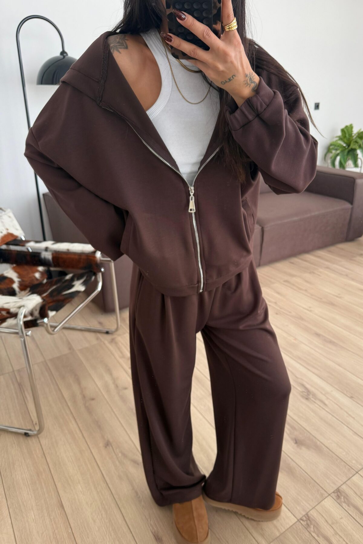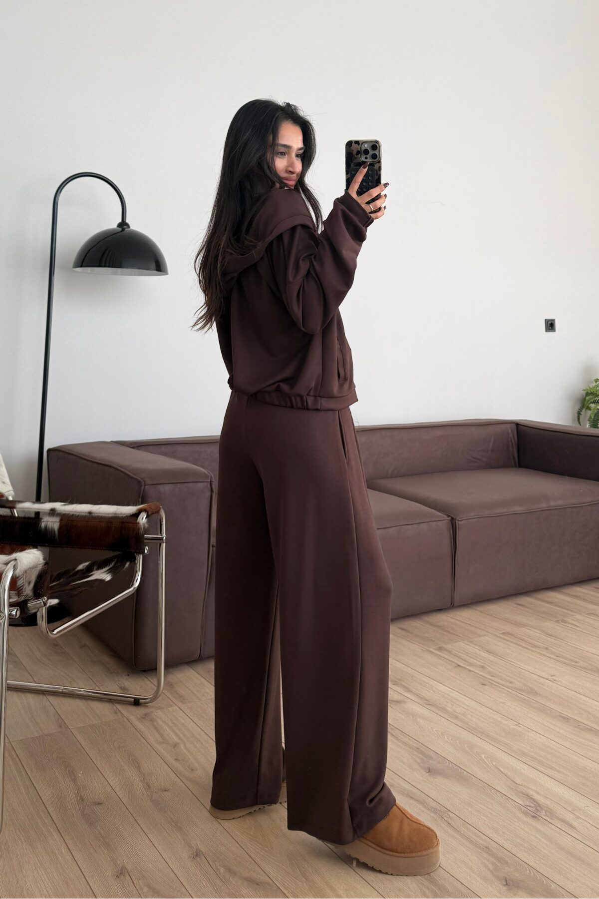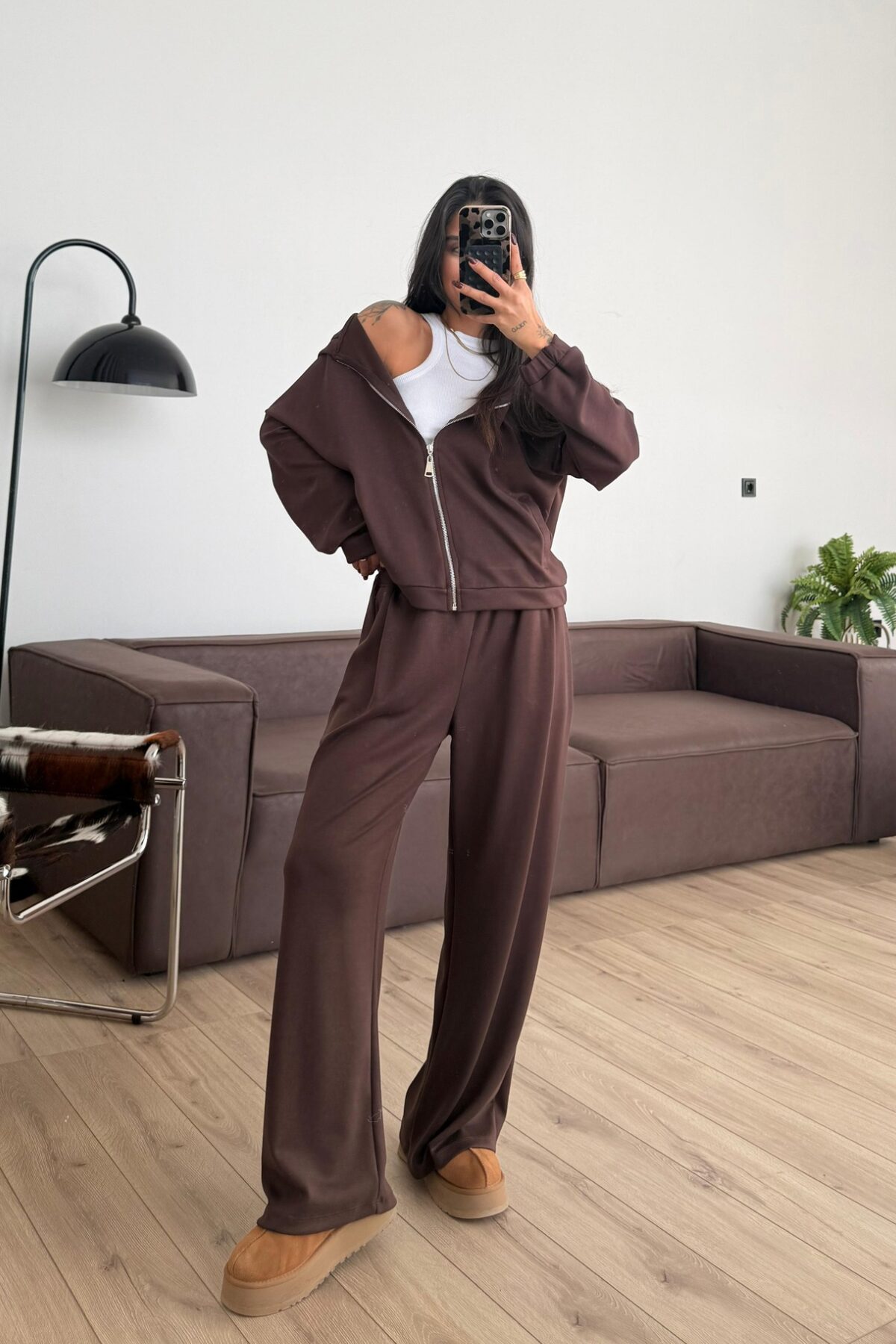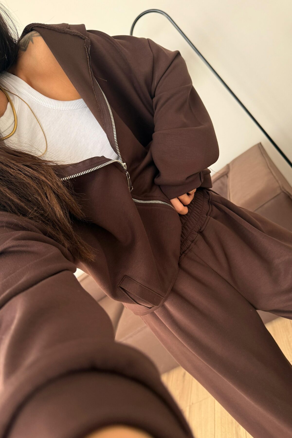 Hırkalı Modal Kumaş Eşofman Takım Kahverengi
