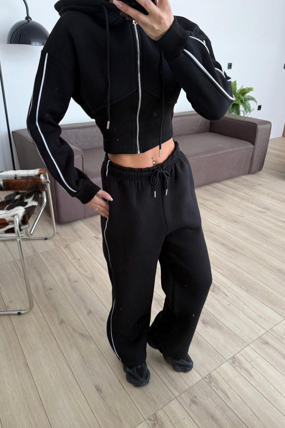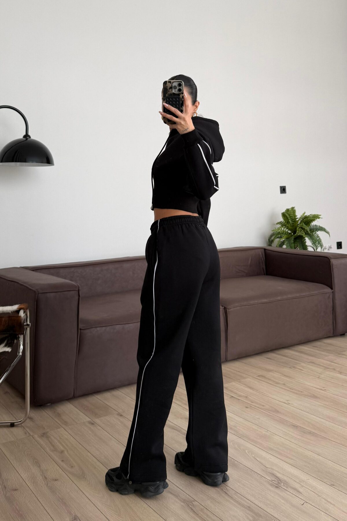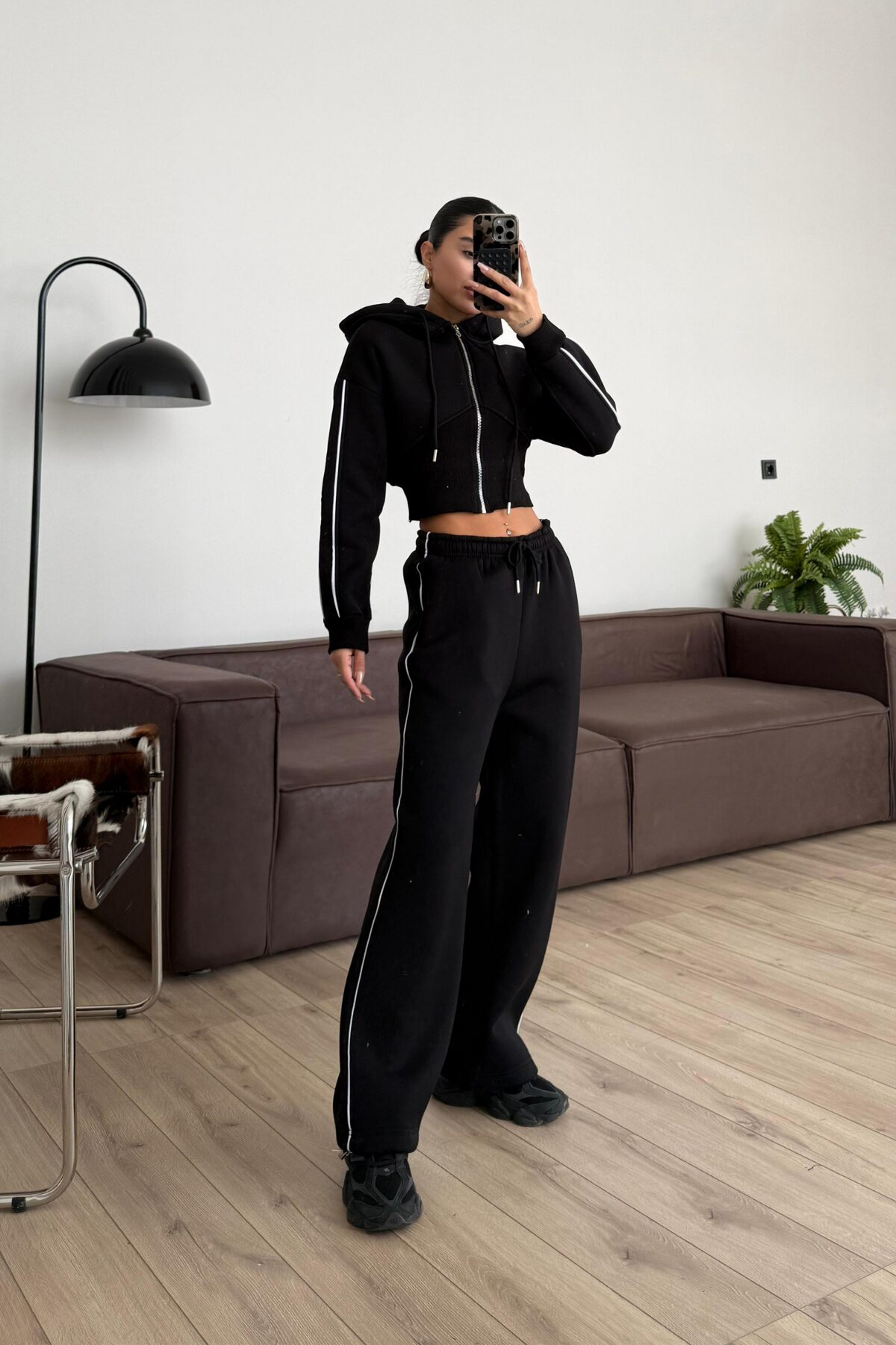 İçi Şardonlu Biyeli Eşofman Takım Siyah