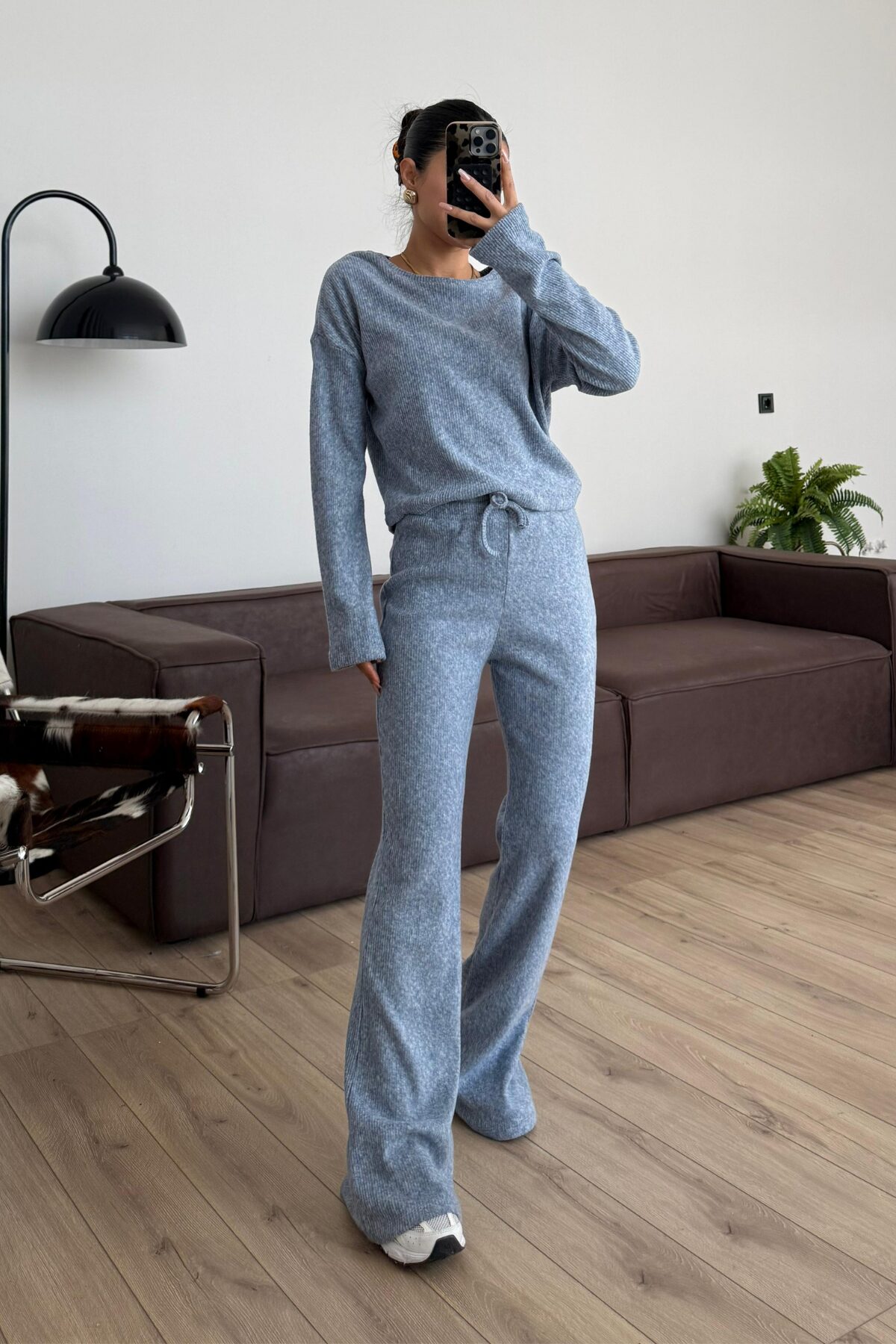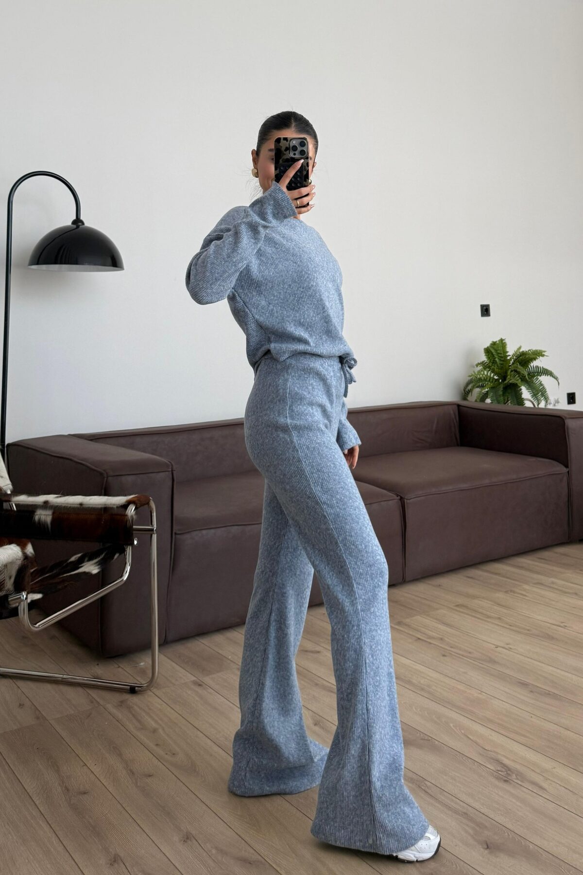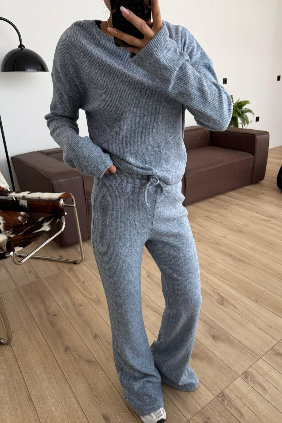 İspanyol Paça Fitilli Triko Takım Mavi