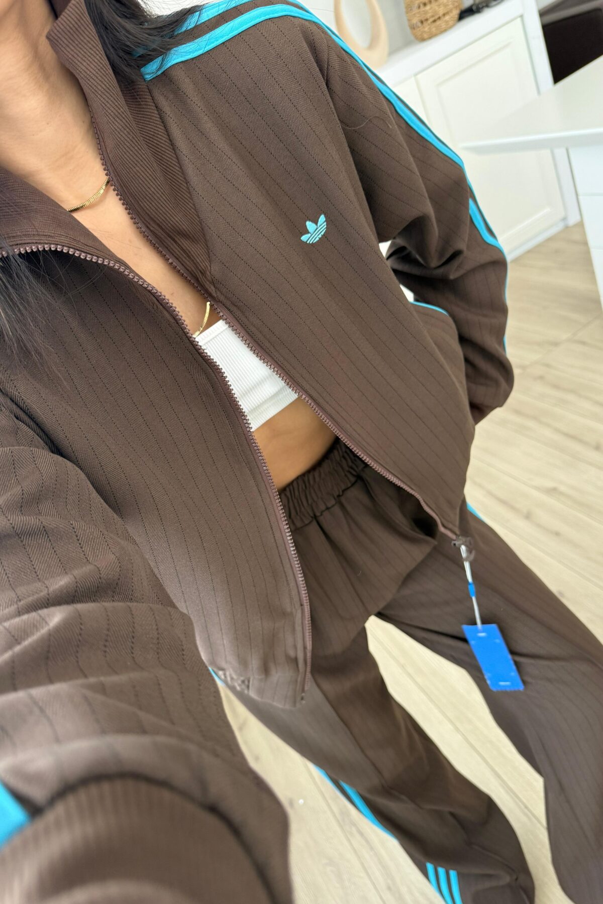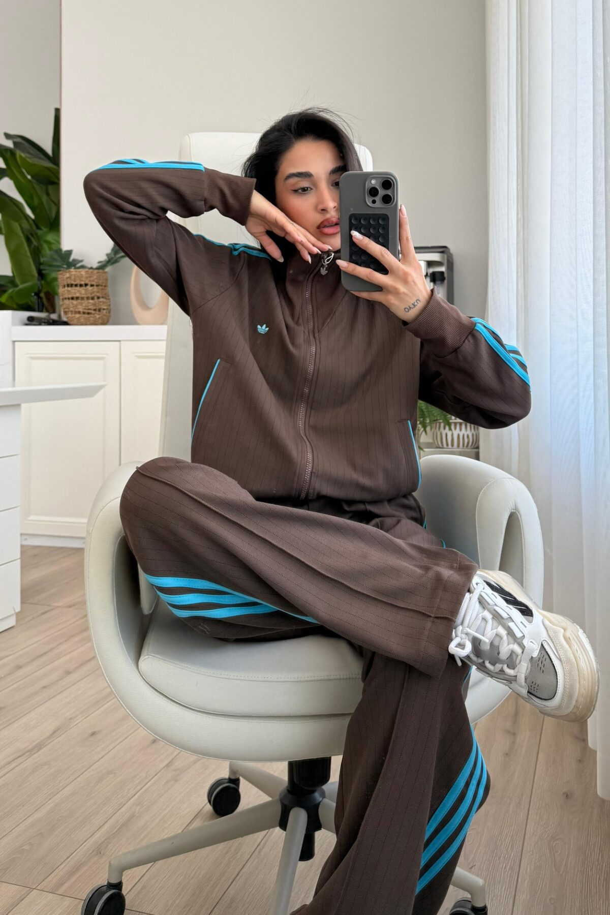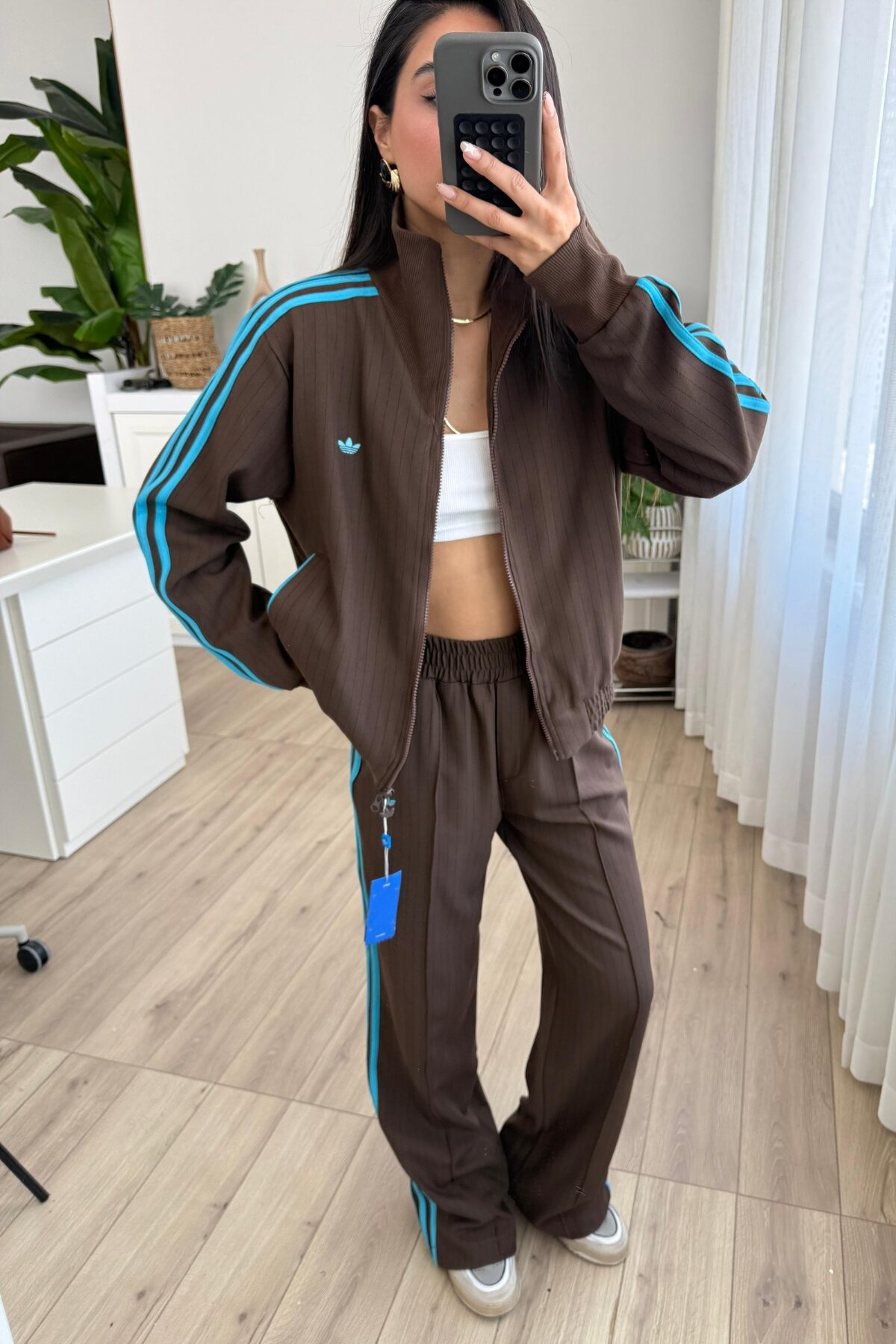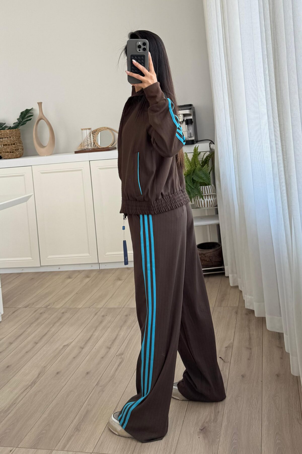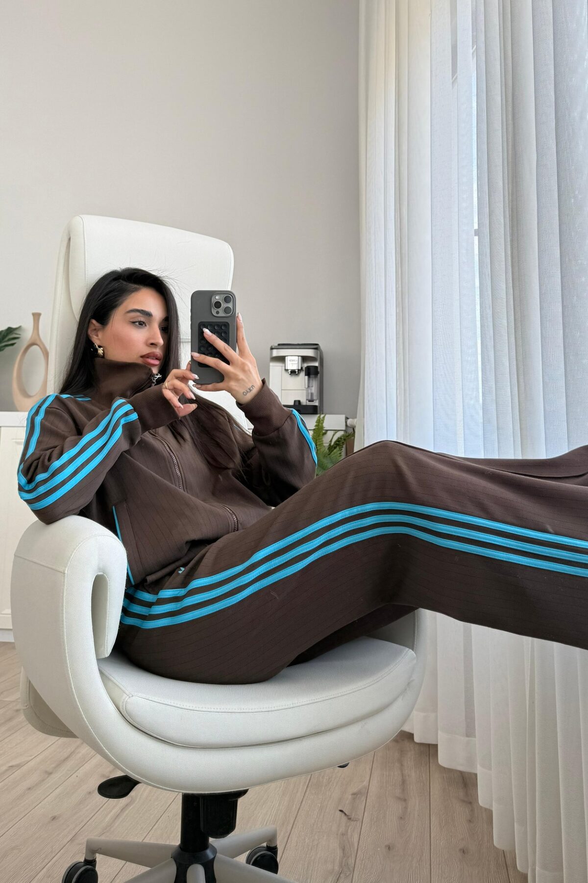 Janet Çizgili Hırka Eşofman Takım Kahverengi