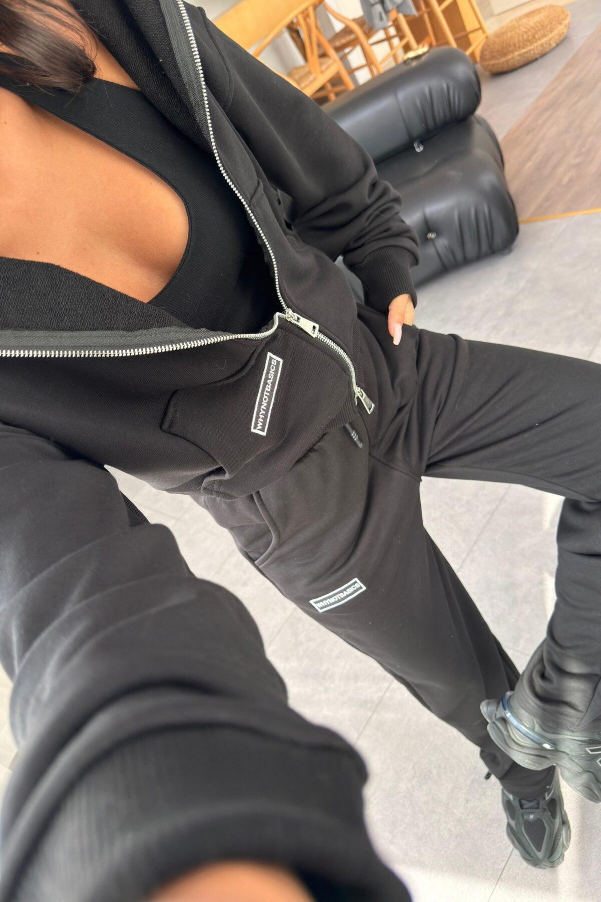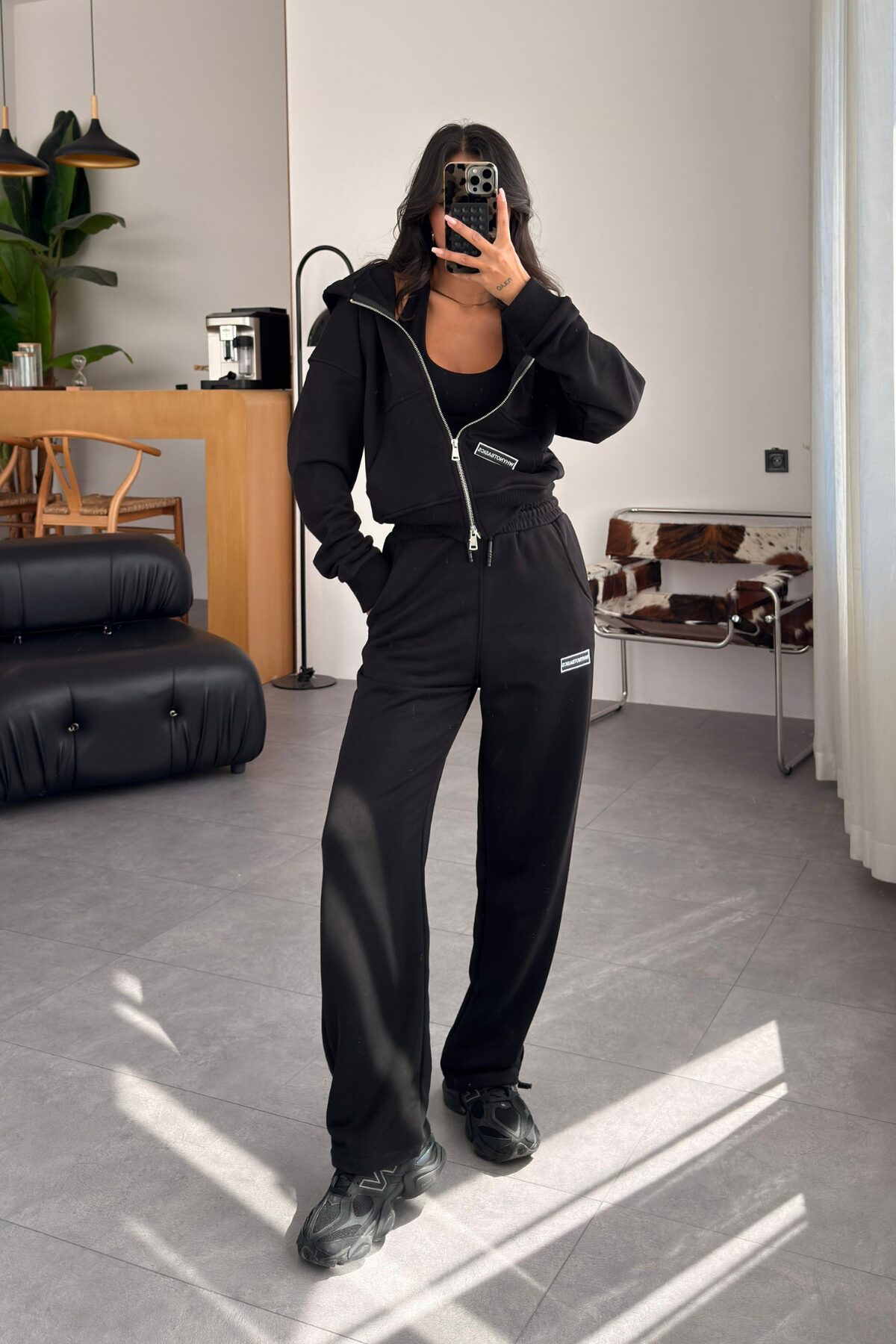 Kapşonlu Hırka Paçası Ayarlanabilir Eşofman Takım Siyah