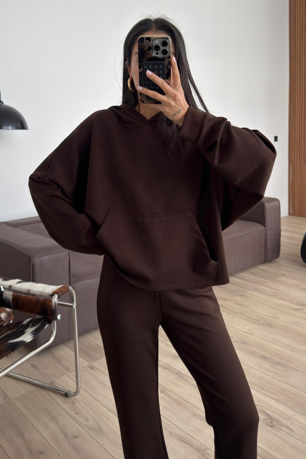 Kapşonlu Modal Kumaş Pantolon Takım Kahverengi