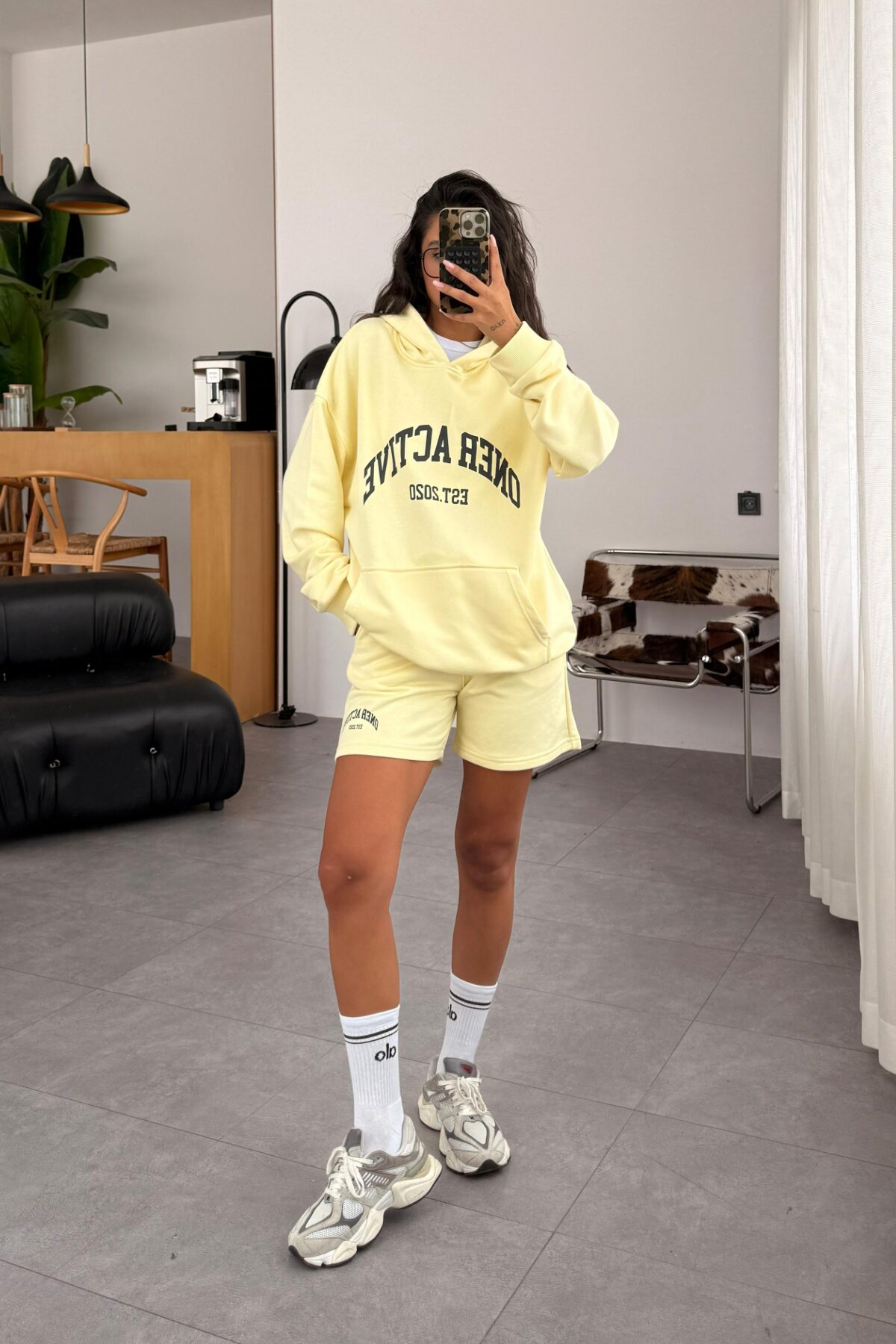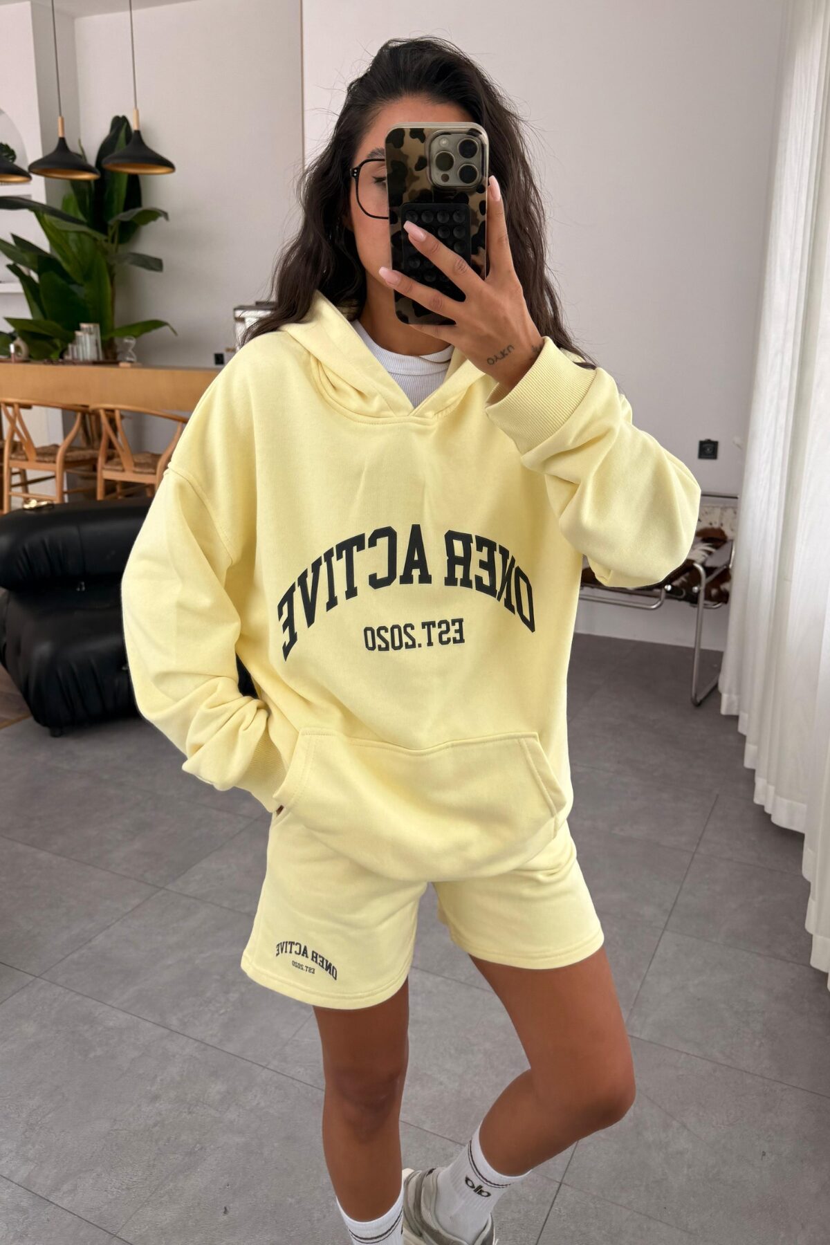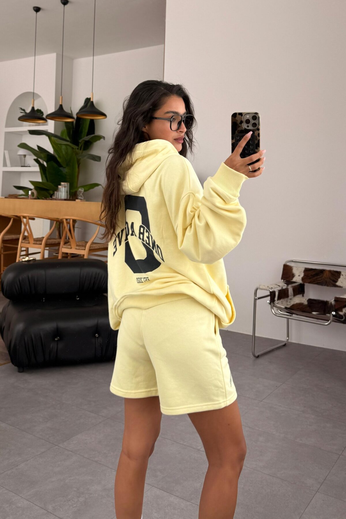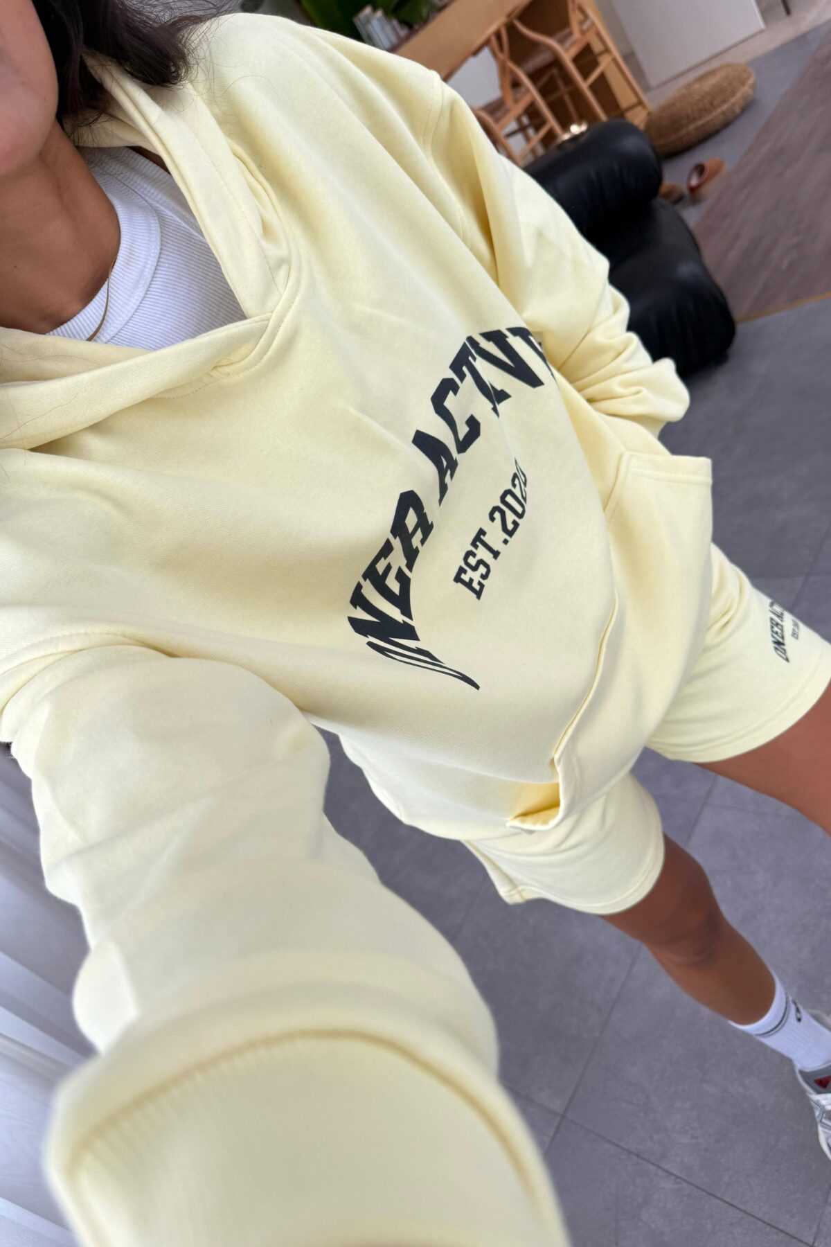 Kapşonlu Sweat Şort Takım Sarı